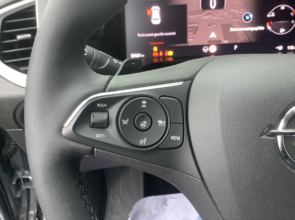 Advanced Park Assist 360° - 690 €, Alarme antivol - 340 €, Jantes Alliage 19'' Ironman, diamantee - 500 €, Pack Infotainment : Recharge smartphones par induction, Pack Navigation Connectee Plus (inclus pendant 3 ans), Multimedia Radio Pure Panel Pro, Navigation connectee, Module Opel Connect - 800 €, Pack Style : Toit Noir Karbon, Rails de toit noir brillant, Inserts face AV noir brillants, Vitres AR surteintees - 800 €, Pack Techno : Phares AV adaptatifs Matrix Intellilux LED Pixel Light, Acces et demarrage sans cle, Hayon motorise, Phares antibrouillards a LED - 1 800 €, Peinture métallisée - 650 €, Sellerie Alcantara / TEP - 590 €