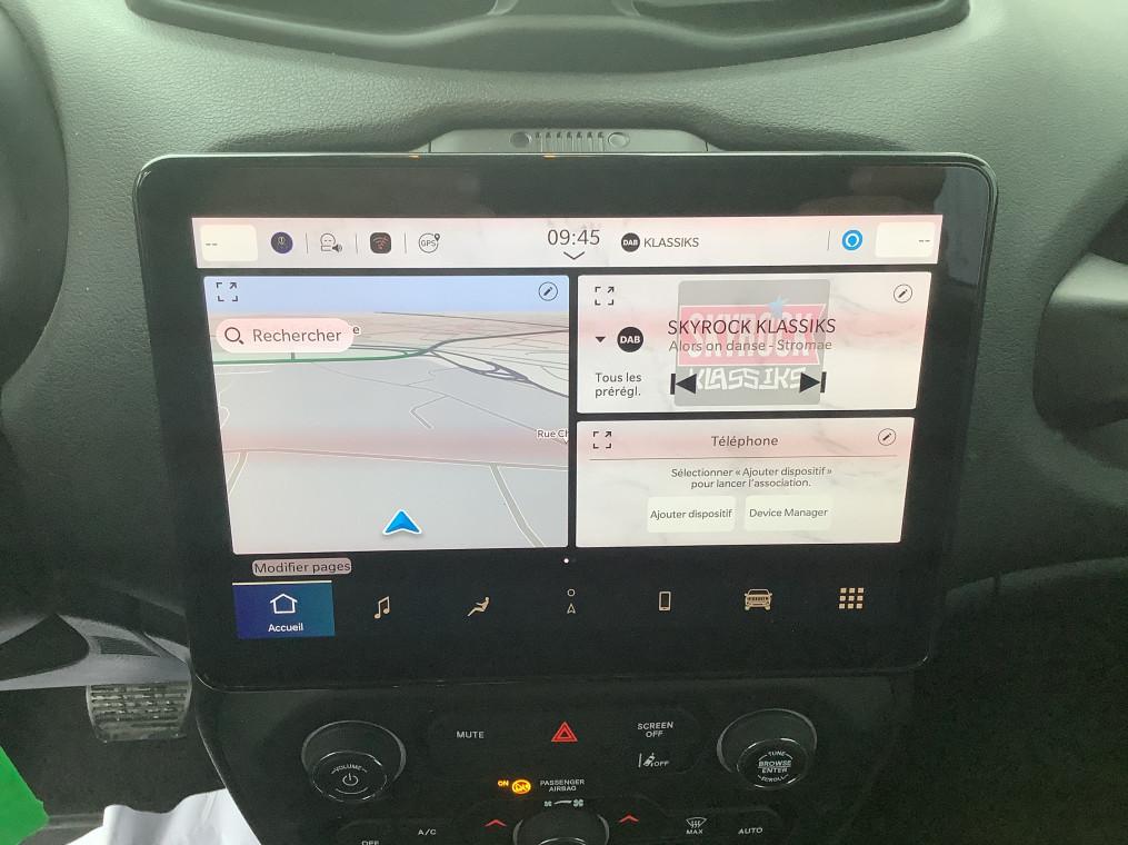 6 airbags, Accoudoir central coulissant, Affichage de la pression des pneus, Alerte anticollision avec arret a faible vitesse, Alerte de franchissement de ligne avec correction, Barres de toit longitudinales Noir, Calandre noir mat avec cerclages d'ouies argent, Calandre noir mat avec cerclages d'ouies Gloss Black, Camera de recul, Capteur de luminosite, Capteur de pluie, Climatisation automatique bi-zone, Combine d'instrumentation numerique configurable a ecran TFT de 10,25", Commutation feux de croisement / feux de route automatique, Controle electronique de la stabilite ESC et aide au demarrage en cote, Coques de retroviseurs exterieurs noires, Detecteur de somnolence, Feux Full LED (feux de jour, de croisement, de route, antibrouillard, AR), Frein de stationnement electrique, Jantes alliage 17" Passion 215/60 R17, Prise USB A au 2nd rang, Prise USB type A et C pour passagers AV, Projecteurs antibrouillard AV, Radio numerique DAB avec connexion Bluetooth, 6 HP, commandes au volant, Reconnaissance des panneaux de signalisation, Regulateur et limiteur de vitesse intelligent, Retroviseur interieur photochromique, Retroviseurs exterieurs rabattables electriquement, Retroviseurs exterieurs reglables electriquement et degivrants, Sellerie en Tissu, Services connectes Uconnect Services, Siege conducteur reglable en hauteur, Siege conducteur reglage lombaire electrique, Siege passager rabattable a plat, Systeme anti-louveoiment de la remorque, Systeme d'infodivertissement Uconnect a ecran tactile 10,1" avec Apple Car Play / Android Auto, Vitres electriques AV et AR, sequentielles a l'AV, Volant reglable en hauteur et en profondeur