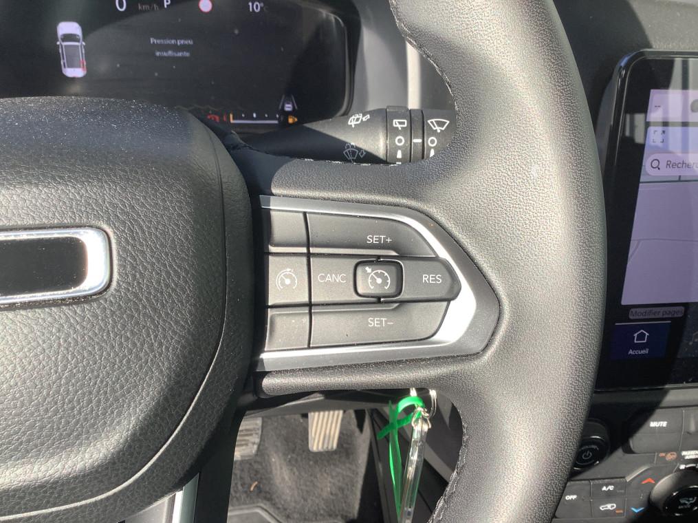6 airbags, Accoudoir central coulissant, Affichage de la pression des pneus, Alerte anticollision avec arret a faible vitesse, Alerte de franchissement de ligne avec correction, Barres de toit longitudinales Noir, Calandre noir mat avec cerclages d'ouies argent, Calandre noir mat avec cerclages d'ouies Gloss Black, Camera de recul, Capteur de luminosite, Capteur de pluie, Climatisation automatique bi-zone, Combine d'instrumentation numerique configurable a ecran TFT de 10,25", Commutation feux de croisement / feux de route automatique, Controle electronique de la stabilite ESC et aide au demarrage en cote, Coques de retroviseurs exterieurs noires, Detecteur de somnolence, Feux Full LED (feux de jour, de croisement, de route, antibrouillard, AR), Frein de stationnement electrique, Jantes alliage 17" Passion 215/60 R17, Prise USB A au 2nd rang, Prise USB type A et C pour passagers AV, Projecteurs antibrouillard AV, Radio numerique DAB avec connexion Bluetooth, 6 HP, commandes au volant, Reconnaissance des panneaux de signalisation, Regulateur et limiteur de vitesse intelligent, Retroviseur interieur photochromique, Retroviseurs exterieurs rabattables electriquement, Retroviseurs exterieurs reglables electriquement et degivrants, Sellerie en Tissu, Services connectes Uconnect Services, Siege conducteur reglable en hauteur, Siege conducteur reglage lombaire electrique, Siege passager rabattable a plat, Systeme anti-louveoiment de la remorque, Systeme d'infodivertissement Uconnect a ecran tactile 10,1" avec Apple Car Play / Android Auto, Vitres electriques AV et AR, sequentielles a l'AV, Volant reglable en hauteur et en profondeur
