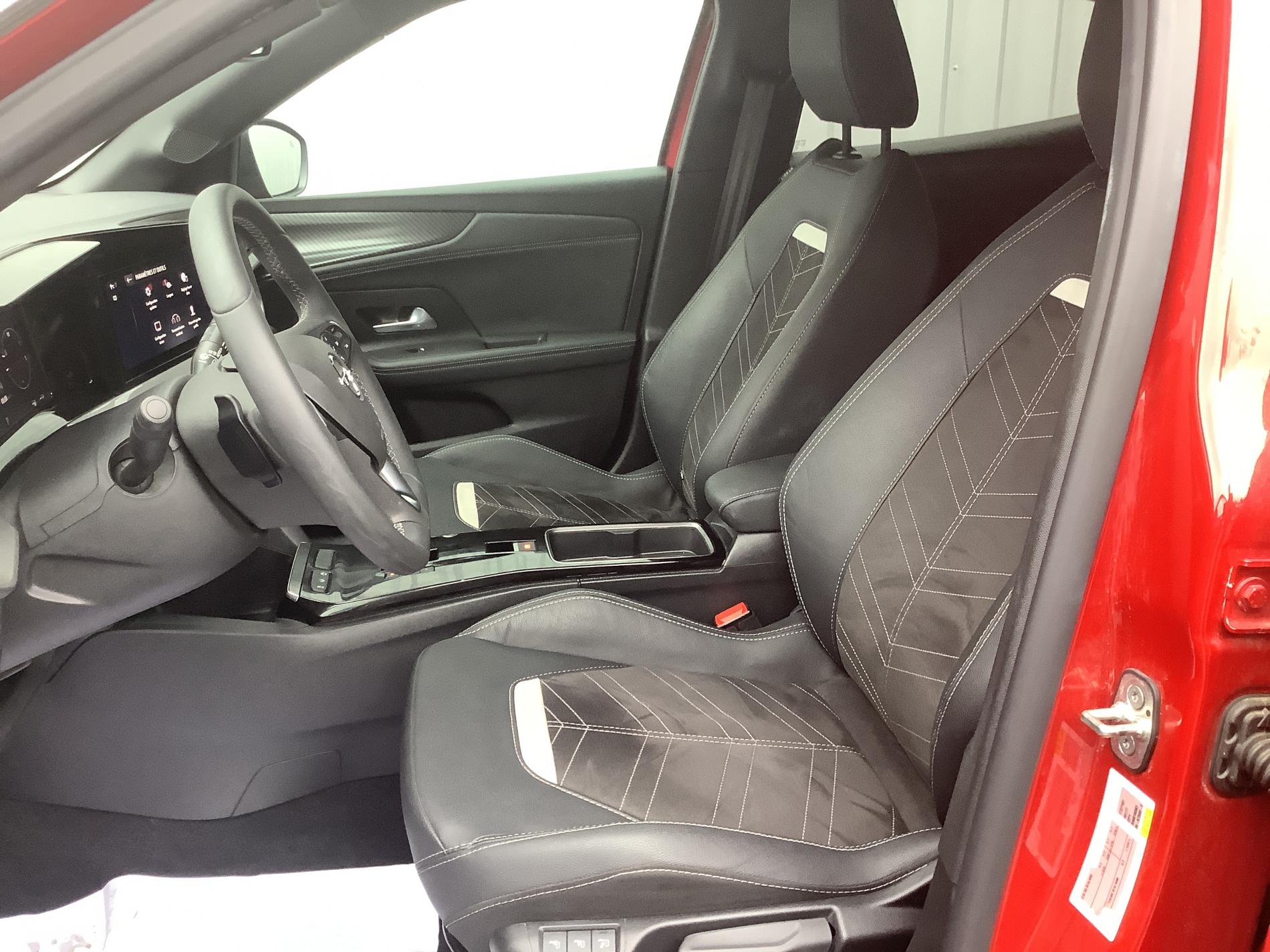 1 cle a telecommande et seconde cle rigide, 1 port USB a l'AV et 2 a l'AR, 5 appuis-tete reglables en hauteur, Accoudoir conducteur avec porte-gobelet, Aide active au maintien dans la voie, Aide active au maintien et positionnement dans la voie, Aide au demarrage en cote, Aide au freinage d'urgence, Aide au stationnement AV/AR, Airbags frontaux et lateraux conducteur et passager AV, rideaux, Alerte anti-somnolence, Alerte d'angle mort, Alerte de sous-gonflage des pneumatiques, Allumage automatique des feux de croisement, Apple CarPlay/Android Auto, Banquette AR rabattable 1/3-2/3, Becquet de toit AR noir, Calandre Opel Vizor avec contour noir, Camera de recul panoramique 180°, Capteur de pluie, Ciel de pavillon noir, Climatisation automatique monozone, Combine d'instrumentation numerique 12", Commutation automatique des feux, Controle electronique de stabilite (ESP), Coquilles de retroviseurs peintes en noir, Decors interieur Erino & Liquid Palladium, Ecran tactile 10'' couleur, Entree et demarrage sans cle, Feux diurnes Eco-LED, Fixations Isofix aux places laterales AR, Fonction Bluetooth (appels et streaming audio), Frein de parking electrique, Jantes en alliage 18" - Diamante, Kit anti-crevaison, Module Opel Connect, Pack Visibilite LED : Retroviseur interieur electrochromatique, Allumage et commutation automatique des feux de route/croisement, Capteur de pluie, Palettes au volant, Pare-soleils avec miroir de courtoisie cote passager, Pedalier chrome, Peinture bi-ton avec Toit Noir Karbon, Phares antibrouillards AV LED, Phares AR a LED, Phares AV ECO LED, Poignees de portes interieures chromees, Reconnaissance avancee des panneaux de signalisation, Reglage manuel des feux, Regulateur de vitesse adaptatif, Retroviseur interieur electrochromatique, Retroviseurs exterieurs electriques et degivrants, Retroviseurs exterieurs rabattables electriquement, Seconde cle avec telecommande, Sellerie Alcantara / TEP, Siege conducteur reglable dans 6 directions avec reglage lombaire reglable electriquement, Signature lumineuse en forme d'aile a LED, Systeme anti-collision a basse vitesse et detection des pietons, Systeme de freinage avec antiblocage des roues (ABS), Systeme Start/Stop, Verrouillage automatique de la trappe a essence lors de la fermeture du vehicule, Verrouillage centralise avec telecommande et en roulant, Verrouillage des ouvrants en roulant, Vitres AR surteintees, Vitres AV et AR electriques - systeme anti-pincement, Volant cuir multifonctions 3 branches a meplat, Volant en TEP Vegan, Volant reglable en hauteur et en profondeur