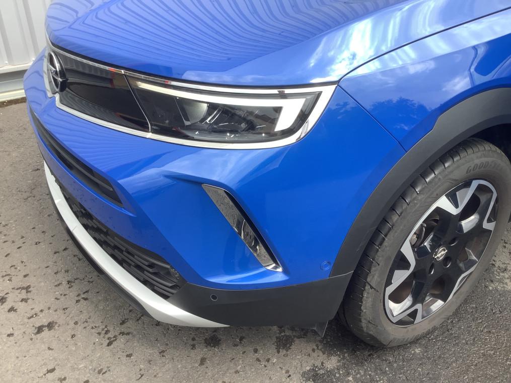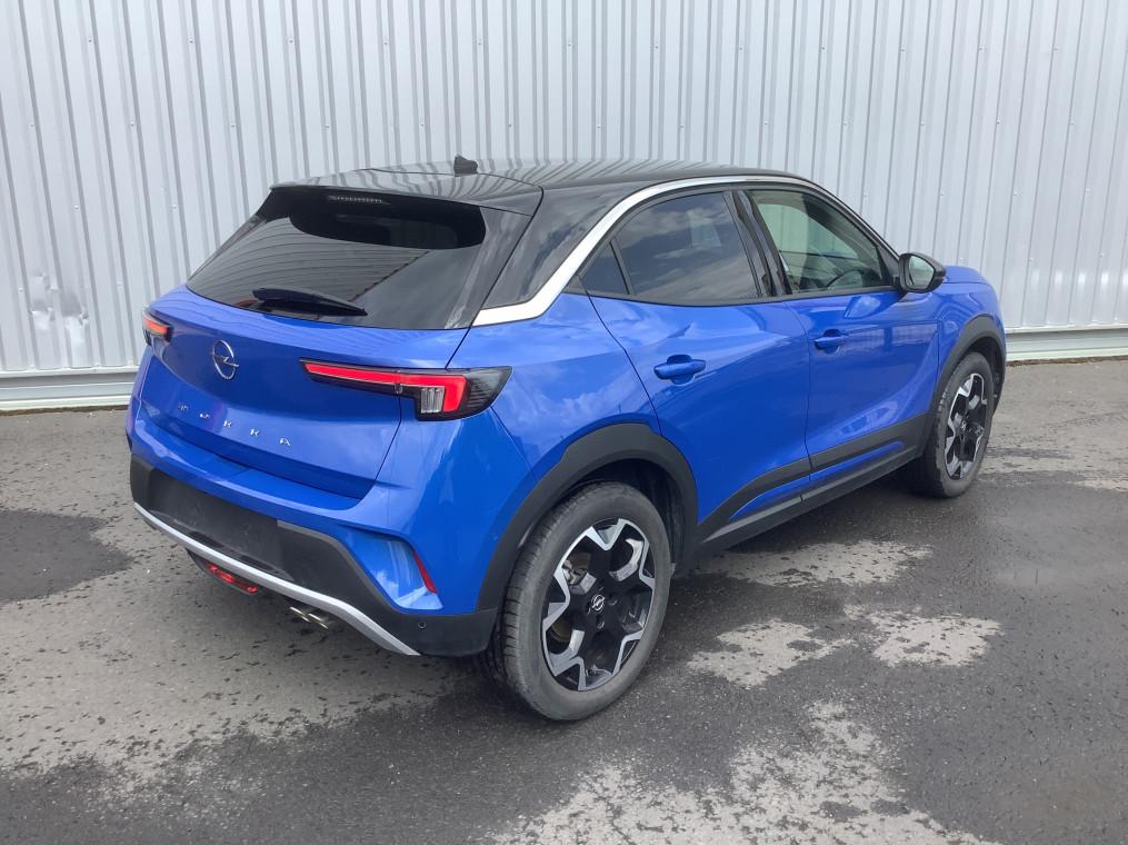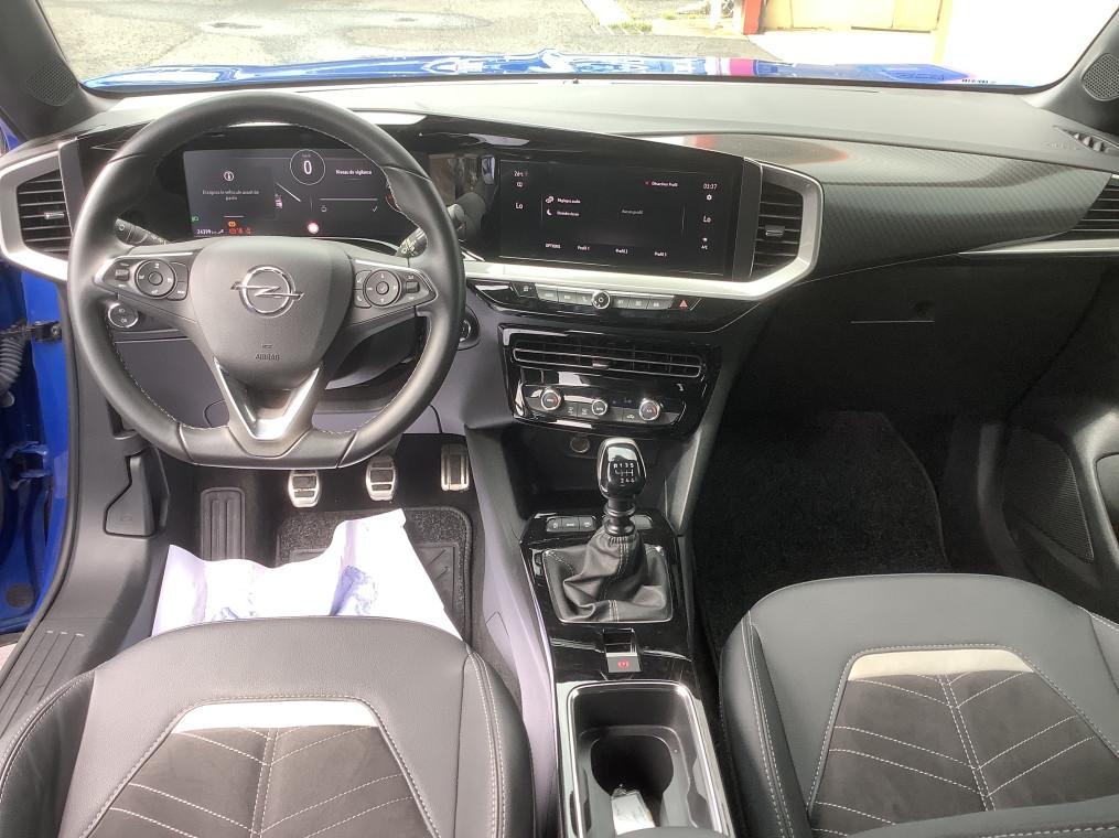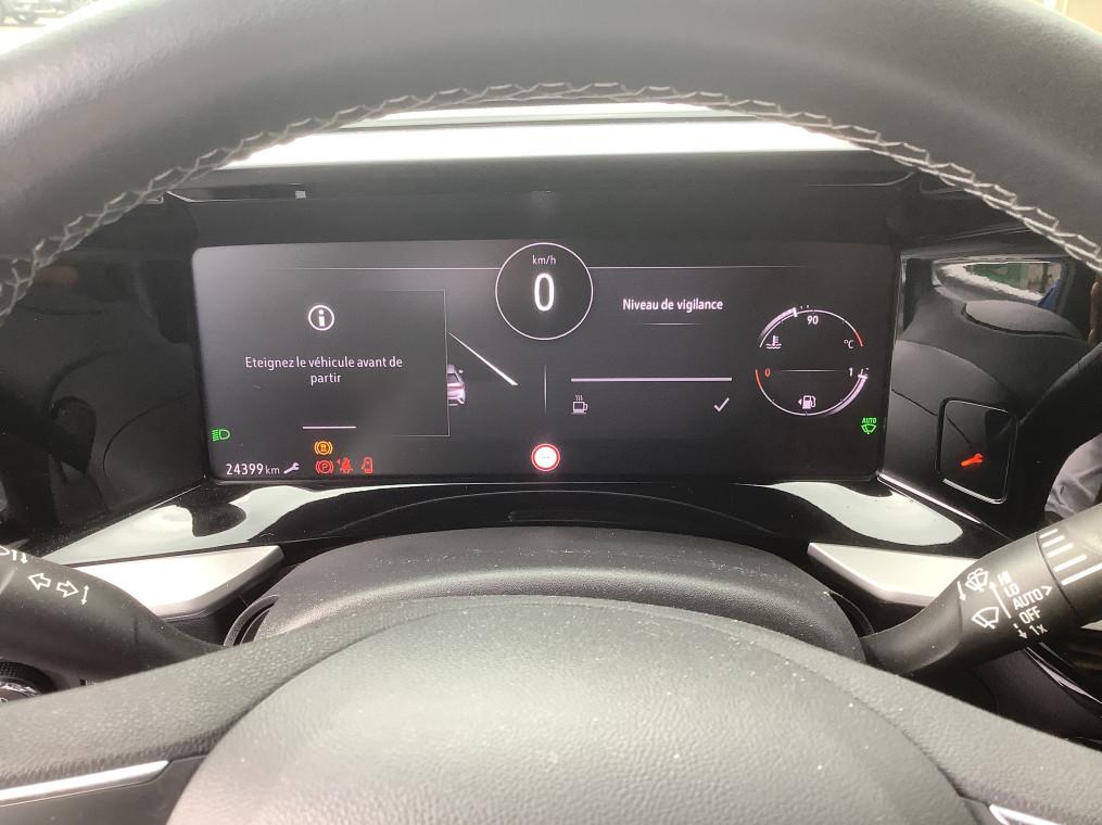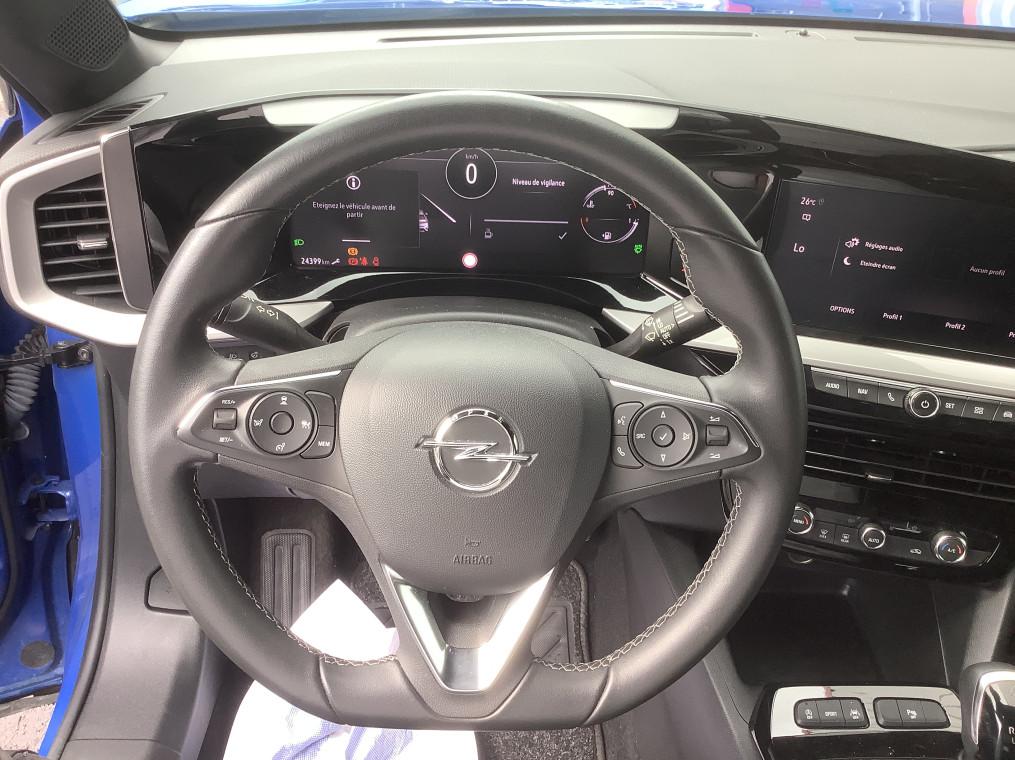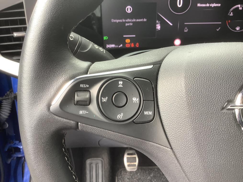 1 cle a telecommande et seconde cle rigide, 1 port USB a l'AV et 2 a l'AR, 5 appuie-tete reglables en hauteur, 6 HP, Accoudoir conducteur avec porte-gobelet, Aide active au maintien au centre de la voie, Aide active au maintien dans la voie, Aide au demarrage en cote, Aide au freinage d'urgence, Aide au stationnement AV et AR, Airbags frontaux et lateraux conducteur et passager AV, rideaux, Alerte anti-somnolence, Alerte d'angle mort, Alerte de sous-gonflage des pneumatiques, Allumage automatique des feux de croisement, Apple CarPlay/Android Auto, Banquette AR rabattable 1/3-2/3, Becquet de toit AR noir, Calandre Opel Vizor avec contour noir, Camera de recul panoramique 180°, Capteur de pluie, Ciel de pavillon noir, Climatisation automatique monozone, Combine d'instrumentation numerique 12", Commutation automatique des feux, Controle electronique de stabilite (ESP), Coquilles de retroviseurs peintes en noir, Decors interieur Erino & Liquid Palladium, Detection de non-bouclage des ceintures de securite aux places AV, Direction assistee electrique, Ecran tactile 10'' couleur HD, Entree et demarrage sans cle, Feux diurnes Eco-LED, Fixations Isofix aux places laterales AR, Fonction Bluetooth (appels et streaming audio), Frein de parking electrique, Grille inferieure - Noir graine, Jantes en alliage 18" - Diamante, Kit anti-crevaison, Lame inferieure - Noir, Lame inferieure - Peinte, Lettrage et logo - Noir, Ligne de vitrage chromee, Module Opel Connect, Pack Visibilite LED, Pare-soleils avec miroir de courtoisie cote passager, Peinture bi-ton avec Toit Noir Karbon, Phares antibrouillards AV LED, Phares AR a LED, Phares AV ECO LED, Poignees de portes interieures chromees, Radio FM/AM/DAB+, Reconnaissance avancee des panneaux de signalisation, Reglage manuel des feux, Regulateur de vitesse adaptatif avec fonction Stop & Go, Réplication Smartphone, Retroviseur interieur electrochromatique, Retroviseurs exterieurs rabattables electriquement, Seconde cle avec telecommande, Sellerie Alcantara / TEP, Siege conducteur avec soutien lombaire reglable electriquement et fonction massante, Siege passager reglables dans 6 directions, Signature lumineuse en forme d'aile a LED, Systeme anti-collision a basse vitesse et detection des pietons, Systeme de freinage avec antiblocage des roues (ABS), Verrouillage automatique de la trappe a essence lors de la fermeture du vehicule, Verrouillage centralise avec telecommande et en roulant, Vitres AR surteintees, Vitres AV et AR electriques - systeme anti-pincement, Volant en TEP Vegan, Volant reglable en hauteur et en profondeur