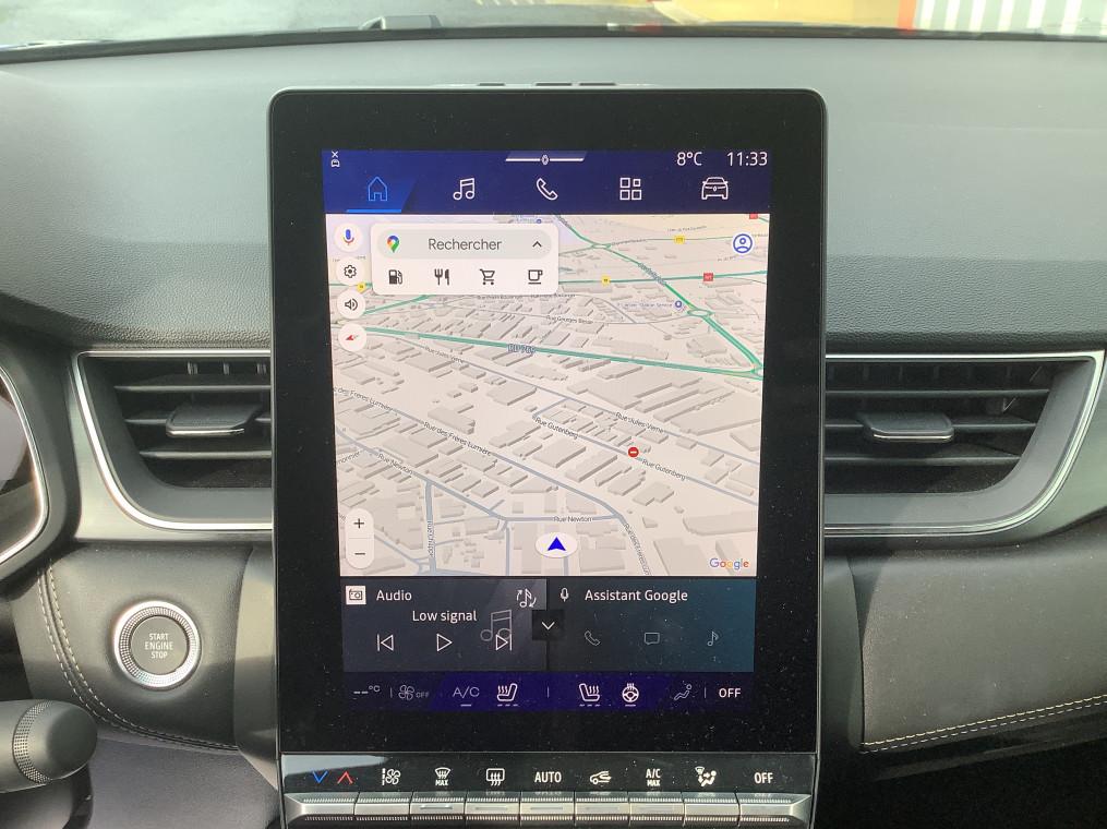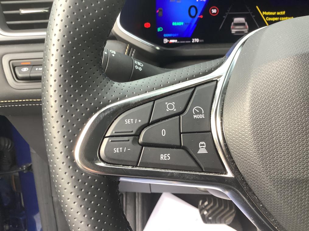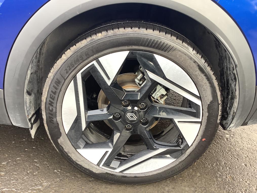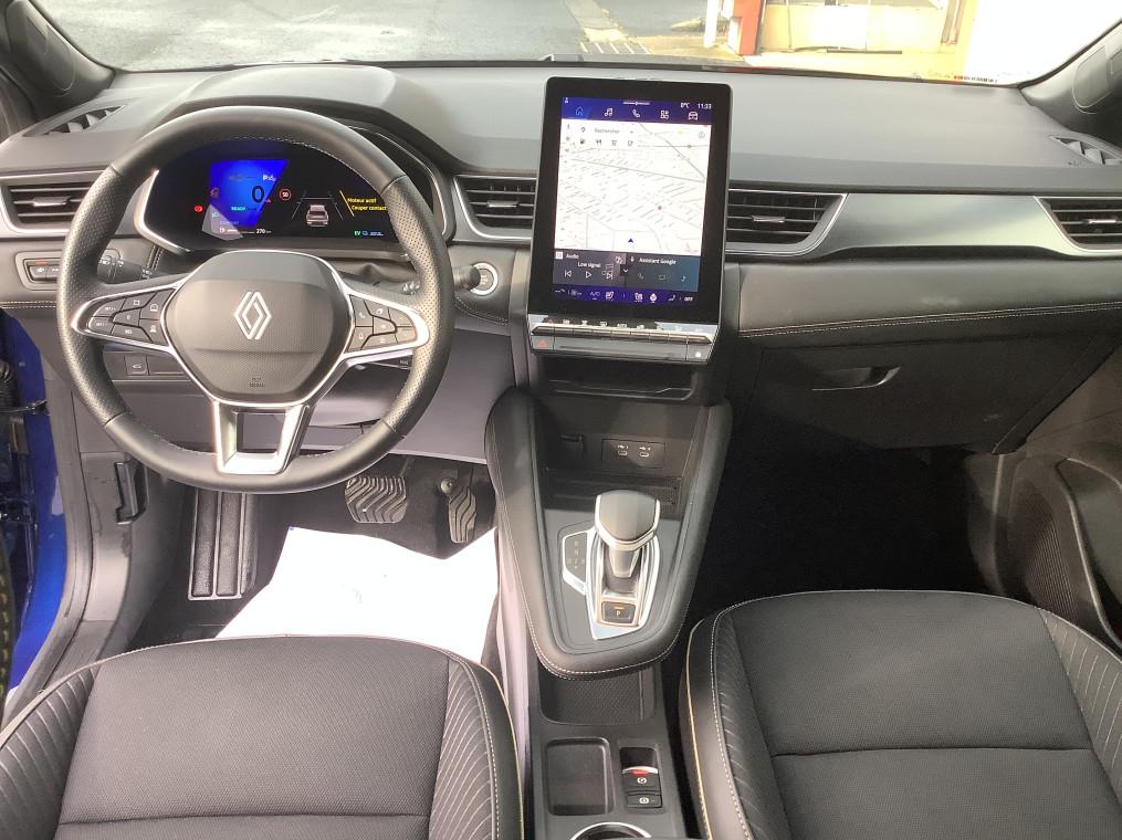 Aide au freinage d'urgence (A.F.U.), Airbag passager deconnectable, Airbags frontaux conducteur et passager adaptatif, Airbags lateraux AV, Alerte de distance de securite, Alerte detection de fatigue, Alerte franchissement de ligne et assistant maintien dans la voie, Alerte sortie securisee des occupants, Allumage automatique des essuie-glaces, Antenne Requin, Antiblocage des roues ABS, Appel d'urgence, Appuie-tetes AR, Avertisseur d'angle mort et detection AR avec centrage dans la voie, Avertisseur de sortie de stationnement en marche AR avec freinage d'urgence automatique, Banquette AR coulissante et rabattable 1/3 - 2/3, Boitier connect AIVC, Camera 3D vision 360°, Carte "Mains libres", Cartographie Standard, Ceinture centrale AR 3 points, Chargeur smartphone a induction, Climatisation automatique, Compartiment de coffre, Condamnation centralisee des portes, Conduite hybride predictive, Eclairage AV et AR Full LED Pure Vision, Feux AR 3D, Feux AR avec signature lumineuse Y, Feux de stop a LED, Filtre a particules, Frein de parking electrique avec fonction Auto-Hold, Hayon motorise main libre, Indicateur de changement de vitesse, Jantes alliage 19'' diamantees Pulsar, Kit de gonflage, Leve-vitres AV electriques a impulsion, Lunette AR chauffante, Miroirs de courtoisie retroeclaires, My Safety switch, Notice d'utilisation digitale embarque dans le systeme multimedia du vehicule, Parking mains-libres, Poignees de portes ton caisse, Reconnaissance des panneaux de signalisation, Regulateur de vitesse adaptatif, Regulateur de vitesse adaptatif + centrage dans la voie, Renault Multi-sense, Repetiteurs lateraux de changement de direction, Retroviseur interieur chrome frameless, Retroviseurs exterieurs degivrants, reglables et rabattables electriquement, Sellerie Ionic, Sieges AV a reglage electrique 6 voies et conducteur reglage manuel lombaire, Sieges AV chauffants, Systeme de controle de trajectoire ESC avec aide au demarrage en cote, Systeme de freinage d'urgence avance, Systeme de surveillance de la pression des pneus, Systeme ISOFIX (i-Size) aux places laterales AR et passager AV, Systeme multimedia openR link 10.4" avecGoogle integre, Tableau de bord avec ecran numerique et personnalisable 10", Temoin d'oubli de ceinture de securite, Vitres laterales et AR surteintees, Volant chauffant, Volant tep