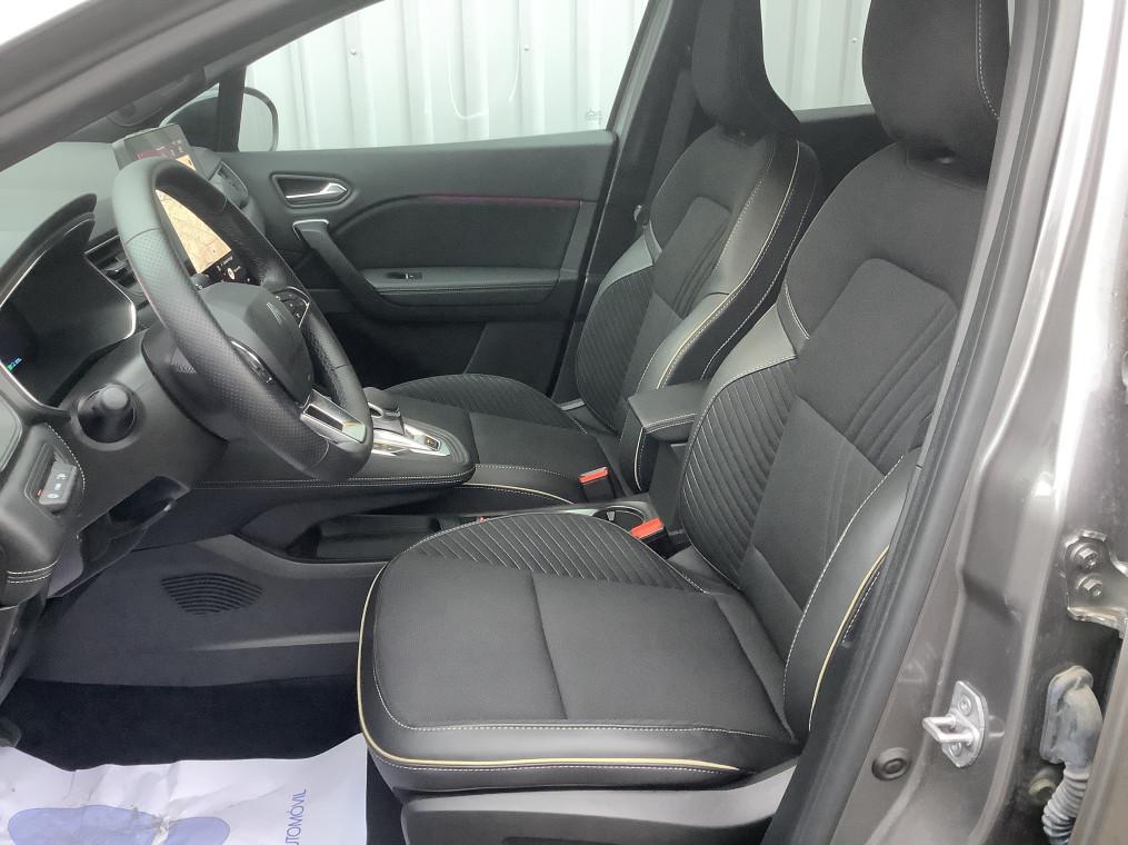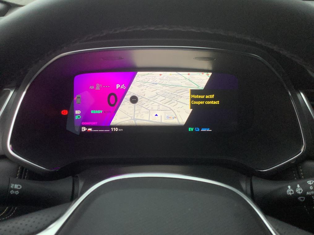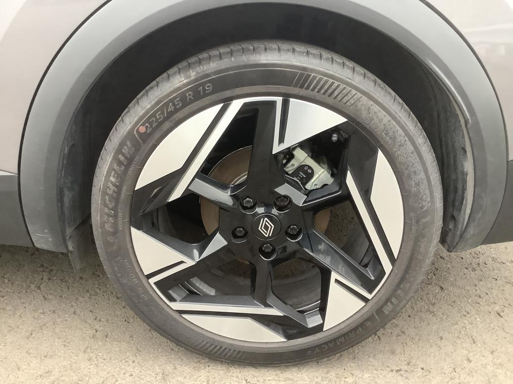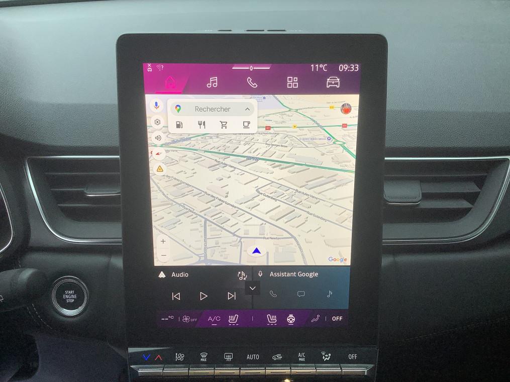 Aide au freinage d'urgence (A.F.U.), Airbag passager deconnectable, Airbags frontaux conducteur et passager adaptatif, Airbags lateraux AV, Alerte de distance de securite, Alerte detection de fatigue, Alerte franchissement de ligne et assistant maintien dans la voie, Alerte sortie securisee des occupants, Allumage automatique des essuie-glaces, Antenne Requin, Antiblocage des roues ABS, Appel d'urgence, Appuie-tetes AR, Avertisseur d'angle mort et detection AR avec centrage dans la voie, Avertisseur de sortie de stationnement en marche AR avec freinage d'urgence automatique, Banquette AR coulissante et rabattable 1/3 - 2/3, Boitier connect AIVC, Camera 3D vision 360°, Carte "Mains libres", Cartographie Standard, Ceinture centrale AR 3 points, Chargeur smartphone a induction, Climatisation automatique, Compartiment de coffre, Condamnation centralisee des portes, Conduite hybride predictive, Eclairage AV et AR Full LED Pure Vision, Feux AR 3D, Feux AR avec signature lumineuse Y, Feux de stop a LED, Filtre a particules, Frein de parking electrique avec fonction Auto-Hold, Hayon motorise mains libres, Indicateur de changement de vitesse, Jantes alliage 19'' diamantees Pulsar, Kit de gonflage, Leve-vitres AV electriques a impulsion, Lunette AR chauffante, Miroirs de courtoisie retroeclaires, My Safety switch, Notice d'utilisation digitale embarque dans le systeme multimedia du vehicule, Parking mains-libres, Poignees de portes ton caisse, Reconnaissance des panneaux de signalisation, Regulateur de vitesse adaptatif, Regulateur de vitesse adaptatif + centrage dans la voie, Renault Multi-sense, Repetiteurs lateraux de changement de direction, Retroviseur interieur chrome frameless, Retroviseurs exterieurs degivrants, reglables et rabattables electriquement, Sellerie Ionic, Sieges AV a reglage electrique 6 voies et conducteur reglage manuel lombaire, Sieges AV chauffants, Systeme de controle de trajectoire ESC avec aide au demarrage en cote, Systeme de freinage d'urgence avance, Systeme de surveillance de la pression des pneus, Systeme ISOFIX (i-Size) aux places laterales AR et passager AV, Systeme multimedia openR link 10.4" avecGoogle integre, Tableau de bord avec ecran numerique et personnalisable 10", Temoin d'oubli de ceinture de securite, Vitres laterales et AR surteintees, Volant chauffant, Volant tep