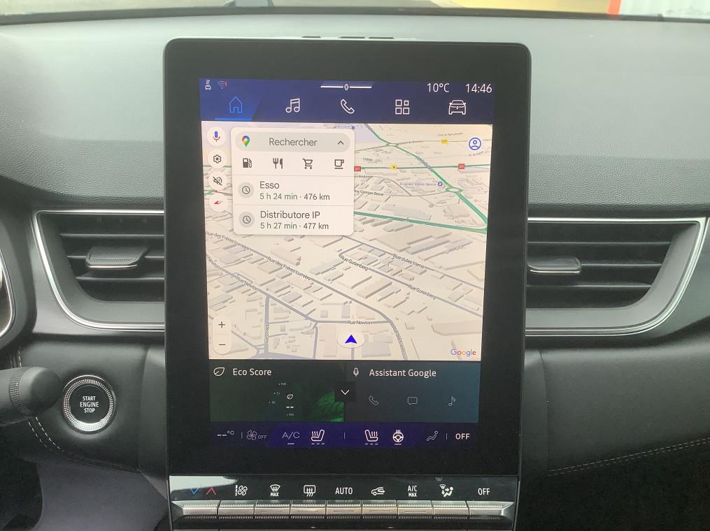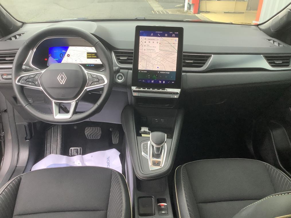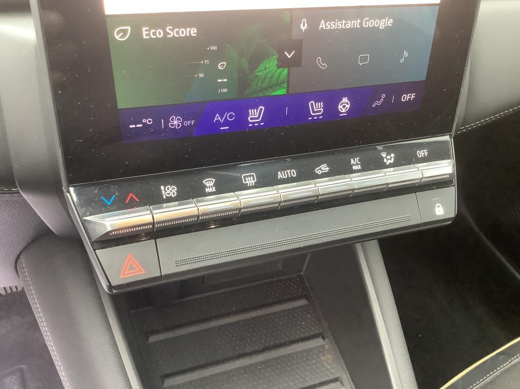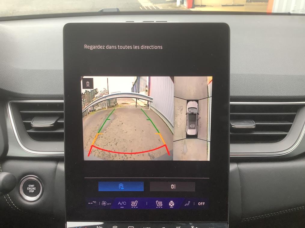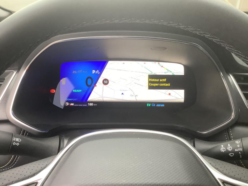 Aide au freinage d'urgence (A.F.U.), Airbag passager deconnectable, Airbags frontaux conducteur et passager adaptatif, Airbags lateraux AV, Alerte de distance de securite, Alerte detection de fatigue, Alerte franchissement de ligne et assistant maintien dans la voie, Alerte sortie securisee des occupants, Allumage automatique des essuie-glaces, Antenne Requin, Antiblocage des roues ABS, Appel d'urgence, Appuie-tetes AR, Avertisseur d'angle mort et detection AR avec centrage dans la voie, Avertisseur de sortie de stationnement en marche AR avec freinage d'urgence automatique, Banquette AR coulissante et rabattable 1/3 - 2/3, Boitier connect AIVC, Camera 3D vision 360°, Carte "Mains libres", Cartographie Standard, Ceinture centrale AR 3 points, Chargeur smartphone a induction, Climatisation automatique, Compartiment de coffre, Condamnation centralisee des portes, Conduite hybride predictive, Eclairage AV et AR Full LED Pure Vision, Feux AR 3D, Feux AR avec signature lumineuse Y, Feux de stop a LED, Filtre a particules, Frein de parking electrique avec fonction Auto-Hold, Hayon motorise main libre, Indicateur de changement de vitesse, Jantes alliage 19'' diamantees Pulsar, Kit de gonflage, Leve-vitres AV electriques a impulsion, Lunette AR chauffante, Miroirs de courtoisie retroeclaires, My Safety switch, Notice d'utilisation digitale embarque dans le systeme multimedia du vehicule, Parking mains-libres, Poignees de portes ton caisse, Reconnaissance des panneaux de signalisation, Regulateur de vitesse adaptatif, Regulateur de vitesse adaptatif + centrage dans la voie, Renault Multi-sense, Repetiteurs lateraux de changement de direction, Retroviseur interieur chrome frameless, Retroviseurs exterieurs degivrants, reglables et rabattables electriquement, Sellerie Ionic, Sieges AV a reglage electrique 6 voies et conducteur reglage manuel lombaire, Sieges AV chauffants, Systeme de controle de trajectoire ESC avec aide au demarrage en cote, Systeme de freinage d'urgence avance, Systeme de surveillance de la pression des pneus, Systeme ISOFIX (i-Size) aux places laterales AR et passager AV, Systeme multimedia openR link 10.4" avecGoogle integre, Tableau de bord avec ecran numerique et personnalisable 10", Temoin d'oubli de ceinture de securite, Vitres laterales et AR surteintees, Volant chauffant, Volant tep
