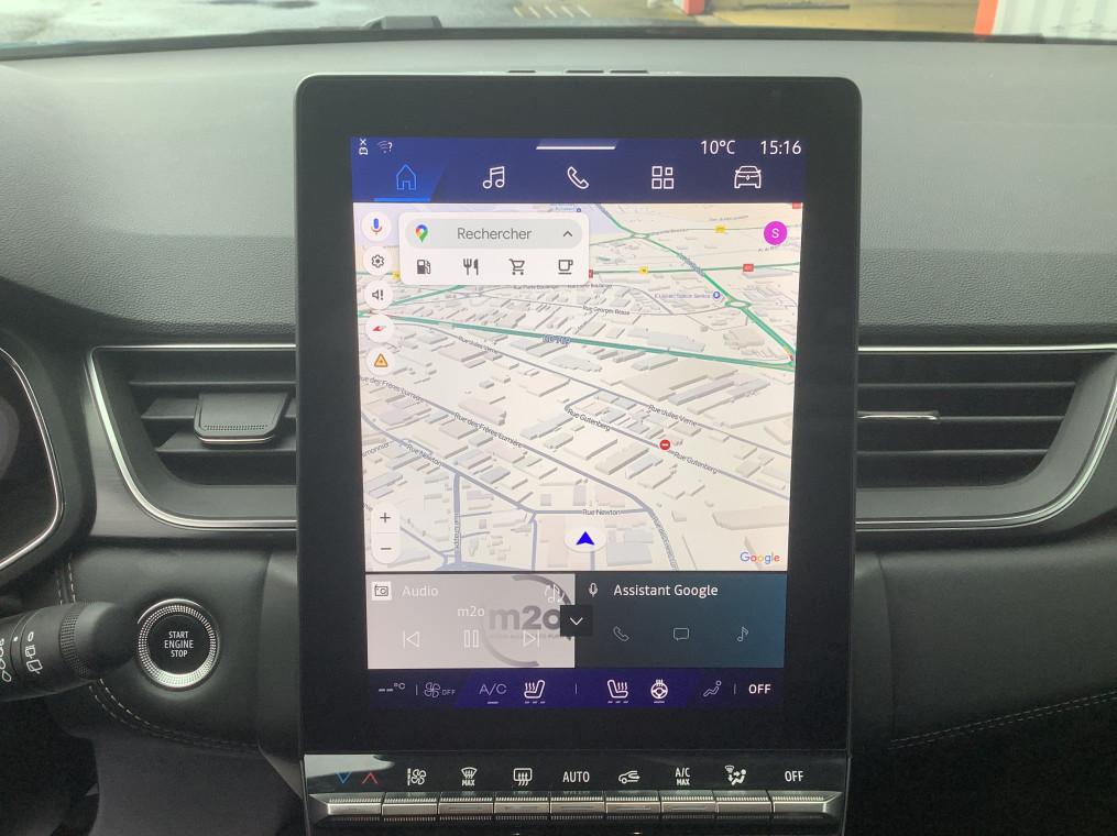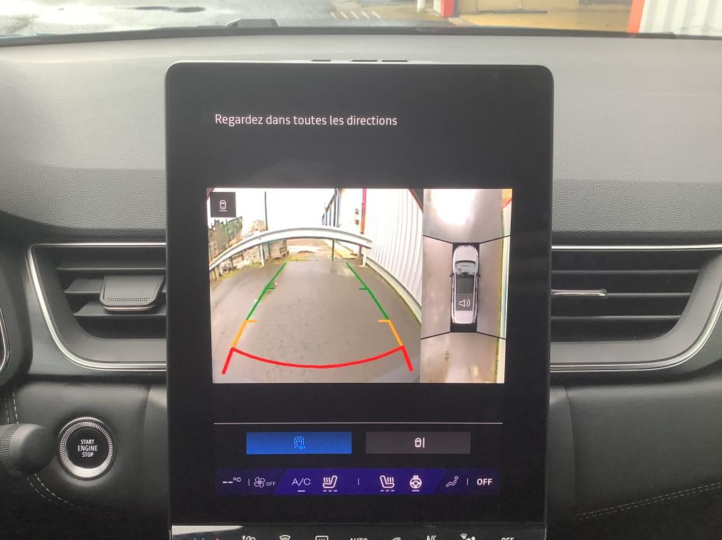 Aide au freinage d'urgence (A.F.U.), Airbag passager deconnectable, Airbags frontaux conducteur et passager adaptatif, Airbags lateraux AV, Alerte de distance de securite, Alerte detection de fatigue, Alerte franchissement de ligne et assistant maintien dans la voie, Alerte sortie securisee des occupants, Allumage automatique des essuie-glaces, Antenne Requin, Antiblocage des roues ABS, Appel d'urgence, Appuie-tetes AR, Avertisseur d'angle mort et detection AR avec centrage dans la voie, Avertisseur de sortie de stationnement en marche AR avec freinage d'urgence automatique, Banquette AR coulissante et rabattable 1/3 - 2/3, Boitier connect AIVC, Camera 3D vision 360°, Carte "Mains libres", Cartographie Standard, Ceinture centrale AR 3 points, Chargeur smartphone a induction, Climatisation automatique, Compartiment de coffre, Condamnation centralisee des portes, Conduite hybride predictive, Eclairage AV et AR Full LED Pure Vision, Feux AR 3D, Feux AR avec signature lumineuse Y, Feux de stop a LED, Filtre a particules, Frein de parking electrique avec fonction Auto-Hold, Hayon motorise mains libres, Indicateur de changement de vitesse, Jantes alliage 19'' diamantees Pulsar, Kit de gonflage, Leve-vitres AV electriques a impulsion, Lunette AR chauffante, Miroirs de courtoisie retroeclaires, My Safety switch, Notice d'utilisation digitale embarque dans le systeme multimedia du vehicule, Parking mains-libres, Poignees de portes ton caisse, Reconnaissance des panneaux de signalisation, Regulateur de vitesse adaptatif, Regulateur de vitesse adaptatif + centrage dans la voie, Renault Multi-sense, Repetiteurs lateraux de changement de direction, Retroviseur interieur chrome frameless, Retroviseurs exterieurs degivrants, reglables et rabattables electriquement, Sellerie Ionic, Sieges AV a reglage electrique 6 voies et conducteur reglage manuel lombaire, Sieges AV chauffants, Systeme de controle de trajectoire ESC avec aide au demarrage en cote, Systeme de freinage d'urgence avance, Systeme de surveillance de la pression des pneus, Systeme ISOFIX (i-Size) aux places laterales AR et passager AV, Systeme multimedia openR link 10.4" avecGoogle integre, Tableau de bord avec ecran numerique et personnalisable 10", Temoin d'oubli de ceinture de securite, Vitres laterales et AR surteintees, Volant chauffant, Volant tep