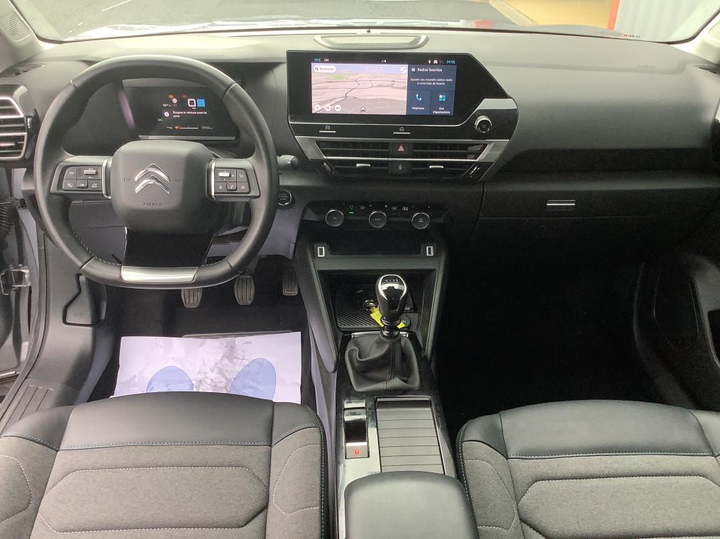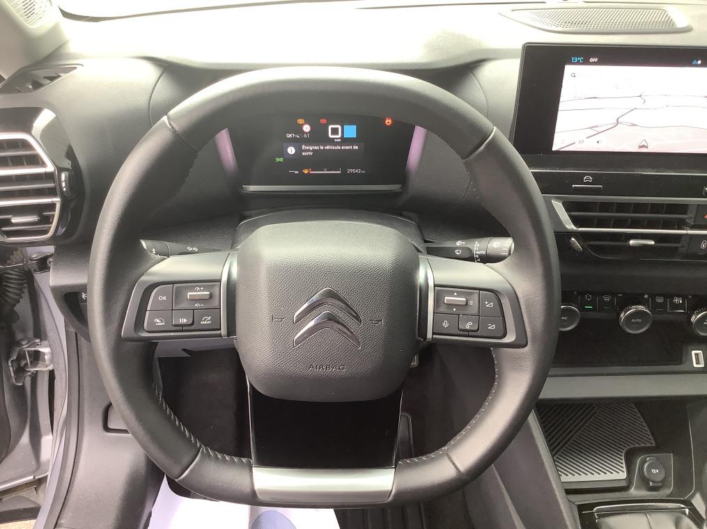 1 prise USB en rang 2 (type A), 2 prises USB au rang 1 (1 type C + 1 type A), 2 prises USB au rang 2 (1 type C + 1 type A), ABS avec REF, AFU et ESP, Aerateurs centraux en rang 2, Aide au demarrage en pente, Aide au stationnement AR, Airbags frontaux AV, lateraux AV et rideaux, Allumage automatique des feux de croisement, Apple CarPlay et Android Auto sans fil, Banquette AR fractionnable 2/3 - 1/3, Boitier telematique: Appel d'urgence et Citroen Assistance, Camera de recul, Climatisation automatique bi-zone, Combine numerique couleur, Console centrale haute avec rangements et accoudoir, Coques de retroviseurs exterieurs Noir Brillant, Detection de sous-gonflage, Ecran central 10" tactile, Elargisseurs d'aile et bas de caisse Noir Mat, Essuie-vitre AV automatique (capteur de pluie), Feux diurnes a LED, Frein de stationnement electrique automatique, Garnissage Tissu Chevrons Gris/ Toile enduite Noir, Garnissage tissu Chevrons Gris/Textile effet cuir Noir, Jantes alliage 18" AEROBLADE Gris Anthra, Jupe AR Noir Brilliant, Kit Mains Libres Bluetooth, Leve-vitres AV et AR electriques et sequentiels, Mirror Screen sans fil, My Citroen Assist : Citroen Connect Box, My Citroen Play : Kit mains libres Bluetooth, Mirror Screen sans fil, compatible Android Auto et, Pack Color Noir Brillant : Inserts autour des projecteurs antibrouillard et sur les protections de bas de caisse, Pack Safety : Reconnaissance des panneaux de vitesse et recommandation, Temoin de non-bouclage des ceintures de securite conducteur et passagers, Coffee Break Alert, Active Safety Brake, Alerte Risque Collision, Regulateur-limiteur de vitesse, Alerte active de Franchissement Involontaire de ligne, Alerte attention conducteur, Plancher de coffre a 2 positions, Poche aumoniere au dos des sieges AV, Poignees de portes exterieures couleur caisse, Prise 12 V en rang 1, Projecteurs antibrouillard LED avec eclairage statique d'intersection, Projecteurs LED avec signature lumineuse en V, Retroviseurs exterieurs electriques et degivrants, Retroviseurs exterieurs rabattables electriquement, Retroviseurs exterieurs rabattables electriquement avec eclairage accompagnement, Siege conducteur avec reglage lombaire, Siege conducteur reglable en hauteur, Siege passager reglable en hauteur, Sieges Advanced Comfort, Suspension Citroen Advanced Comfort, Systeme audio numerique 6 HP (DAB), Tablette tactile 10", Volant croute de cuir, Volant reglable en hauteur et en profondeur