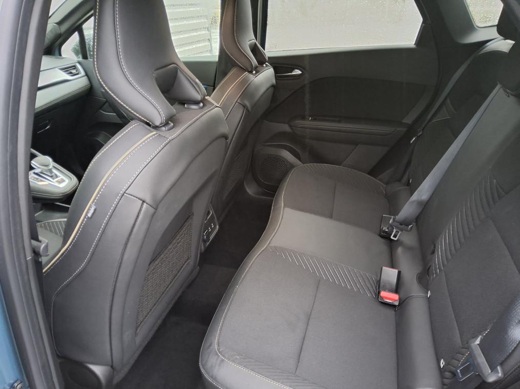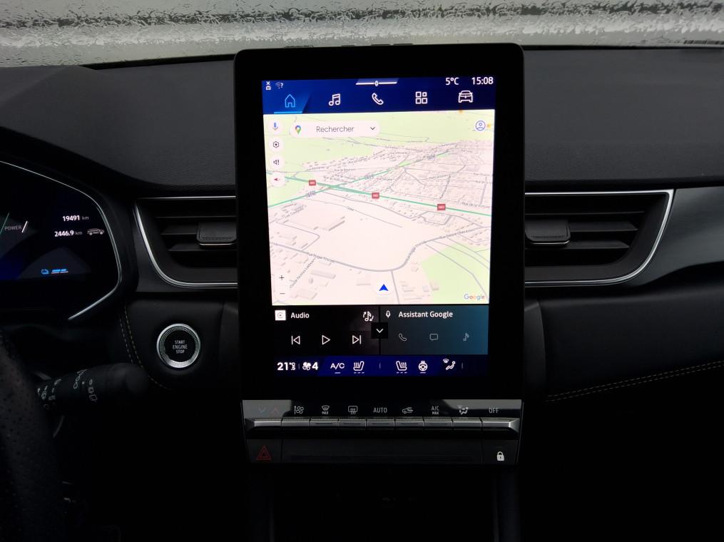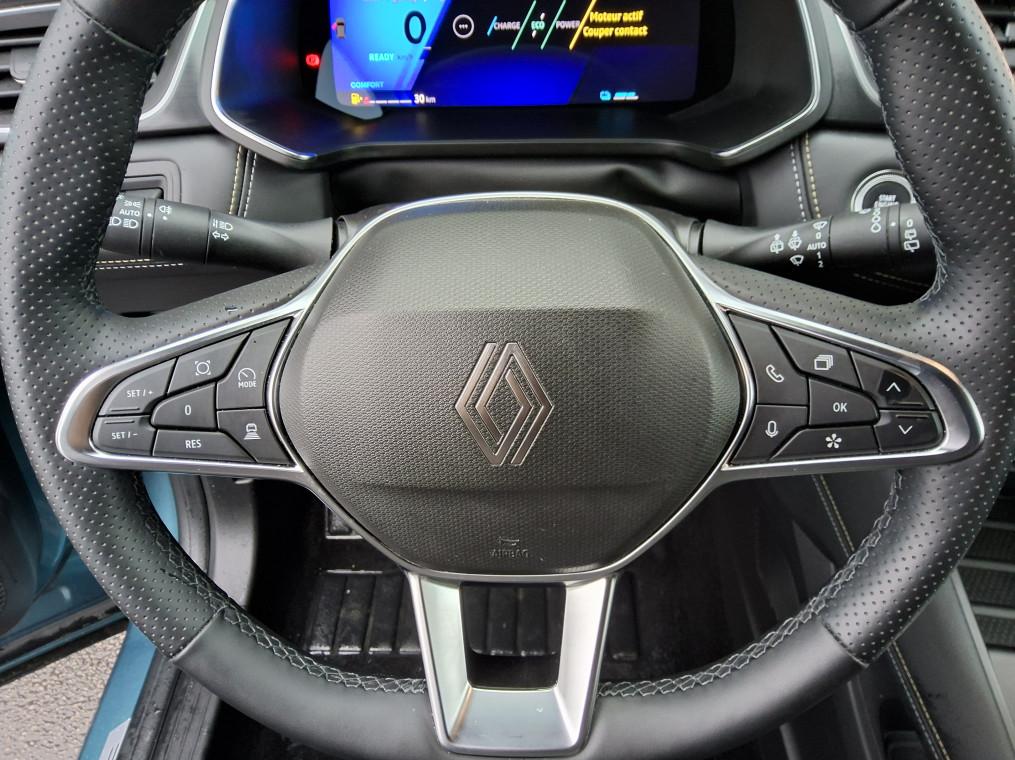 Aide au freinage d'urgence (A.F.U.), Airbag passager deconnectable, Airbags frontaux conducteur et passager adaptatif, Airbags lateraux AV, Alerte de distance de securite, Alerte detection de fatigue, Alerte franchissement de ligne et assistant maintien dans la voie, Alerte sortie securisee des occupants, Allumage automatique des essuie-glaces, Antenne Requin, Antiblocage des roues ABS, Appel d'urgence, Appuie-tetes AR, Avertisseur d'angle mort et detection AR avec centrage dans la voie, Avertisseur de sortie de stationnement en marche AR avec freinage d'urgence automatique, Banquette AR coulissante et rabattable 1/3 - 2/3, Boitier connect AIVC, Camera 3D vision 360°, Carte "Mains libres", Cartographie Standard, Ceinture centrale AR 3 points, Chargeur smartphone a induction, Climatisation automatique, Compartiment de coffre, Condamnation centralisee des portes, Conduite hybride predictive, Eclairage AV et AR Full LED Pure Vision, Feux AR 3D, Feux AR avec signature lumineuse Y, Feux de stop a LED, Filtre a particules, Frein de parking electrique avec fonction Auto-Hold, Hayon motorise mains libres, Indicateur de changement de vitesse, Jantes alliage 19'' diamantees Pulsar, Kit de gonflage, Leve-vitres AV electriques a impulsion, Lunette AR chauffante, Miroirs de courtoisie retroeclaires, My Safety switch, Notice d'utilisation digitale embarque dans le systeme multimedia du vehicule, Parking mains-libres, Poignees de portes ton caisse, Reconnaissance des panneaux de signalisation, Regulateur de vitesse adaptatif, Regulateur de vitesse adaptatif + centrage dans la voie, Renault Multi-sense, Repetiteurs lateraux de changement de direction, Retroviseur interieur chrome frameless, Retroviseurs exterieurs degivrants, reglables et rabattables electriquement, Sellerie Ionic, Sieges AV a reglage electrique 6 voies et conducteur reglage manuel lombaire, Sieges AV chauffants, Systeme de controle de trajectoire ESC avec aide au demarrage en cote, Systeme de freinage d'urgence avance, Systeme de surveillance de la pression des pneus, Systeme ISOFIX (i-Size) aux places laterales AR et passager AV, Systeme multimedia openR link 10.4" avecGoogle integre, Tableau de bord avec ecran numerique et personnalisable 10", Temoin d'oubli de ceinture de securite, Vitres laterales et AR surteintees, Volant chauffant, Volant tep