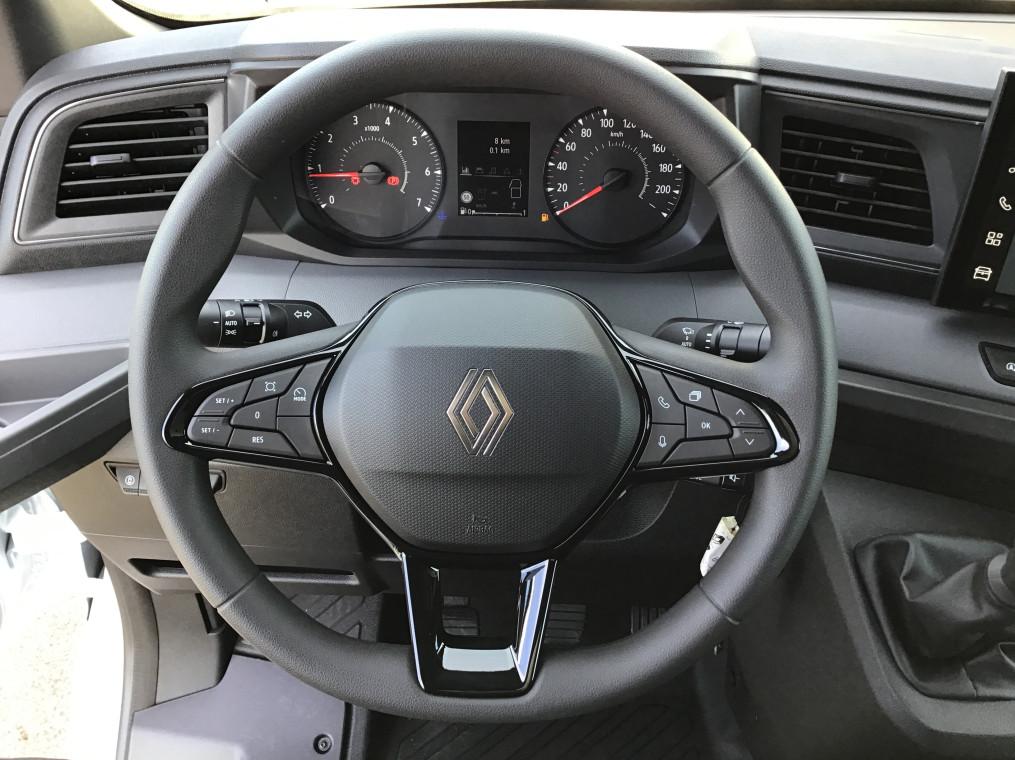 2 cles 3 boutons (1 repliable & 1 fixe), ABS evec EBV, Aide au parking AR, Airbag frontal conducteur a retenue programmee, Alerte detection de fatigue, Alerte oubli de ceinture conducteur et passagers, Appel d'urgence, Assistance au freinage d'urgence, Assistant de maintien dans la voie, Banquette passager AV 2 places avec rangement sous assise, Boite a gants tiroir Easy Life, Boite de vitesses manuelle 6 rapports, Boitier connecte AIVC, Camera ADAS, Camera de recul, Chargeur smartphone a induction, Ciel de toit noir, Climatisation automatique, Cloison complete tolee, Combine d'instrumentation 3,5'', Condamnation centralisee des portes, Controle de traction (TCS), Controle electronique de trajectoire ESP, Critere de carrossage 2, Direction assistee, Eclairage LED dans l'habitacle, Eclairage LED dans la zone de chargement, Enjoliveurs de calandre noir graine, Essuis glaces automatiques, Freinage d'urgence automatique AEB, Gestion de la vitesse (reconnaissance panneau limitation vitesse & prevention survitesse), Grille de calandre noir graine, Isolation cloison, Jantes tolees 16'' avec enjoliveur "airna", Kit de gonflage, Leve-vitres electriques (impulsionnel conducteur & passager), Maintenance connectee, incluse pendant 8 ans, Miroir grand angle, Mise a jour systeme (via firmware over the air FOTA), inclus pendant 5 ans, Ouverture de porte AR independant, Pack Chrome Interieur, Pack controle a distance (via lapplication My Renault), inclus pendant 5 ans, Panneaux lateraux AR tolees, Planche de bord avec rangements fermes, Points d'ancrage cote caisse, Precablage attelage, Predisposition ethylotest, Prise 12V + prise 12V en zone de chargement, Projecteurs AV LED hors feux de route, Regulateur limiteur de vitesse, Retroviseurs electriques et degivrants, Sellerie tissu chine gris avec surpiqures bleu + cote d'assise conducteur renforce en textile enduit, Seuil de coffre, Siege conducteur reglable 6 directions avec reglage lombaire et accoudoir, Systeme de surveillance de la pression des pneus, Temoin d'usure des freins, Vitres teintees