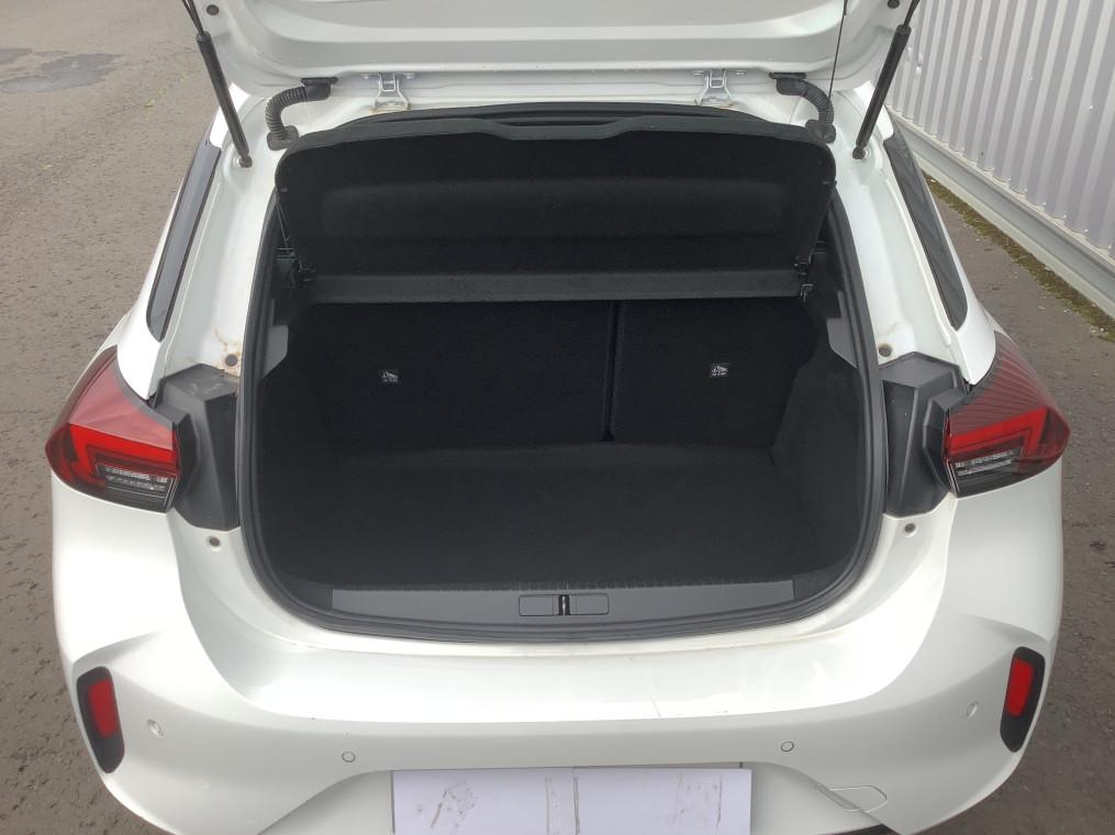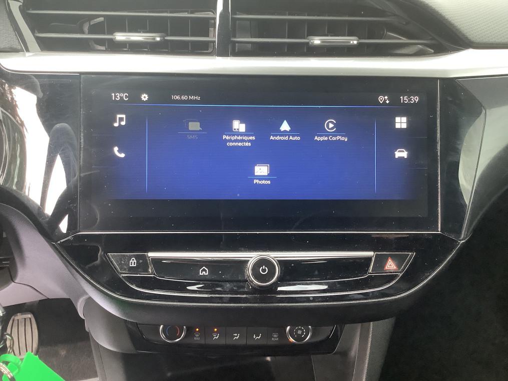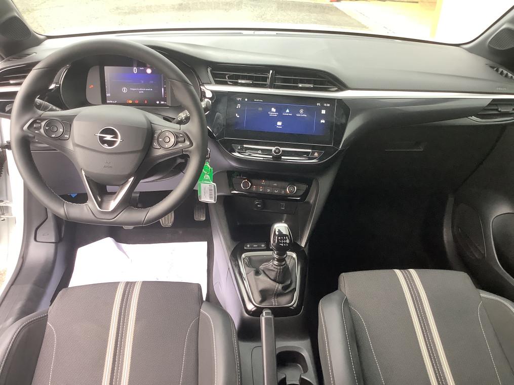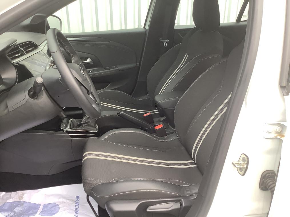 1 cle a telecommande et seconde cle rigide, 1 prise USB type C a l'AV, 4 HP, 5 appuis-tete reglables en hauteur, ABS, ESP, TCS, Aide au stationnement AR, Aide au stationnement AV, Aide au stationnement AV/AR, Airbags frontaux et lateraux conducteur et passager AV, rideaux, Alerte d'angle mort, Alerte de sous-gonflage des pneumatiques, Allumage automatique des feux de croisement, Apple CarPlay et Android Auto sans fil, Banquette AR rabattable 2/3-1/3, Boite manuelle 6 rapports, Calandre Opel Vizor, Camera de recul analogique 130° panoramique, Camera de recul panoramique, Chassis de type sport, Ciel de pavillon noir, Climatisation manuelle, Combine d'instrumentation numerique 7", Console centrale avec porte-gobelets, accoudoir central et espace de rangement, Controle de pression des pneus, Controle electronique de stabilite (ESP), Coquilles de retroviseurs peintes en noir, Decor interieur Noir avec inserts blanc, Decors interieurs avec inserts - Noir/Gris, Detection de non-bouclage des ceintures de securite aux places AV, Direction assistee electrique, Ecran tactile 10" couleur compatible Apple CarPlay/Android Auto sans fil, Fixations Isofix sieges enfants aux places AR laterales, Fonction Bluetooth (appels et streaming audio), Frein a main mecanique, Grille inferieure en nid d'abeilles peinte - Noir, Jantes alliage 16" - Diamante, Jantes alliage 17" - Diamante, Kit anti-crevaison, Lettrage et logo - Noir, Ligne de vitrage noire, Module Opel Connect, Pack Securite avancee, Pack Visibilite LED, Pare-choc AR type sport, Pare-soleils avec miroir de courtoisie cote passager, Peinture bi-ton avec Toit Noir Karbon, Phares AR a LED, Phares AV Eco Full LED, Poignees de portes interieures chromees, Radio FM/AM/DAB+, Retroviseurs exterieurs rabattables electriquement, Retroviseurs exterieurs reglables electriquement, Sellerie Tissu Banda - Noir/Blanc, Siege conducteur reglable dans 6 directions, Siege passager AV reglable dans 4 positions, Sieges AV type sport, Signature lumineuse en forme d'aile a LED, Sortie d'echappement chromee selon moteurs, Spoiler AR, Systeme de freinage avec antiblocage des roues (ABS), Verrouillage automatique de la trappe a essence lors de la fermeture du vehicule, Verrouillage centralise avec telecommande et en roulant, Vitres AV et AR electriques - systeme anti-pincement, Volant 3 branches TEP Vegan, Volant reglable en hauteur et en profondeur