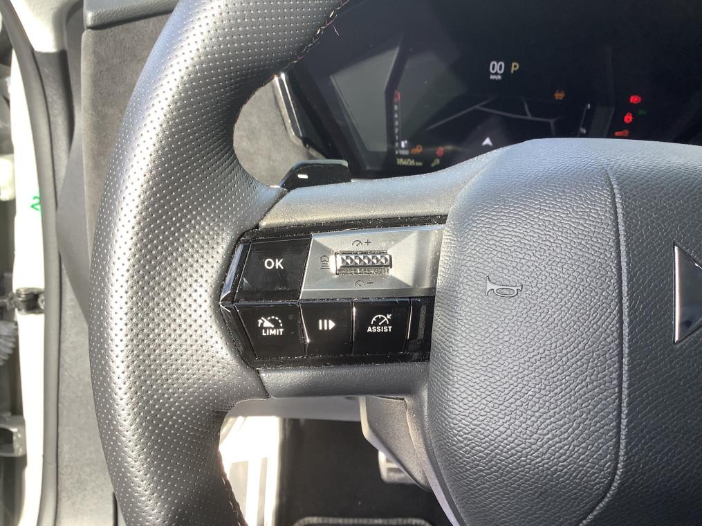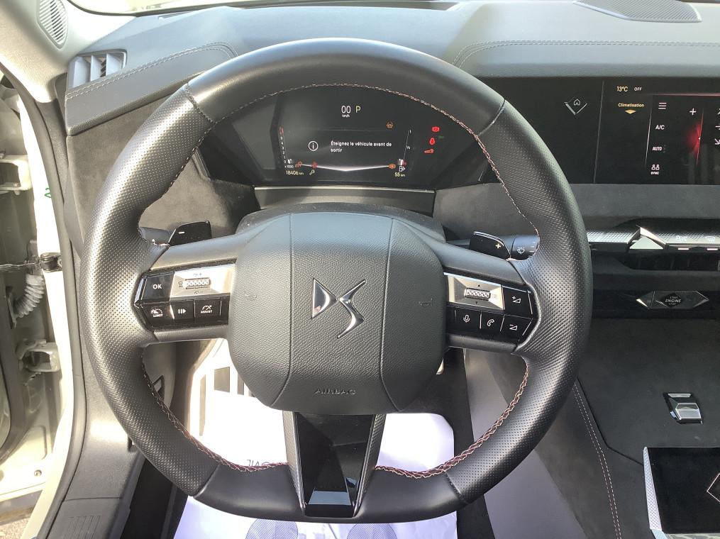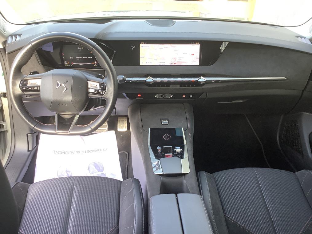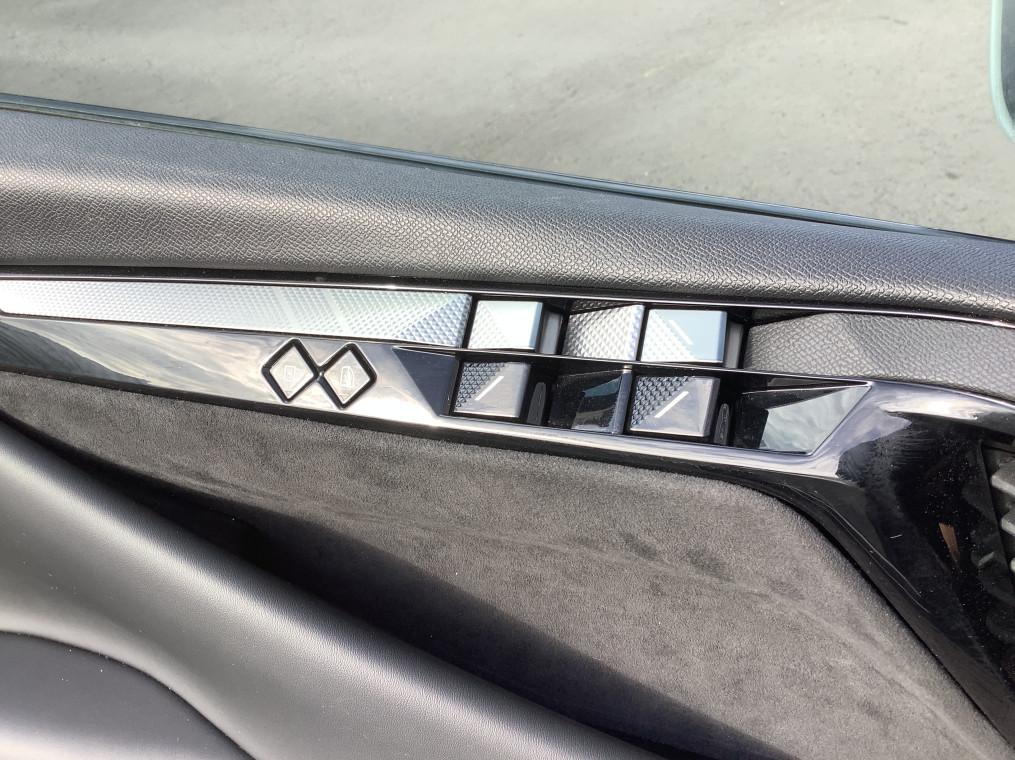 ABS avec repartiteur electronique de freinage (REF) et Aide au Freinage d'Urgence (AFU), Acces et demarrage mains libres Proximity, Accoudoir central AR avec trappe a ski et 2 porte-gobelets, Accoudoir central AV refrigere et eclaire, Adaptive Cruise Control Stop & Go, Aide au stationnement AV et AR et Camera de recul, Airbags frontaux (passager deconnectable), lateraux AV, rideaux aux places AV/AR et central, Alerte Attention Conducteur, Alerte de franchissement involontaire de ligne, Allumage automatique des feux, Antenne "aileron de requin", Avertisseur de risque de collision, Banquette AR 2/3 - 1/3 avec 3 appuie-tete, Banquette AR avec trappe a skis, Black Pack : DS Wings noir brillant, Jonc entre les feux AR noir brillant, Grille de calandre noir brillant, Lecheurs de vitres noir brillant, Boite a gants floquee, Cabochons d'ecrous de roue noir brillant, Capot actif, Climatisation automatique bi-zone, Combine numerique 7", Commutation automatique des feux, Condamnation automatique des portes et du coffre en roulant, Console centrale avec rangement ferme, Controle dynamique de stabilite (ESP) avec antipatinage des roues (ASR), Coques de retroviseurs exterieurs noir brillant, Demarrage mains-libres, Detection de sous-gonflage, Diffuseur AR noir brillant avec decors d'echappement chrome, DS AIR (Aerateurs centraux invisibles avec sabre chrome), DS E-Toggle (Selecteur de vitesses), DS EXTENDED HEAD UP DISPLAY, DS IRIS SYSTEM, DS SMART TOUCH, DS Wings noir brillant, Eclairage d'ambiance a LED, Eclairage de boite a gants, d'accoudoir central AV et de coffre a LED, Eclairage de cave a pieds a LED, Ecran tactile capacitif 10" HD, Enjoliveurs superieurs des vitres laterales noir brillant, Essuie-vitre AV a declenchement et cadencement automatiques, Feux AR Full LED effet 3D avec traitement ecailles, Fixations ISOFIX a la place passager AV et aux places laterales AR, Frein de stationnement electrique automatique, Freinage d'urgence automatique pilote par camera et radar, Freinage multi-collision, Grille de calandre noir brillant, Interieur Alcantara Noir : Planche de bord en alcantara, Decors de panneaux de porte Chrome guilloche, Console centrale en alcantara, Sellerie en Tissu Tresse Basalte avec Alcantara et toile DS, Panneaux de portes en alcantara, Volant en cuir fleur Mistral avec surpiqures, Ciel de pavillon clair, Jantes alliage 19" MINNEAPOLIS, Jonc de volet noir brillant, Kit de depannage provisoire de pneumatiques, Lecheurs de vitres laterales et enjoliveur de custode noir brillant, Leve-vitres AV/AR electriques, sequentiels et antipincement, Lunette AR chauffante, Mirror Screen sans fil via Wifi, Monogramme DS chrome sur l'enjoliveur de custode lateral noir brillant, Monogramme exterieur sur le capot noir brillant, Palettes au volant, Pare-brise teinte acoustique, Pare-soleil avec miroirs de courtoisie occultables eclaires a LED, Pedalier en aluminium, Plafonnier I-Dome, Poignees exterieures affleurantes chromees, Preconditionnement thermique de l'habitacle programmable par smartphone, Predisposition pour roue de secours galette, Prises 12 V, Prises USB, Projecteurs a LED, Radio numerique terrestre (DAB), Reconnaissance des panneaux de vitesse et preconisation, Reconnaissance etendue des panneaux de circulation, Regulateur/Limiteur de vitesse, Retroviseur interieur electrochrome sans cadre, Retroviseurs exterieurs electriques, degivrants, rabattables electriquement, Seuil de coffre aluminium, Seuil de portes AV specifiques, SOS & Assistance, Verins d'ouverture et de maintien du capot moteur, Vitres AR et lunette AR surteintees, Volant reglable en hauteur et profondeur