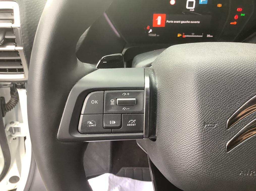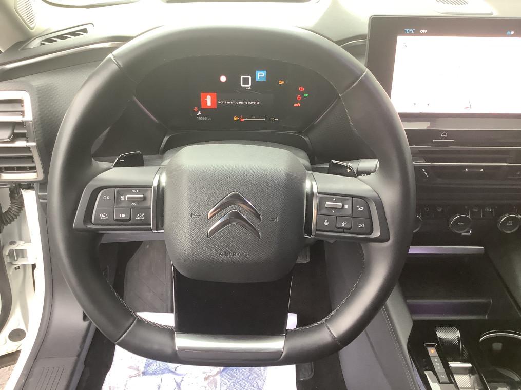 2 prises USB au rang 1 (type C) + 2 prises USB au rang 2 (type C), ABS + REF + AFU, Acces et demarrage mains libres Proximity, Accoudoir central AR avec porte-gobelets integre et trappe a skis, Active Safety Brake 2.0, Aerateurs centraux en rang 2, Aide au demarrage en pente, Aide au positionnement dans la voie, Aide au stationnement AR, Aide au stationnement AV, Airbags frontaux AV, lateraux AV et rideaux, Alerte attention conducteur, Alerte de Franchissement Involontaire de ligne (AFIL), Alerte de trafic AR, Alerte Risque Collision, Allumage automatique des feux de croisement, Allumage des feux de detresse en cas de forte deceleration, Appuie-tetes AV a reglage integre (4 voies), Bacs de rangement sur portes AV/AR, Banquette AR fractionnable 2/3 - 1/3 avec Magic handles, Boite a gants avec eclairage LED, Camera de recul avec Top Rear Vision, Clignotants impulsionnels, Climatisation automatique bi-zone, Combine numerique, Combine numerique couleur, Combine numerique couleur avec retro-eclairage, Commandes au volant du systeme audio, Commutation automatique des feux de route, Condamnation centralisee avec PLIP, Connect Assist : Citroen Connect Box avec Pack SOS et assistance inclus, Console centrale avec rangements et accoudoir, Console centrale haute avec rangements et accoudoir, Coques de retroviseurs exterieurs Noir Brillant, Detection de sous-gonflage, Eclairage a LED (boite a gants, coffre et rangement console centrale), Eclairage d'accueil et d'accompagnement, Eclairage derriere le combine, sous le bandeau de planche et sous la console centrale, Eclairage interieur d'ambiance, Enjoliveurs de bas de portes, passages de roues et bas de boucliers AV et AR en noir gaine, ESP, Essuie-vitre AV automatique avec lavage embarque, Extended Head Up Display - Vision tete haute pare-brise couleur etendue, Feux AR 3D a LED avec signature permanente visible de jour, Feux diurnes a LED, Frein de stationnement electrique automatique, Garnissage Cuir Noir /Tissu effet cuir Noir/Tissu effet cuir Gris Nixon-, Grille de calandre inferieure noir graine avec jonc chrome brillant, Highway Driver Assist (systeme autonome de niveau 2), Jantes alliage 19" AeroX Black Diamond (205/55 R19), Kit de depannage provisoire de pneumatiques, Kit Mains Libres Bluetooth, Lecheurs inferieurs de vitre aspect noir mat, Leve-vitres AV et AR electriques et sequentiels, My Citroen Assist : Citroen Connect Box avec Pack SOS et assistance inclus, MyCitroen Drive Plus Citroen Connect Nav sur tablette tactile 12'', Neutralisation mecanique de l'airbag passager, Pack Safety : Coffee Break Alert, Reconnaissance etendue des panneaux et recommandation de vitesse, Alerte Risque Collision, Regulateur-limiteur de vitesse, Post Collision Safety Brake, Alerte attention conducteur, Alerte de Franchissement Involontaire de ligne (AFIL), Active Safety Brake, Pack Safety Brake 2.0 + Regulateur de vitesse adaptatif avec fonction Stop&Go : Active Safety Brake 2.0, Regulateur de vitesse adaptatif avec fonction Stop&Go, Reconnaissance etendue des panneaux, Pack Visibilite : Allumage automatique des feux de croisement, Essuie-vitre AV automatique avec lavage embarque, Eclairage d'accueil et d'accompagnement, Palette de changement de vitesse au volant, Pare-choc AR avec decors chromes, Pare-choc AV avec decors chromes, Pare-soleils avec miroirs occultable eclairages a LED, Plafonnier AV et AR avec LED retro-eclairage push, Poche aumoniere au dos des sieges AV, Poignees de portes exterieures couleur caisse, Post Collision Safety Brake, Predisposition filet de charges hautes rang, Projecteurs antibrouillard LED avec eclairage statique d'intersection, Projecteurs LED avec signature lumineuse en V, Rails sur tapis de coffre en aluminium, Rangement dans accoudoir AR central avec 2 empreintes canettes, Rangement depose Smartphone AV l'accoudoir central, Rangement ferme en AV de la console centrale, Rangement sous accoudoir central, Recharge sans fil pour smartphone, Reconnaissance etendue des panneaux, Regulateur de vitesse adaptatif avec fonction Stop&Go, Regulateur-limiteur de vitesse, Retroviseur interieur electrochrome frameless, Retroviseurs ex.electriques, degivrants, rabattabl elec. avec eclairage daccueil et pied noir grain, Securite enfants mecanique, Siege AV reglables en hauteur, Siege conducteur avec reglage lombaire, Siege passager avec reglage lombaire, Sieges Advanced Comfort, Suspension Citroen Advanced Comfort, Systeme audio numerique (DAB) MP3 8 HP, Systeme de surveillance d'angle mort longue distance, Tablette tactile 12", Temoin de non-bouclage des ceintures de securite conducteur et passager, Temoin et alerte de non bouclage des ceintures conducteur et passagers AV et AR, Vision tete haute pare-brise couleur etendue, Vitres et lunette AR surteintees, Volant chauffant en cuir pleine fleur, Volant cuir avec commandes integrees, reglable en hauteur et en profondeur, Volant cuir graine avec commandes integrees, reglable en hauteur et en profondeur