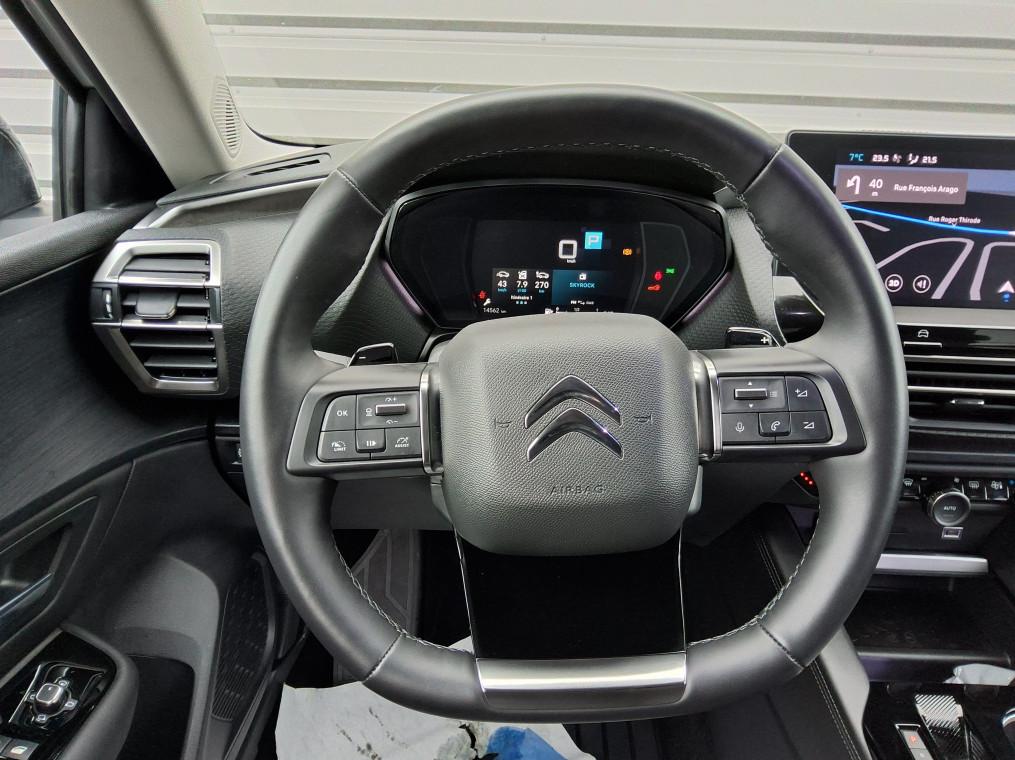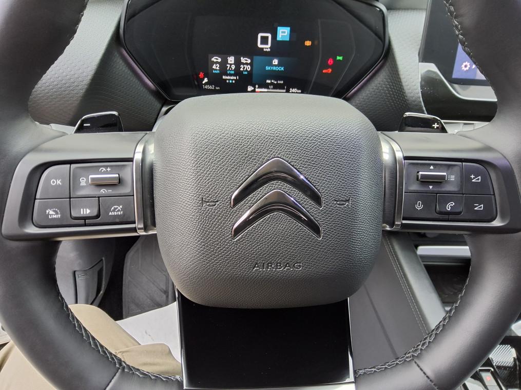 2 prises USB au rang 1 (type C) + 2 prises USB au rang 2 (type C), ABS + REF + AFU, Acces et demarrage mains libres Proximity, Accoudoir central AR avec porte-gobelets integre et trappe a skis, Active Safety Brake 2.0, Aerateurs centraux en rang 2, Aide au demarrage en pente, Aide au positionnement dans la voie, Aide au stationnement AR, Aide au stationnement AV, Airbags frontaux AV, lateraux AV et rideaux, Alerte attention conducteur, Alerte de Franchissement Involontaire de ligne (AFIL), Alerte de trafic AR, Alerte Risque Collision, Allumage automatique des feux de croisement, Allumage des feux de detresse en cas de forte deceleration, Appuie-tetes AV a reglage integre (4 voies), Bacs de rangement sur portes AV/AR, Banquette AR fractionnable 2/3 - 1/3 avec Magic handles, Boite a gants avec eclairage LED, Camera de recul avec Top Rear Vision, Clignotants impulsionnels, Climatisation automatique bi-zone, Combine numerique, Combine numerique couleur, Combine numerique couleur avec retro-eclairage, Commandes au volant du systeme audio, Commutation automatique des feux de route, Condamnation centralisee avec PLIP, Connect Assist : Citroen Connect Box avec Pack SOS et assistance inclus, Console centrale avec rangements et accoudoir, Console centrale haute avec rangements et accoudoir, Coques de retroviseurs exterieurs Noir Brillant, Detection de sous-gonflage, Eclairage a LED (boite a gants, coffre et rangement console centrale), Eclairage d'accueil et d'accompagnement, Eclairage derriere le combine, sous le bandeau de planche et sous la console centrale, Eclairage interieur d'ambiance, Enjoliveurs de bas de portes, passages de roues et bas de boucliers AV et AR en noir gaine, ESP, Essuie-vitre AV automatique avec lavage embarque, Extended Head Up Display - Vision tete haute pare-brise couleur etendue, Feux AR 3D a LED avec signature permanente visible de jour, Feux diurnes a LED, Frein de stationnement electrique automatique, Garnissage Cuir Noir /Tissu effet cuir Noir/Tissu effet cuir Gris Nixon-, Grille de calandre inferieure noir graine avec jonc chrome brillant, Highway Driver Assist (systeme autonome de niveau 2), Jantes alliage 19" AeroX Black Diamond (205/55 R19), Kit de depannage provisoire de pneumatiques, Kit Mains Libres Bluetooth, Lecheurs inferieurs de vitre aspect noir mat, Leve-vitres AV et AR electriques et sequentiels, My Citroen Assist : Citroen Connect Box avec Pack SOS et assistance inclus, MyCitroen Drive Plus Citroen Connect Nav sur tablette tactile 12'', Neutralisation mecanique de l'airbag passager, Pack Safety : Coffee Break Alert, Reconnaissance etendue des panneaux et recommandation de vitesse, Alerte Risque Collision, Regulateur-limiteur de vitesse, Post Collision Safety Brake, Alerte attention conducteur, Alerte de Franchissement Involontaire de ligne (AFIL), Active Safety Brake, Pack Safety Brake 2.0 + Regulateur de vitesse adaptatif avec fonction Stop&Go : Active Safety Brake 2.0, Regulateur de vitesse adaptatif avec fonction Stop&Go, Reconnaissance etendue des panneaux, Pack Visibilite : Allumage automatique des feux de croisement, Essuie-vitre AV automatique avec lavage embarque, Eclairage d'accueil et d'accompagnement, Palette de changement de vitesse au volant, Pare-choc AR avec decors chromes, Pare-choc AV avec decors chromes, Pare-soleils avec miroirs occultable eclairages a LED, Plafonnier AV et AR avec LED retro-eclairage push, Poche aumoniere au dos des sieges AV, Poignees de portes exterieures couleur caisse, Post Collision Safety Brake, Predisposition filet de charges hautes rang, Projecteurs antibrouillard LED avec eclairage statique d'intersection, Projecteurs LED avec signature lumineuse en V, Rails sur tapis de coffre en aluminium, Rangement dans accoudoir AR central avec 2 empreintes canettes, Rangement depose Smartphone AV l'accoudoir central, Rangement ferme en AV de la console centrale, Rangement sous accoudoir central, Recharge sans fil pour smartphone, Reconnaissance etendue des panneaux, Regulateur de vitesse adaptatif avec fonction Stop&Go, Regulateur-limiteur de vitesse, Retroviseur interieur electrochrome frameless, Retroviseurs ex.electriques, degivrants, rabattabl elec. avec eclairage daccueil et pied noir grain, Securite enfants mecanique, Siege AV reglables en hauteur, Siege conducteur avec reglage lombaire, Siege passager avec reglage lombaire, Sieges Advanced Comfort, Suspension Citroen Advanced Comfort, Systeme audio numerique (DAB) MP3 8 HP, Systeme de surveillance d'angle mort longue distance, Tablette tactile 12", Temoin de non-bouclage des ceintures de securite conducteur et passager, Temoin et alerte de non bouclage des ceintures conducteur et passagers AV et AR, Vision tete haute pare-brise couleur etendue, Vitres et lunette AR surteintees, Volant chauffant en cuir pleine fleur, Volant cuir avec commandes integrees, reglable en hauteur et en profondeur, Volant cuir graine avec commandes integrees, reglable en hauteur et en profondeur