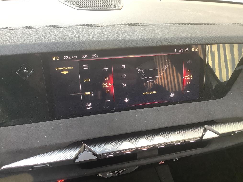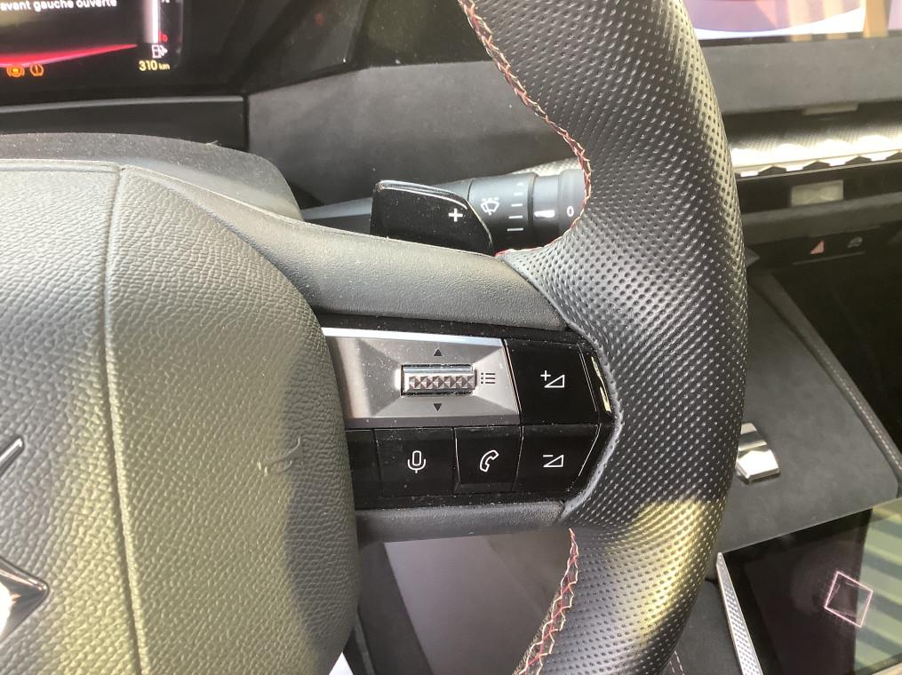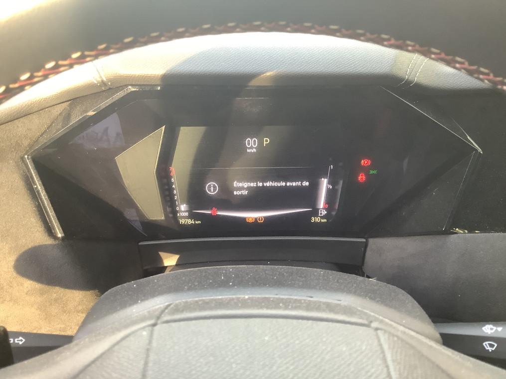 ABS avec repartiteur electronique de freinage (REF) et Aide au Freinage d'Urgence (AFU), Acces et demarrage mains libres Proximity, Accoudoir central AR avec trappe a ski et 2 porte-gobelets, Accoudoir central AV refrigere et eclaire, Adaptive Cruise Control Stop & Go, Aide au stationnement AV et AR et Camera de recul, Airbags frontaux (passager deconnectable), lateraux AV, rideaux aux places AV/AR et central, Alerte Attention Conducteur, Alerte de franchissement involontaire de ligne, Allumage automatique des feux, Antenne "aileron de requin", Avertisseur de risque de collision, Banquette AR 2/3 - 1/3 avec 3 appuie-tete, Banquette AR avec trappe a skis, Black Pack : DS Wings noir brillant, Jonc entre les feux AR noir brillant, Grille de calandre noir brillant, Lecheurs de vitres noir brillant, Boite a gants floquee, Cabochons d'ecrous de roue noir brillant, Capot actif, Climatisation automatique bi-zone, Combine numerique 7", Commutation automatique des feux, Condamnation automatique des portes et du coffre en roulant, Console centrale avec rangement ferme, Controle dynamique de stabilite (ESP) avec antipatinage des roues (ASR), Coques de retroviseurs exterieurs noir brillant, Demarrage mains-libres, Detection de sous-gonflage, Diffuseur AR noir brillant avec decors d'echappement chrome, DS AIR (Aerateurs centraux invisibles avec sabre chrome), DS E-Toggle (Selecteur de vitesses), DS EXTENDED HEAD UP DISPLAY, DS IRIS SYSTEM, DS SMART TOUCH, DS Wings noir brillant, Eclairage d'ambiance a LED, Eclairage de boite a gants, d'accoudoir central AV et de coffre a LED, Eclairage de cave a pieds a LED, Ecran tactile capacitif 10" HD, Enjoliveurs superieurs des vitres laterales noir brillant, Essuie-vitre AV a declenchement et cadencement automatiques, Feux AR Full LED effet 3D avec traitement ecailles, Fixations ISOFIX a la place passager AV et aux places laterales AR, Frein de stationnement electrique automatique, Freinage d'urgence automatique pilote par camera et radar, Freinage multi-collision, Grille de calandre noir brillant, Interieur Alcantara Noir : Planche de bord en alcantara, Decors de panneaux de porte Chrome guilloche, Console centrale en alcantara, Sellerie en Tissu Tresse Basalte avec Alcantara et toile DS, Panneaux de portes en alcantara, Volant en cuir fleur Mistral avec surpiqures, Ciel de pavillon clair, Jantes alliage 19" MINNEAPOLIS, Jonc de volet noir brillant, Kit de depannage provisoire de pneumatiques, Lecheurs de vitres laterales et enjoliveur de custode noir brillant, Leve-vitres AV/AR electriques, sequentiels et antipincement, Lunette AR chauffante, Mirror Screen sans fil via Wifi, Monogramme AR noir brillant, Monogramme AV noir mat, Monogramme DS chrome sur l'enjoliveur de custode lateral noir brillant, Monogramme exterieur sur le capot noir brillant, Pack Sieges mecaniques avec reglages lombaires conducteur et passager, Palettes au volant, Pare-brise teinte acoustique, Pare-soleil avec miroirs de courtoisie occultables eclaires a LED, Pedalier en aluminium, Plafonnier I-Dome, Poignees exterieures affleurantes chromees, Preconditionnement thermique de l'habitacle programmable par smartphone, Predisposition pour roue de secours galette, Prises 12 V, Prises USB, Projecteurs a LED, Radio numerique terrestre (DAB), Reconnaissance des panneaux de vitesse et preconisation, Reconnaissance etendue des panneaux de circulation, Regulateur/Limiteur de vitesse, Retroviseur interieur electrochrome sans cadre, Retroviseurs exterieurs electriques, degivrants, rabattables electriquement, Seuil de coffre aluminium, Seuil de portes AV specifiques, SOS & Assistance, Surtapis AV/AR, Teinte Caisse nacree, Teinte Caisse nacree Noir Perla Nera, Verins d'ouverture et de maintien du capot moteur, Vitres AR et lunette AR surteintees, Volant reglable en hauteur et profondeur