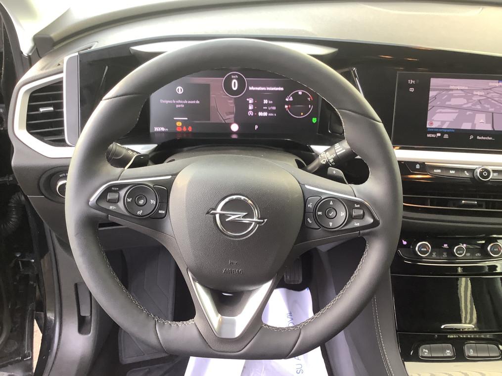 2 cles avec telecommande, 3 appuis-tete AR, 6 HP, Accoudoir avec rangement et 2 porte-gobelets, Accoudoir central AR avec trappe a ski, Aide au demarrage en cote, Aide au stationnement AV/AR, Aide au stationnement avancee : detection et avertissement des emplacements, calcul de la, Airbags frontaux et lateraux conducteur et passager AV, Airbags rideaux, Allumage automatique des feux, Android Auto, Android Auto sans fil, Apple CarPlay, Appuie-tetes AV reglables, Banquette AR rabattable 1/3 - 2/3, Bas de pare-choc AV/AR arches de roue : couleur carrosserie, Calandre Opel Vizor, Caméra de recul 180°, Capteur de pluie, Climatisation automatique bi-zone avec filtre anti-pollen, Commutation automatique des feux, Console centrale avec frein de parking electrique, Controle electronique de stabilite (ESP), Coquilles de retroviseurs peintes en noir, Dossier de banquette AR rabattable 1/3 - 2/3, Eclairage d'ambiance, Eclairage d'ambiance de l'habitacle, Eclairage du coffre, Ecran d'instrumentation couleur 12", Ecran tactile 10'' couleur avec Bluetooth, Entree et demarrage sans cle, Feux AR a LED, Filtre anti-particules et odeur, Frein de parking electrique, Jantes en alliage 18'', 5 doubles branches, bi-ton argent/noir, Ligne de vitrage chromee, Multimedia Navi Pro, Opel PURE PANEL, Opel Vizor noir, Ordinateur de bord, Pack Active Drive Assist : Systeme anti-collision a tous niveaux de vitesse et detection des pietons et cyclistes, Regulateur de vitesse adaptatif avec fonction Stop & Go, Systeme de conduite semi-autonome, Pack Camera Opel Eye : Regulateur et limiteur de vitesse programmable, Reconnaissance des panneaux de signalisation amelioree, Systeme anti-collision a basse vitesse et detection des pietons, Alerte anti-somnolence, Aide actif au maintien dans la voie, Pack de Recharge : Prise 12V dans le coffre, Prise electrique 230V a l'AR de la console centrale, Rechargeur smartphones par induction, Pack Eclairage AV : Phares AV adaptatifs inteliLux LED Pixel Light, Phares anti-brouillards, Pack Hiver AGR en combinaison avec Sellerie Harlequin : Pare-brise chauffant, Siege passager AV avec reglage lombaire electrique et soutien pour les cuisses, Siege passager AV reglable dans 6 directions, Accoudoir central AR avec trappe a ski, Sieges AV chauffants, Siege passager AV ergonomique certifie AGR, Pare-brise acoustique, Pare-soleil avec miroir de courtoisie eclaire, Pare-soleil avec miroir de courtoisie eclaire cote conducteur et passager, Passage automatique feux de route/feux de croisement, Passage de porte "Opel", Pedalier Chrome, Phares anti-brouillards, Phares AV adaptatifs inteliLux LED Pixel Light, Prise 12V dans le coffre, Prise electrique 230V a l'AR de la console centrale, Protections bas de porte couleur carrosserie, Rails de toit noir brillant, Recharge smartphones par induction, Retroviseur avec alerte d'angle mort, Retroviseur interieur electrochrome, Retroviseurs exterieurs a reglage electrique et degivrants, Retroviseurs exterieurs rabattables electriquement, Sabots de protection AV/AR "Silver", Siege conducteur avec reglage lombaire electrique et soutien pour les cuisses, Siege conducteur ergonomique certifie AGR, Siege conducteur reglable dans 6 directions, Siege passager AV ergonomique certifie AGR, Spots de lecture AV et AR, Systeme anti-blocage des roues (ABS), Systeme anti-collision a tous niveaux de vitesse et detection des pietons et cyclistes, Systeme de conduite semi-autonome, Systeme Isofix sieges lateraux AR, Systeme Start/Stop, Toit Noir Karbon, Verrouillage centralise, Vitres AR surteintees, Vitres AV et AR electriques, Volant avec palette de changement de rapports, Volant cuir multifonctions 3 branches a meplat