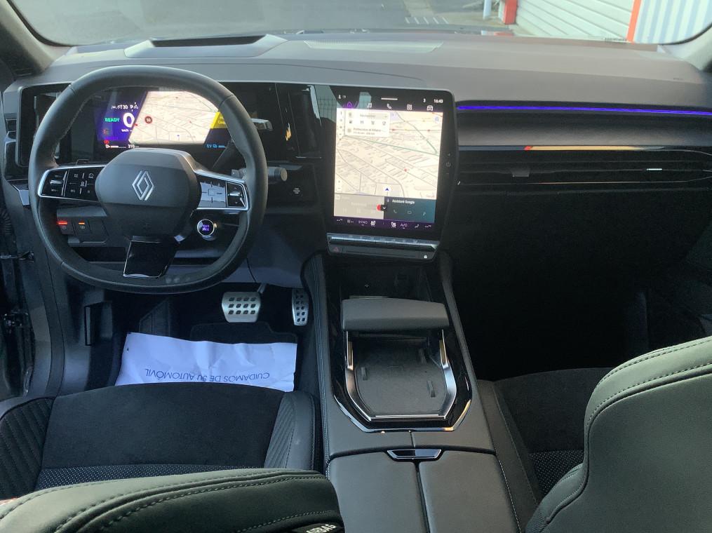 4Control advanced, ABS avec aide au freinage d'urgence, Aide au freinage d'urgence, Aide au parking AV/AR et lateral, Airbags frontaux (conducteur et passager), Airbags lateraux bassin / thorax conducteur et passager AV, Airbags lateraux, rideaux et central AV, Alerte de distance de securite, Alerte franchissement de ligne et assistant maintien dans la voie, Alerte sortie securisee des occupants, Appel d'urgence, Avertisseur d'angle mort et prevention sortie de voie en cas de depassement, Avertisseur de sortie de stationnement en marche AR avec freinage d'urgence automatique, Boite de vitesse hybride multimode 6 rapports, Carte Renault acces et demarrage mains libres, Chargeur smartphone a induction, Ciel de toit gris anthracite, Clignotants AR dynamiques, Climatisation automatique bi-zone, Commutation automatique des feux de route/croisement, Console centrale avec repose main coulissant, Console de toit avec porte-lunettes, Controle de la traction (TCS), Feux AV adaptive LED vision, Frein de parking electrique, Hayon motorise, Jantes alliage 20'' castellet noires diamantees, Kit de gonflage, Leve-vitres AR electriques a impulsion, Leve-vitres AV electriques a impulsion, Lumiere d'ambiance personnalisable, Maintenance connectee, incluse pendant 8 ans, Miroir de surveillance enfants, Mise a jour systeme (via firmware over the air FOTA), inclus pendant 5 ans, Multi-sense, Navigation Google Maps, Notice d'utilisation digitale embarque dans le systeme multimedia du vehicule, Pack connected driving, inclus pendant 5 ans, Pack controle a distance (via lapplication My Renault), inclus pendant 5 ans, Pack Design esprit Alpine exterieur, Pack Design esprit Alpine interieur, Palettes au volant, Plaque de protection de coffre en aluminium, Regulateur de vitesse adaptatif, Retroviseur interieur electrochrome sans cadre, Retroviseurs exterieurs electriques, degivrants, rabattables automatiquement, Sellerie mixte Alcantara avec surpiqures bleues et logo Alpine lumineux, Siege conducteur et passager avec reglage en hauteur, Sieges AV chauffants, Sieges avec systeme ISOFIX, Systeme de controle de trajectoire ESC, Systeme de surveillance de la pression des pneus, Systeme Multimedia openR link 12" : navigation & services Google integres, audio Arkamys Auditorium, Tableau de bord full numerique 12,3'', Verrouillage centralisee, Volant reglable en hauteur et profondeur