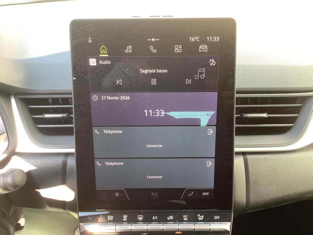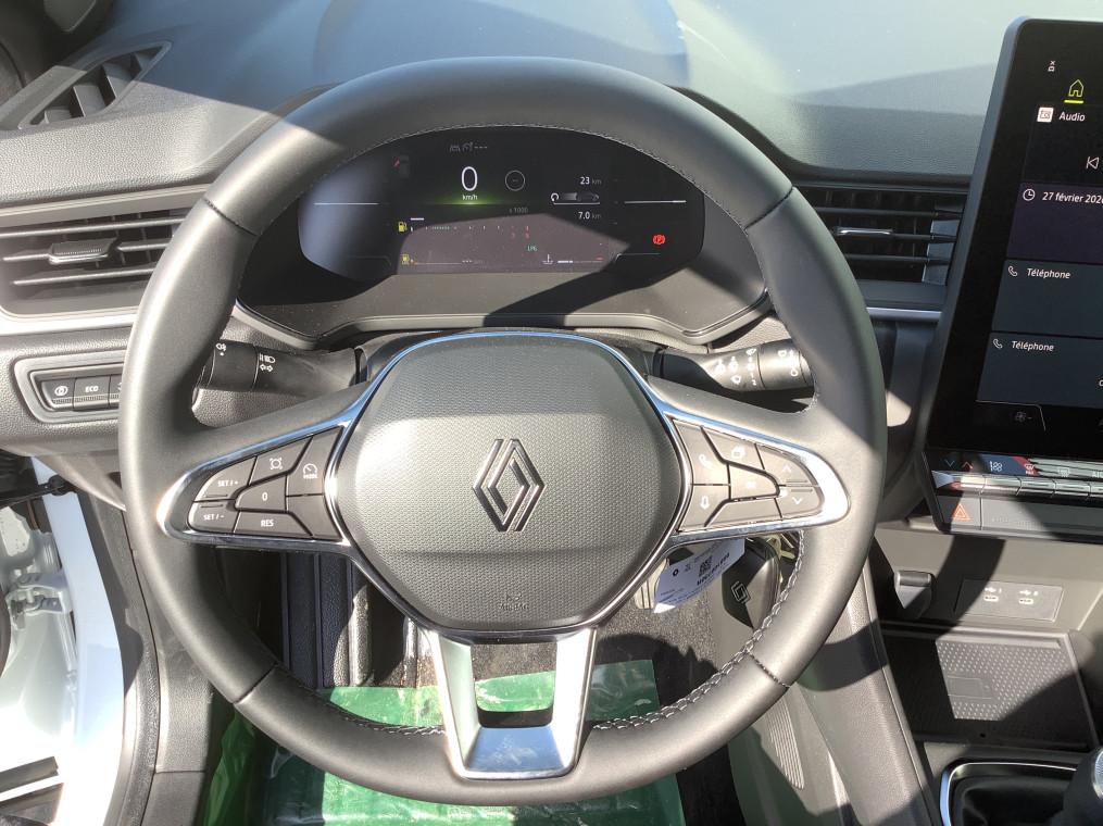 Aide au demarrage en cote, Aide au freinage d'urgence (A.F.U.), Aide au parking AR, Airbag passager deconnectable, Airbags frontaux, Airbags lateraux AV, Alerte detection de fatigue, Alerte distance de securite - Information dans tableau de bord, Alerte oubli des ceintures de securite aux 5 places, Alerte sortie de voie, Allumage automatique des phares avec capteur de luminosite, Antenne requin, Antiblocage des roues ABS, Appuie-tetes AR, Badges noir brillant, Banquette AR coulissante et rabattable 1/3 - 2/3, Camera de recul, Climatisation manuelle, Condamnation centralisee des portes avec telecommande et condamnation des portes en roulant, Console centrale de rangement avec accoudoir, Controle de la traction (TCS), Controle dynamique de trajectoire ESC, Coques de retroviseurs noir/teinte caisse, Direction assistee, Eclairage AV et AR Full LED Pure Vision, Enjoliveurs 17'' Nymphea, Feux AR LED avec signature en forme de "C", Feux de stop a LED, Harmonie beige, Hayon AR manuel, Indicateur de changement de vitesse, Kit de gonflage et de reparation des pneumatiques, Leve-vitres electriques et impulsionnels, Liseuses LED, Lunette AR chauffante, Maintenance connectee, incluse pendant 8 ans, Mise a jour systeme (via firmware over the air FOTA), inclus pendant 5 ans, Mode ECO, OpenR link 10,4" access display audio avec tableau de bord avec ecran numerique et personlisable 7", Pack connected driving, inclus pendant 5 ans, Pack controle a distance (via lapplication My Renault), inclus pendant 5 ans, Poignees de portes ton caisse, Reconnaissance des panneaux de signalisation, Regulateur limiteur de vitesse, Repetiteurs lateraux de changement de direction, Retroviseur interieur jour/nuit, Retroviseurs exterieurs electriques degivrants, Sellerie tissu, Siege conducteur reglable en hauteur, Systeme de detection de la pression des pneumatiques, Systeme de freinage d'urgence avance, Systeme ISOFIX (i-Size) aux places laterales AR et passager AV, Volant en tissus