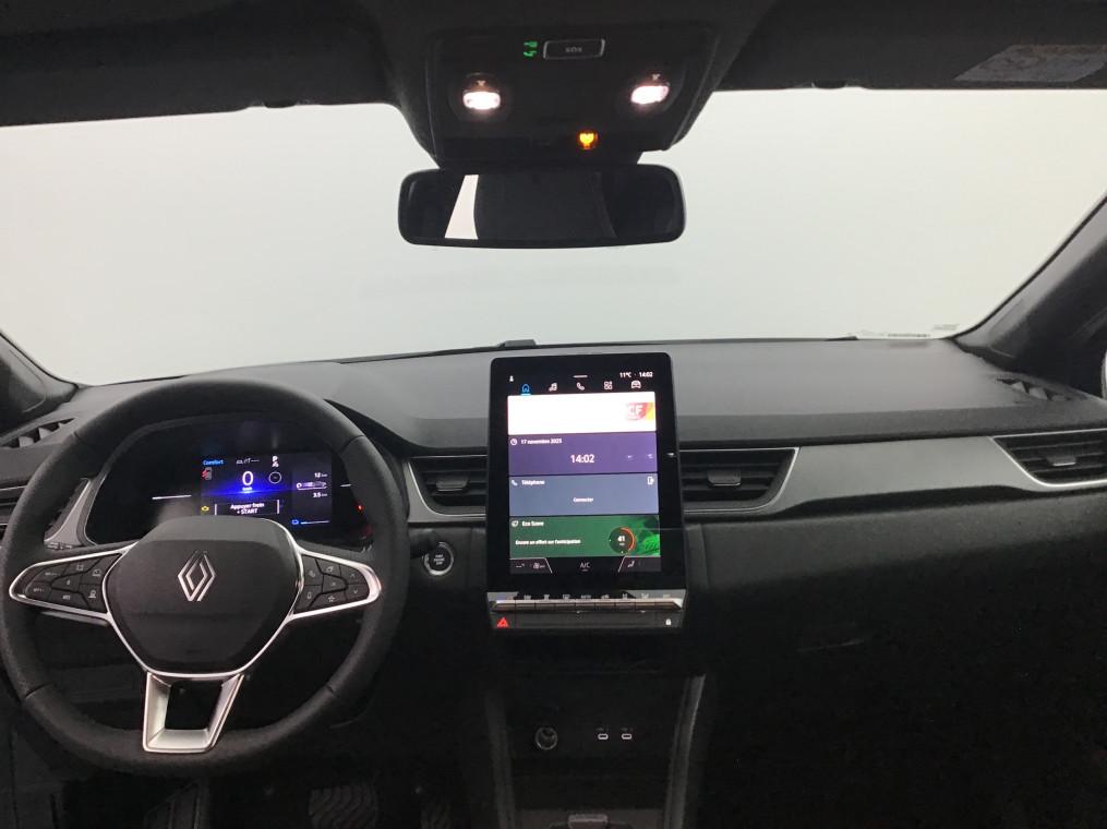 Aide au demarrage en cote, Aide au freinage d'urgence (A.F.U.), Aide au parking AR, Airbag passager deconnectable, Airbags frontaux, Airbags lateraux AV, Alerte detection de fatigue, Alerte distance de securite - Information dans tableau de bord, Alerte oubli des ceintures de securite aux 5 places, Alerte sortie de voie, Allumage automatique des essuie-glaces, Antenne requin, Antiblocage des roues ABS, Appel d'urgence, Appel d'Urgence Renault, Appuie-tetes AR, Banquette AR coulissante et rabattable 1/3 - 2/3, Boite de vitesse hybride multimode 6 rapports, Camera de recul, Carte Renault "Mains libres", Climatisation automatique, Condamnation centralisee des portes avec telecommande et condamnation des portes en roulant, Console centrale de rangement avec accoudoir, Controle de la traction (TCS), Controle dynamique de trajectoire ESC, Coques de retroviseurs noir/teinte caisse, Direction assistee, Eclairage AV et AR Full LED Pure Vision, Feux AR LED avec signature en forme de ''C'' et animation 3D, Feux de stop a LED, Frein de parking electrique avec fonction Auto-Hold, Harmonie noire, Indicateur de changement de vitesse, Jantes Aluminium 18'', Kit de gonflage et de reparation des pneumatiques, Leve-vitres electriques et impulsionnels, Liseuses AV a LED, Lunette AR chauffante, OpenR link 10,4 access display audio avec tableau de bord avec ecran numerique et personlisable 7", Plancher de coffre mobile, Poignees de portes ton caisse, Reconnaissance des panneaux de signalisation, Regulateur de vitesse adaptatif, Renault Multi-sense, Repetiteurs lateraux de changement de direction, Retroviseur interieur electrochrome, Sellerie Techno, Sieges AV reglables en hauteur, Systeme de detection de la pression des pneumatiques, Systeme de freinage d'urgence avance, Vitres AR surteintees, Volant textile enduit graine