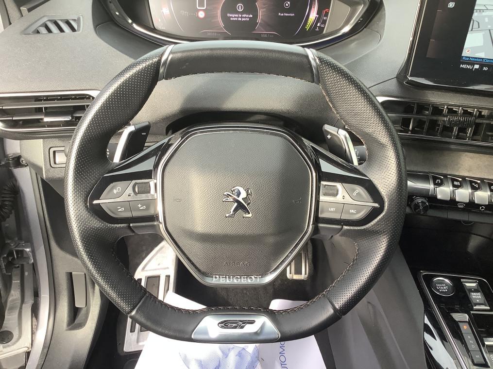 6 airbags (Frontaux adaptatifs, lateraux AV, rideaux AV/AR), Acces et demarrage mains libres, Accoudoir central AV a ouverture papillon, avec compartiment de rangement eclaire et refrigerable, Air conditionne automatique bi-zone avec aerateurs aux places AR, Appuis-tete a securite optimisee reglables en hauteur (conducteur, passager et AR x3), Avertisseur de temps de conduite, Banquette AR rabattable 1/3 - 2/3 avec accoudoir central, trappe a skis et commandes de, Barres de toit longitudinales en aluminium, Calandre avec design evolutif chrome, Commandes de leve-vitres avec inserts chromes, Coques de retroviseurs exterieurs Noir Perla Nera, Decors de planche de bord et panneaux de portes Alcantara Gris Greval, Detection de sous-gonflage indirecte, Drive Mode : Choix de 2 modes de conduite (Eco ou Sport), Driver Sport Pack : Pedale d'accelarateur plus reactive, Possibilite d'affichage des parametres vehicule dans le combine numerique tete haute, Sonorite du moteur amplifiee et plus sportive, Passage de vitesses sport, Direction assistee plus sportive, Enjoliveur d'arc de pavillon en Inox Brillant, Enjoliveurs d'ailes AV chromes, Essuie-vitre AV avec systeme de lavage "Magic Wash", Feux AR a LED avec effet 3D, clignotants a defilement, Fixations ISOFIX (passager AV et aux places laterales AR), Fonction "Mirror Screen" (Apple CarPlay / Android Auto ), Frein de stationnement electrique avec aide au demarrage en pente et serrage automatique, Garnissage Tissu BELOMKA / TEP, Habitacle et ciel de pavillon Noir Mistral, Indicateur de rapport conseille, Jantes alliage 18" diamantees DETROIT bi-ton Noir Onyx brillant, Kit de depannage de pneumatique : Compresseur 12 volts, flacon de produit de colmatage, anneau de remorquage, Kit de depannage de pneumatique : compresseur 12 volts, flacon de produit de colmatage, anneau de, Lecheurs de vitres, joncs de vitres laterales en Inox Brillant, Leve-vitres AV/AR electriques et sequentiels avec antipincement, Navigation 3D connectee avec ecran tactile capacitif 10" HD, Pack City 1 : Aide graphique et sonore au stationnement AV, Visiopark 1 : camera de recul avec restitution sur l'ecran tactile d'une vue AR et d'une vue de, Aide graphique et sonore au stationnement AR, Pack Drive Assist Plus : Aide au maintien de la position dans la voie (Lane Positioning Assist), Regulateur de vitesse adaptatif avec fonction Stop&Go, Pack Eclairage d'ambiance - Eclairage a LED des caves a pied : Eclairage a LED des caves a pied, Pack Safety Plus : Freinage d'urgence automatique par camera, Commutation automatique des feux de route / feux de croisement, Systeme de surveillance d'angle mort, Alerte attention conducteur, Alerte active de franchissement involontaire de ligne et bas cote, Alerte Risque de Collision (Distance Alert), Pack Visibilite : Essuie-vitre AV a declenchement automatique, Allumage automatique des feux de croisement, Eclairage d'accompagnement automatique, Pares-soleil avec miroirs de courtoisie eclaires, Passages de roues rapportes Noir Mat, Pedalier et repose-pied conducteur en aluminium, PEUGEOT Connect SOS & Assistance et Teleservices, Peugeot i-Cockpit avec combine tete haute numerique, volant compact multi-fonctions, Plafonniers AV/AR a LED avec 2 spots de lecture, Plancher de coffre 2 positions, Poches aumonieres au dos des sieges AV, Poches/filets aumonieres au dos des sieges AV, Prise 12 V (x3 : zone connectique, AR de console et coffre), Prises USB de charge (x2) au 2eme rang, Projecteurs "Peugeot Full LED Technology" avec correction automatique de site, fonction, Protecteurs de bas de portes avec inserts Inox Brillant, Reconnaissance etendue des panneaux de signalisation, Retroviseur interieur photosensible sans cadre, Retroviseurs exterieurs degivrants avec reglage et rabattement electriques, Securite enfants electrique des vitres AR, Seuils de portes AV en Inox, Siege conducteur avec reglage lombaire, Surtapis AV/AR, Systeme stop & go couple avec l'assistance au positionnement sur la voie, Toggle Switches chromes (touches piano d'activation des fonctions de l'ecran tactile), Toit "Black Diamond", Vitres laterales AR et lunette AR chauffante surteintees, Volant cuir fleur perfore Mistral avec bagues chromees et badge GT