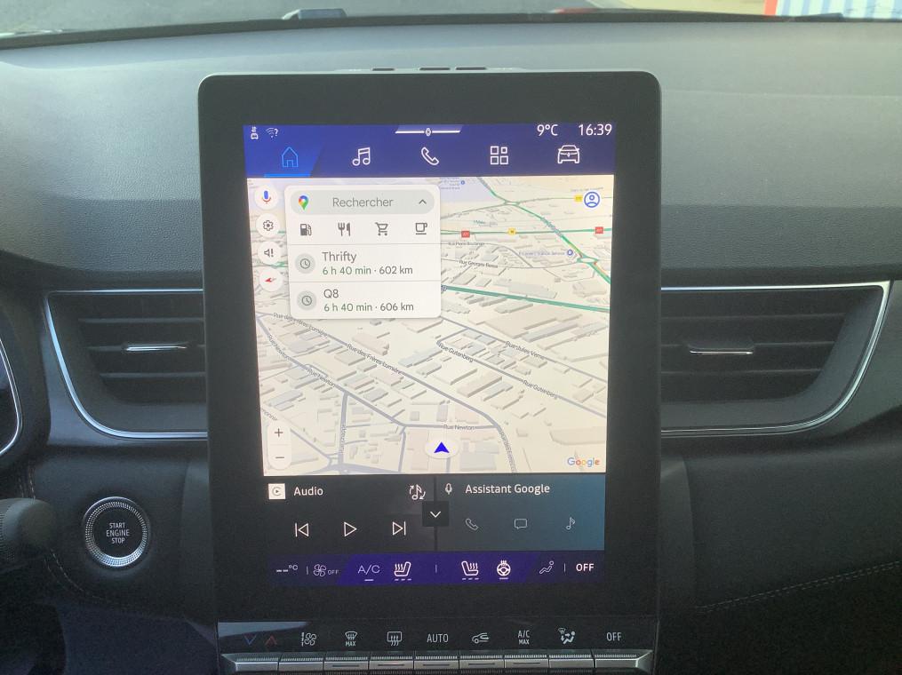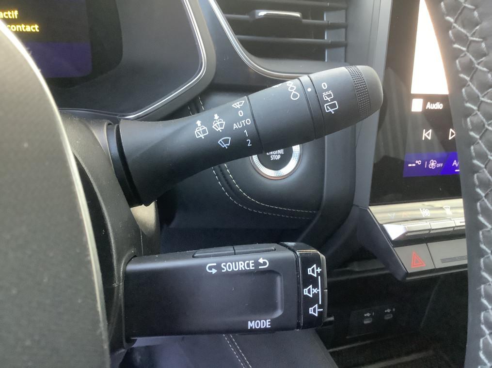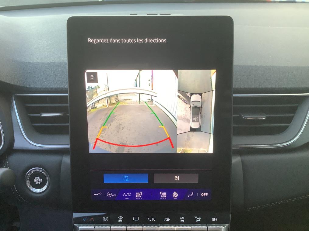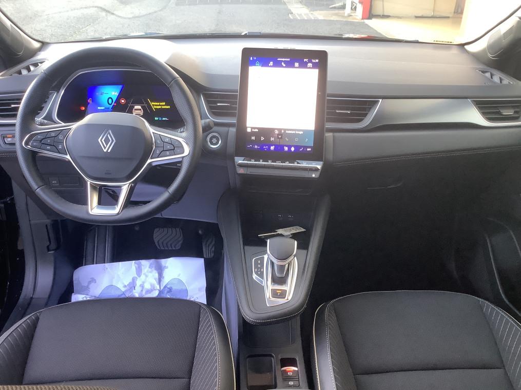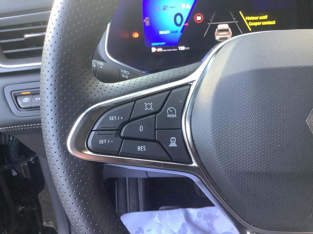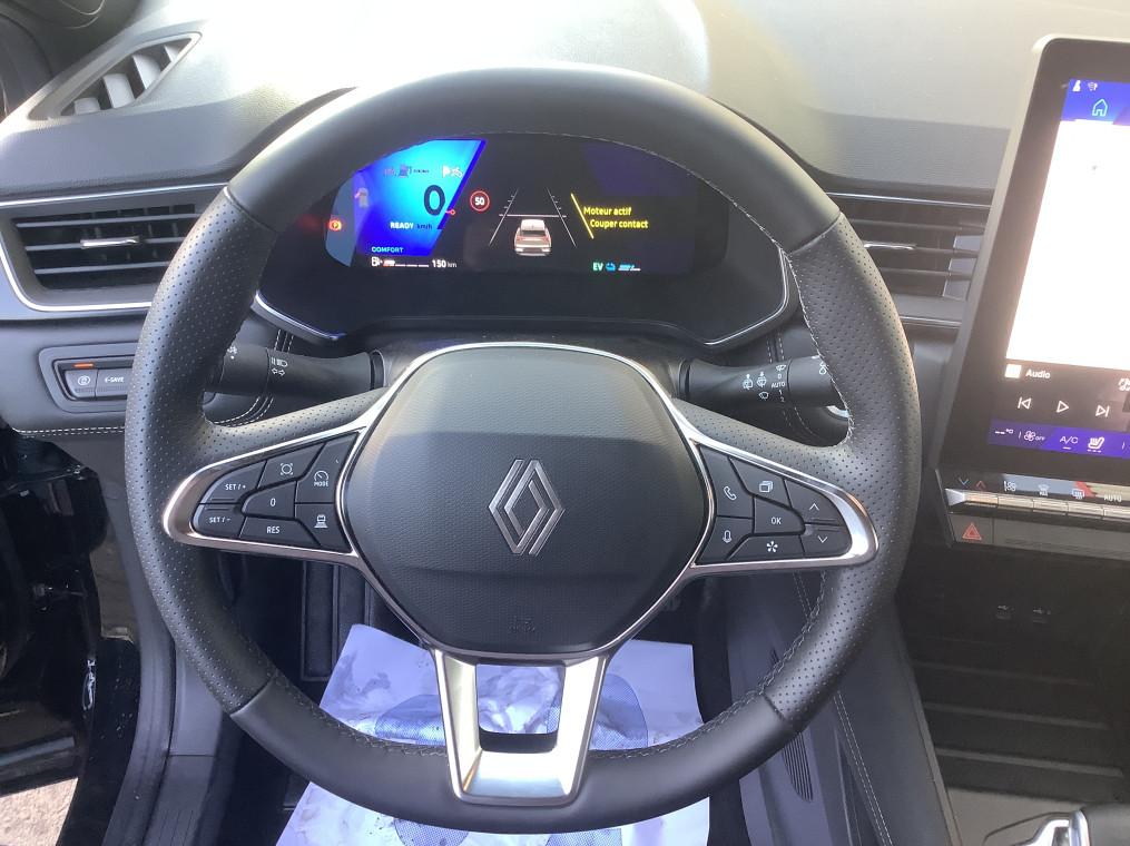 Aide au freinage d'urgence (A.F.U.), Airbag passager deconnectable, Airbags frontaux conducteur et passager adaptatif, Airbags lateraux AV, Alerte de distance de securite, Alerte detection de fatigue, Alerte franchissement de ligne et assistant maintien dans la voie, Alerte sortie securisee des occupants, Allumage automatique des essuie-glaces, Antenne Requin, Antiblocage des roues ABS, Appel d'urgence, Appuie-tetes AR, Avertisseur d'angle mort et detection AR avec centrage dans la voie, Avertisseur de sortie de stationnement en marche AR avec freinage d'urgence automatique, Banquette AR coulissante et rabattable 1/3 - 2/3, Boitier connect AIVC, Camera 3D vision 360°, Carte "Mains libres", Cartographie Standard, Ceinture centrale AR 3 points, Chargeur smartphone a induction, Climatisation automatique, Compartiment de coffre, Condamnation centralisee des portes, Conduite hybride predictive, Eclairage AV et AR Full LED Pure Vision, Feux AR 3D, Feux AR avec signature lumineuse Y, Feux de stop a LED, Filtre a particules, Frein de parking electrique avec fonction Auto-Hold, Hayon motorise main libre, Indicateur de changement de vitesse, Jantes alliage 19'' diamantees Pulsar, Kit de gonflage, Leve-vitres AV electriques a impulsion, Lunette AR chauffante, Miroirs de courtoisie retroeclaires, My Safety switch, Notice d'utilisation digitale embarque dans le systeme multimedia du vehicule, Parking mains-libres, Poignees de portes ton caisse, Reconnaissance des panneaux de signalisation, Regulateur de vitesse adaptatif, Regulateur de vitesse adaptatif + centrage dans la voie, Renault Multi-sense, Repetiteurs lateraux de changement de direction, Retroviseur interieur chrome frameless, Retroviseurs exterieurs degivrants, reglables et rabattables electriquement, Sellerie Ionic, Sieges AV a reglage electrique 6 voies et conducteur reglage manuel lombaire, Sieges AV chauffants, Systeme de controle de trajectoire ESC avec aide au demarrage en cote, Systeme de freinage d'urgence avance, Systeme de surveillance de la pression des pneus, Systeme ISOFIX (i-Size) aux places laterales AR et passager AV, Systeme multimedia openR link 10.4" avecGoogle integre, Tableau de bord avec ecran numerique et personnalisable 10", Temoin d'oubli de ceinture de securite, Vitres laterales et AR surteintees, Volant chauffant, Volant tep