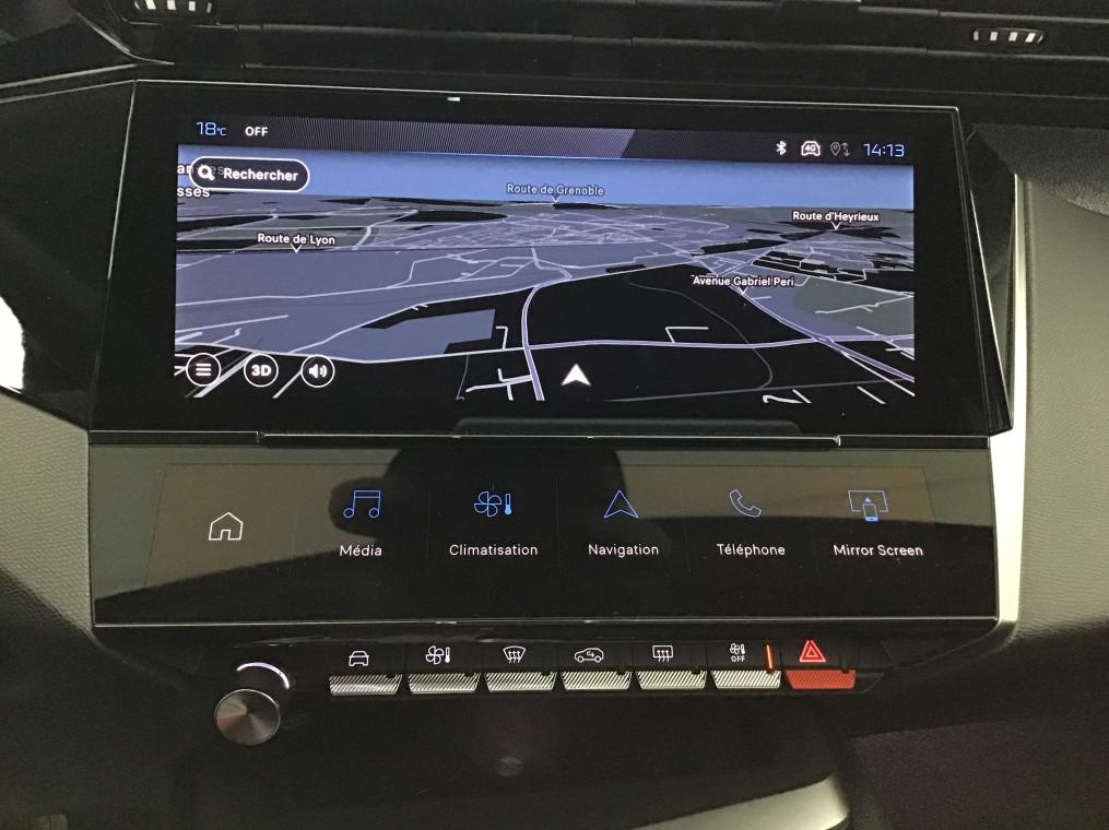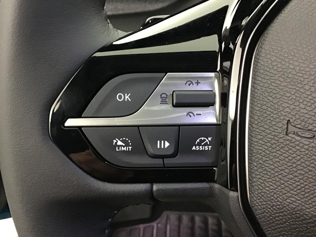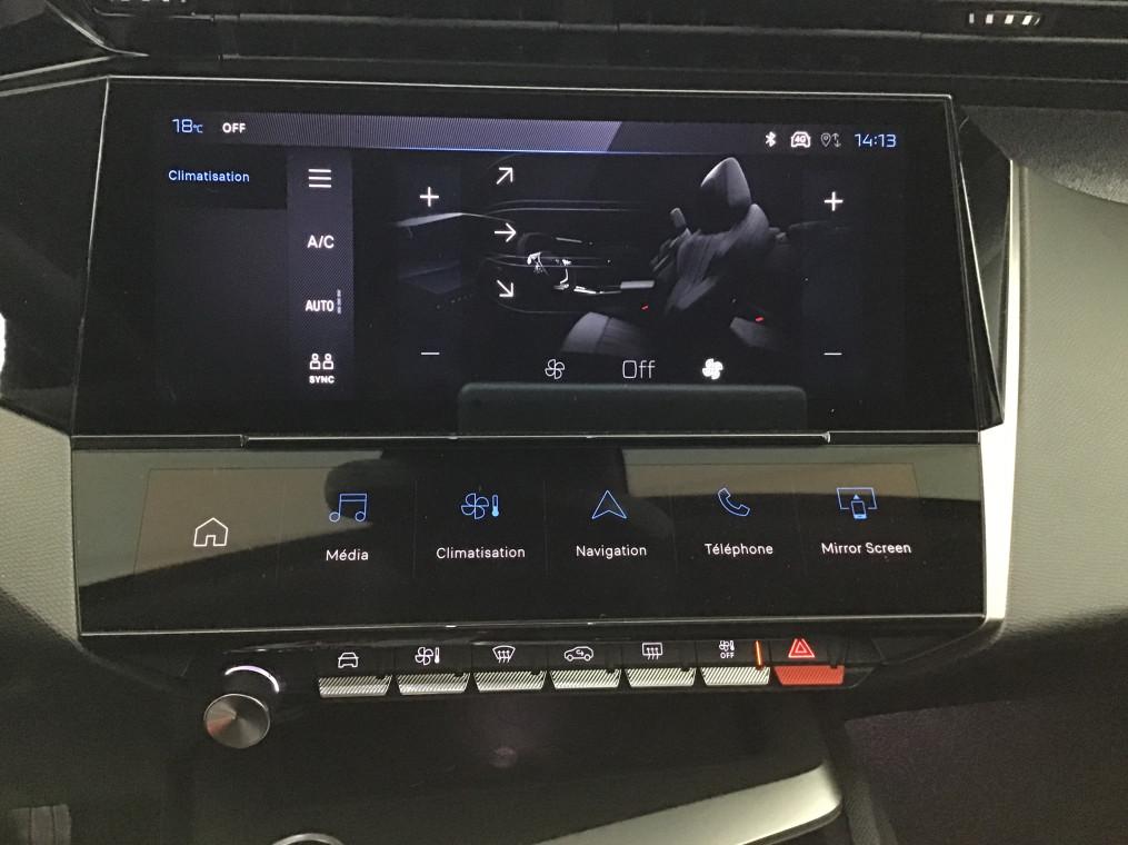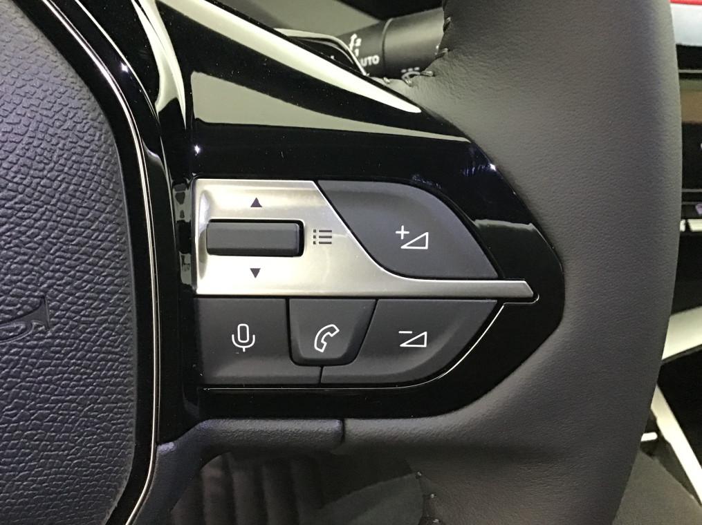 2 prises USB-C a l'AV, 2 telecommandes 3 boutons, 4 poignees de maintien, ABS, Accoudoir central AV avec compartiment de rangement, Active Safety Brake (freinage automatique d'urgence), Aide au stationnement AR, Aide au stationnement AV, Air conditionne automatique bi-zone, Air Quality System, Airbags frontaux conducteur et passager adaptatifs (passager neutralisable par cle), airbags, Alerte active de franchissement involontaire de ligne et bas cote, Alerte attention conducteur, Allumage automatique des feux de croisement, Bandeau entre feux AR Noir brillant, Banquette AR rabattable 1/3-2/3, Calandre AV Noir avec inserts chromes et ecopes Noir, Camera de recul, Commutation automatique des feux de route, Coques de retroviseurs exterieurs Noir Brillant, Demarrage mains libres, Diffuseurs d'air aux places AR, Ecran central tactile 10", ESP avec fonction Hill Assist (Aide au demarrage en pente), Essuie-vitre AV a declenchement automatique, Feux diurnes a LED sous projecteurs nouvelle signature Peugeot, Fonction Mirror Screen (Apple CarPlay/Android Auto) sans fil, Frein de stationnement electrique, Garnissage tri-matieres TEP/Tissu Falgo, surpiqures Bleu, Jantes alliage 17'' Calgary diamantees, Jupe AR Noir Brillant avec decors chromes, Lecheurs de vitres Noir Brillant, Leve-vitres electriques AV/ AR et sequentiels avec anti-pincement, Pack Drive Assist - Regulateur de vitesse adaptatif avec fonction Stop&Go : Regulateur de vitesse adaptatif avec fonction Stop&Go, Pack Safety Plus : Active Safety Brake pilote par camera et radar, Peugeot i-Cockpit avec combine d'instrumentation numerique 10'' personnalisable, Planche de bord avec jonc transversal peint et decor textile Texa, Projecteurs Peugeot LED, Reconnaissance etendue des panneaux de signalisation, Reglage lombaire du siege conducteur, Regulateur et limiteur de vitesse, Retroviseur interieur photosensible, Retroviseurs exterieurs avec eclairage d'approche, Retroviseurs exterieurs electriques, degivrants et rabattables electriquement, avec repetiteurs de, Selecteur mode de conduite Eco et Sport, Siege conducteur reglable en hauteur, Siege passager reglable en hauteur, Systeme stop & go couple avec l'assistance au positionnement sur la voie, Vitres AV electriques, Vitres laterales AR et lunette AR surteintees, Volant avec reglage manuel en hauteur et en profondeur, Volant croute de cuir
