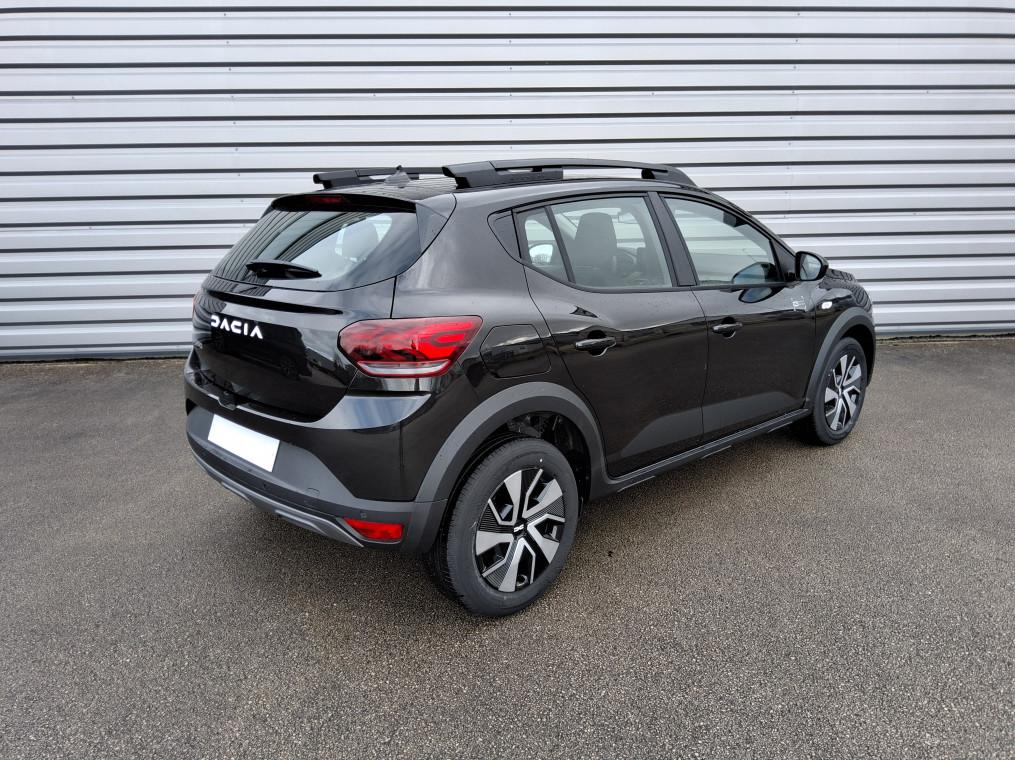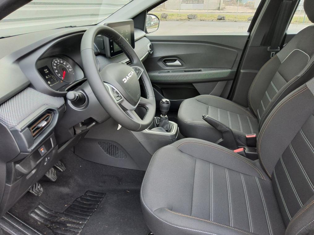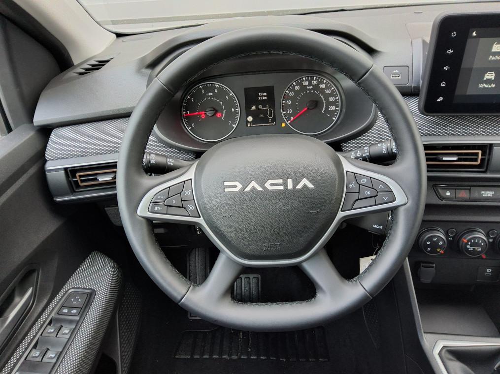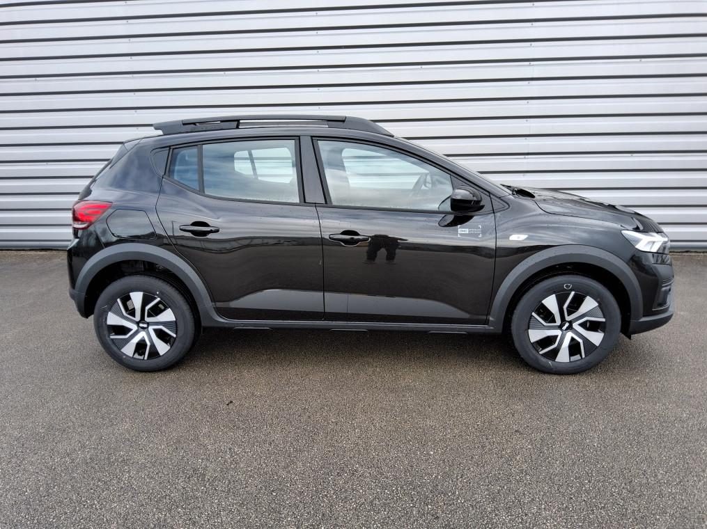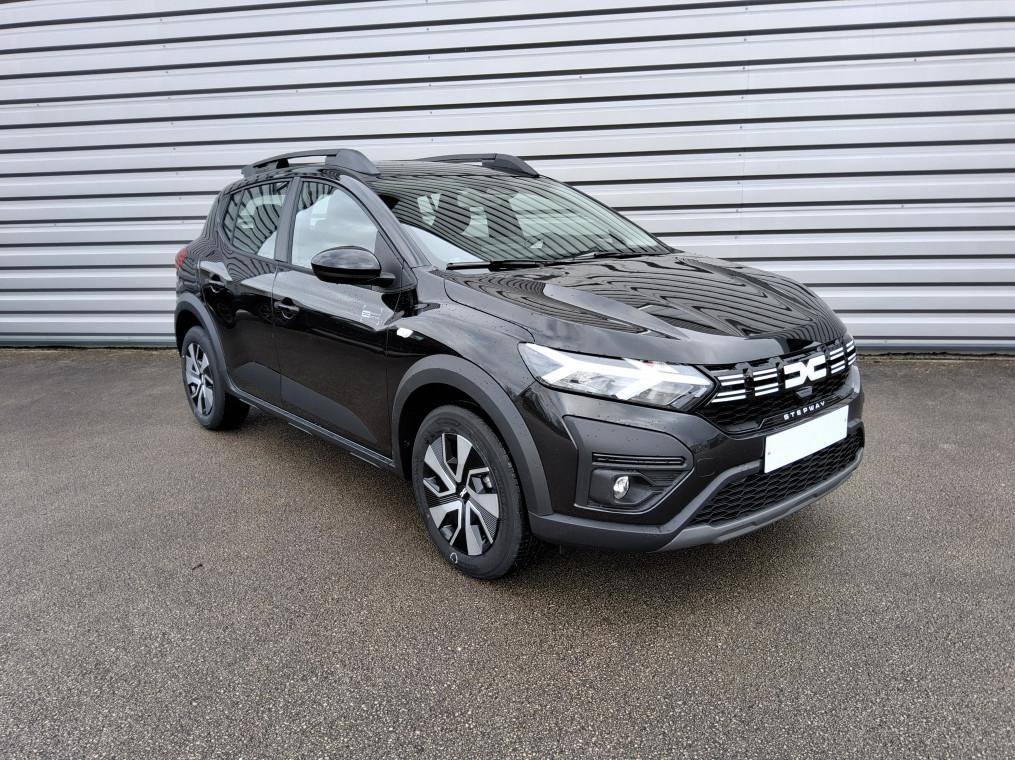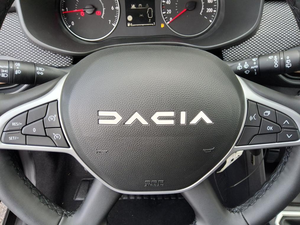 3 appuis-tetes AR, Aide au parking AR, Airbag frontal conducteur et passager, Airbag lateral AV : thorax + rideau, Alerte franchissement de ligne et assistant maintien dans la voie, Allumage des feux et essuie-glace automatiques, Assistance au freinage d'urgence + allumage des warnings, Banquette AR rabattable 1/3-2/3, Barres de toit modulables, Bouton appel d'urgence, Cle 3 boutons, Climatisation manuelle, Condamnation des ouvrants en roulant, Console basse + rangement ouvert, Detection de pression des pneus, Eclairage du coffre, Enjoliveur 16'' ATARA DARK, Feux AR avec signature lumineuse Y, Feux de jour a LED, Fonction eco-mode, Leve-vitres AR electriques, Leve-vitres AV electriques, conducteur impulsionnel, Media Display (ecran tactile 8'' sans navigation, radio, replication smartphone USB, 4 haut-parleurs, Projecteurs antibrouillard, Rappel de bouclage de ceintures, Reconnaissance des panneaux de signalisation avec alerte de survitesse, Regulateur et limiteur de vitesse, Retroviseur interieur jour/nuit, Retroviseurs exterieurs electriques et degivrants, Retroviseurs exterieurs ton carrosserie, Sellerie Stepway avec surpiqures, Siege conducteur reglable en hauteur + accoudoir AV, Signature lumineuse DACIA en Y a LED, Systeme anti-blocage des roues (ABS), Systeme de freinage d'urgence avance (pieton, deux-rorues et intersection), Systeme de surveillance de l'attention du conducteur, Tableau de bord avec ecran numerique 3,5'' et compteurs analogiques, Volant reglable en hauteur et en profondeur, Volant Soft Feel TEP