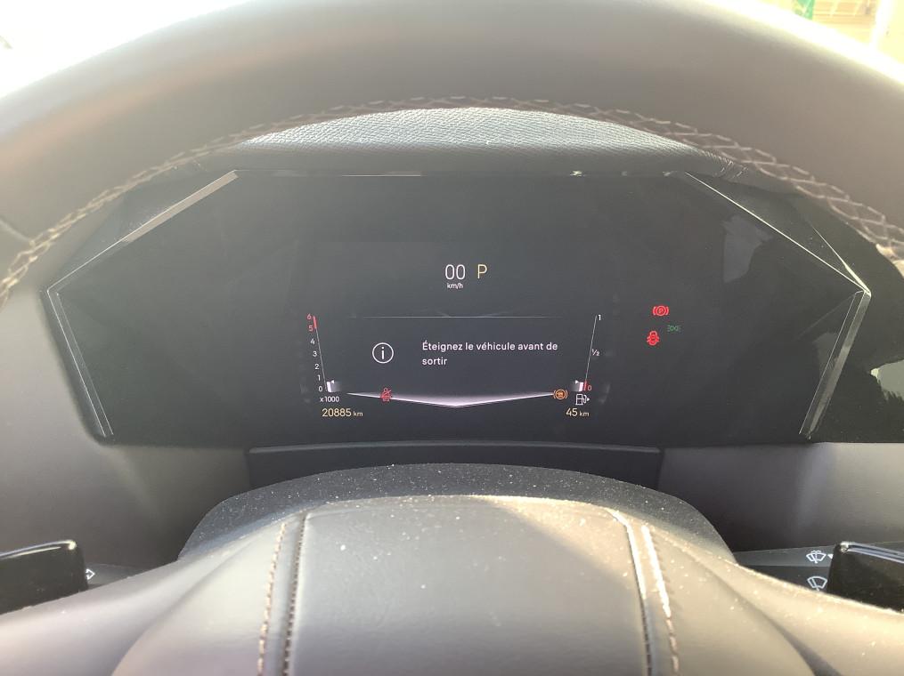 ABS avec repartiteur electronique de freinage (REF) et Aide au Freinage d'Urgence (AFU), Acces et Demarrage mains libres Proximity, Accoudoir central AR avec trappe a ski et 2 porte-gobelets, Accoudoir central AV, Aide au stationnement AV et AR et Camera de recul, Airbags frontaux (passager deconnectable), lateraux AV, rideaux aux places AV/AR et central, Alerte attention conducteur, Alerte de franchissement involontaire de ligne, Allumage automatique des feux, Anneaux d'arrimage dans le coffre (x4), Antenne "aileron de requin", Avertisseur de risque de collision, Badge de capot ETOILE, Banquette AR 2/3 - 1/3 avec 3 appuie-tete, Banquette AR avec trappe a skis, Cabochons d'ecrous de roue noir brillant, Capot actif, Centre de roues Noir, Clean Cabin avec Air Quality System, Climatisation automatique bizone, Combine numerique 7", Condamnation automatique des portes et du coffre en roulant, Console centrale avec rangement ferme, Controle dynamique de stabilite (ESP) avec antipatinage des roues (ASR), Coques de retroviseurs exterieurs noir brillant, Detection de sous-gonflage, Diffuseur AR noir brillant, DS AIR (Aerateurs centraux invisibles avec sabre chrome), DS e-toggle (Selecteur de vitesses), DS EXTENDED HEAD UP DISPLAY, DS IRIS SYSTEM, DS MATRIX LED VISION, DS SMART TOUCH, DS Wings noir brillant, Eclairage d'ambiance a LED, Eclairage de boite a gants, d'accoudoir central AV et de coffre a LED, Eclairage de cave a pieds a LED, Ecran tactile capacitif 10" HD, Enjoliveurs de bas de porte noirs avec insert chrome, Enjoliveurs superieurs des vitres laterales chromes, Essuie-vitre AR, Essuie-vitre AV a declenchement et cadencement automatiques, Feux AR Full LED effet 3D avec traitement ecailles, Fixations ISOFIX aux places laterales AR, Frein de stationnement electrique automatique, Freinage d'urgence automatique pilote par camera et radar, Freinage multi-collision, Grille de calandre noir brillant avec pampilles chromees, Interieur Cuir Nappa Brun Criollo confection Bracelet, Jantes alliage 19" SEVILLA, Jonc de volet chrome, Kit de depannage provisoire de pneumatiques, Lecheurs de vitres laterales et enjoliveur de custode noir brillant, Leve-vitres AV et AR electriques, sequentiels et antipincement, Limiteur / Regulateur de vitesse, Lunette AR chauffante, Mirror Screen sans fil via Wifi, Monogramme DS chrome sur l'enjoliveur de custode lateral, Monogramme exterieur ETOILE sur le capot, Monogrammes AV/AR chromes, Pack Connect PLUS pour 3 ans, Pack sieges electriques avec sieges AV chauffants, Palettes au volant, Pare-brise teinte acoustique, Pare-soleil avec miroirs de courtoisie occultables eclaires a LED, Pedalier en aluminium, Plafonnier I-Dome tactile, Poignees exterieures affleurantes chromees, Preconditionnement thermique de l'habitacle programmable par smartphone, Predisposition pour roue de secours galette, Prises 12 V, Prises USB, Radio numerique terrestre (DAB), Reconnaissance etendue des panneaux de circulation, Regulateur de vitesse adaptatif et Pack Detection trafic AR, Retroviseur interieur electrochrome sans cadre, Retroviseurs exterieurs electriques, degivrants, rabattables electriquement, Securite Enfants, Seuil de portes AV, Surveillance d'angles morts longue distance, Verins d'ouverture et de maintien du capot moteur, Vitres AR et lunette AR surteintees, Vitres laterales AV et AR feuilletees et acoustiques, Volant chauffant, Volant reglable en hauteur et profondeur