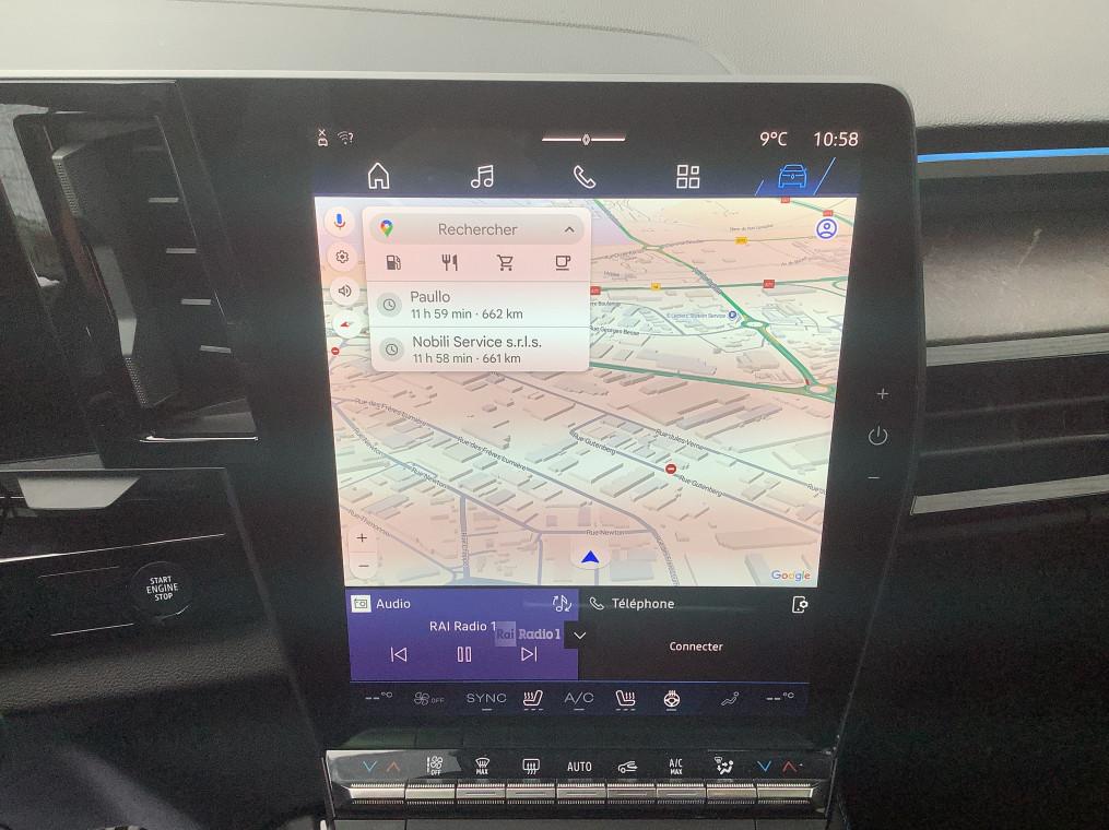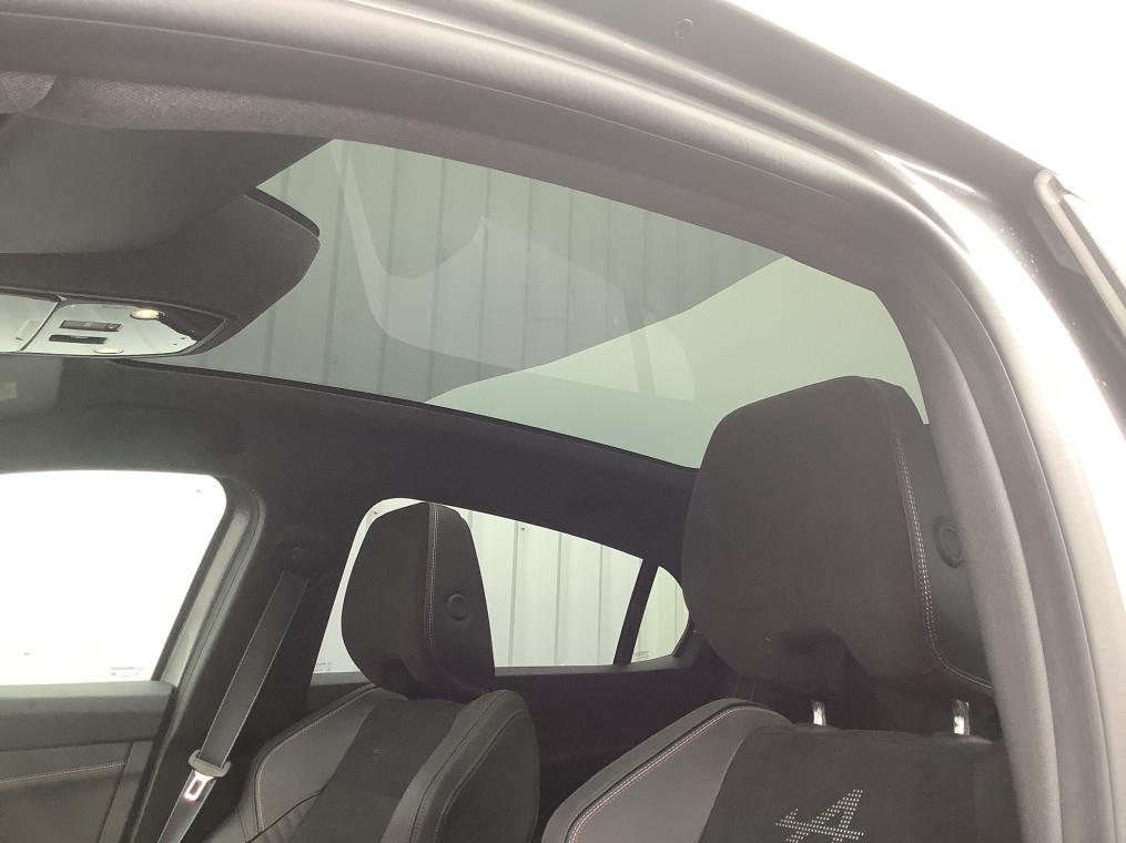 4Control advanced, ABS avec aide au freinage d'urgence, Aide au freinage d'urgence, Aide au parking AV/AR et lateral, Airbags frontaux (conducteur et passager), Airbags lateraux bassin / thorax conducteur et passager AV, Airbags lateraux, rideaux et central AV, Alerte de distance de securite, Alerte franchissement de ligne et assistant maintien dans la voie, Alerte sortie securisee des occupants, Appel d'urgence, Avertisseur d'angle mort et prevention sortie de voie en cas de depassement, Avertisseur de sortie de stationnement en marche AR avec freinage d'urgence automatique, Boite de vitesse hybride multimode 6 rapports, Carte Renault acces et demarrage mains libres, Chargeur smartphone a induction, Ciel de toit gris anthracite, Clignotants AR dynamiques, Climatisation automatique bi-zone, Commutation automatique des feux de route/croisement, Console centrale avec repose main coulissant, Console de toit avec porte-lunettes, Controle de la traction (TCS), Feux AV adaptive LED vision, Frein de parking electrique, Hayon motorise, Jantes alliage 20'' castellet noires diamantees, Kit de gonflage, Leve-vitres AR electriques a impulsion, Leve-vitres AV electriques a impulsion, Lumiere d'ambiance personnalisable, Maintenance connectee, incluse pendant 8 ans, Miroir de surveillance enfants, Mise a jour systeme (via firmware over the air FOTA), inclus pendant 5 ans, Multi-sense, Navigation Google Maps, Notice d'utilisation digitale embarque dans le systeme multimedia du vehicule, Pack connected driving, inclus pendant 5 ans, Pack controle a distance (via lapplication My Renault), inclus pendant 5 ans, Pack Design esprit Alpine exterieur, Pack Design esprit Alpine interieur, Palettes au volant, Plaque de protection de coffre en aluminium, Regulateur de vitesse adaptatif, Retroviseur interieur electrochrome sans cadre, Retroviseurs exterieurs electriques, degivrants, rabattables automatiquement, Sellerie mixte Alcantara avec surpiqures bleues et logo Alpine lumineux, Siege conducteur et passager avec reglage en hauteur, Sieges AV chauffants, Sieges avec systeme ISOFIX, Systeme de controle de trajectoire ESC, Systeme de surveillance de la pression des pneus, Systeme Multimedia openR link 12" : navigation & services Google integres, audio Arkamys Auditorium, Tableau de bord full numerique 12,3'', Verrouillage centralisee, Volant reglable en hauteur et profondeur