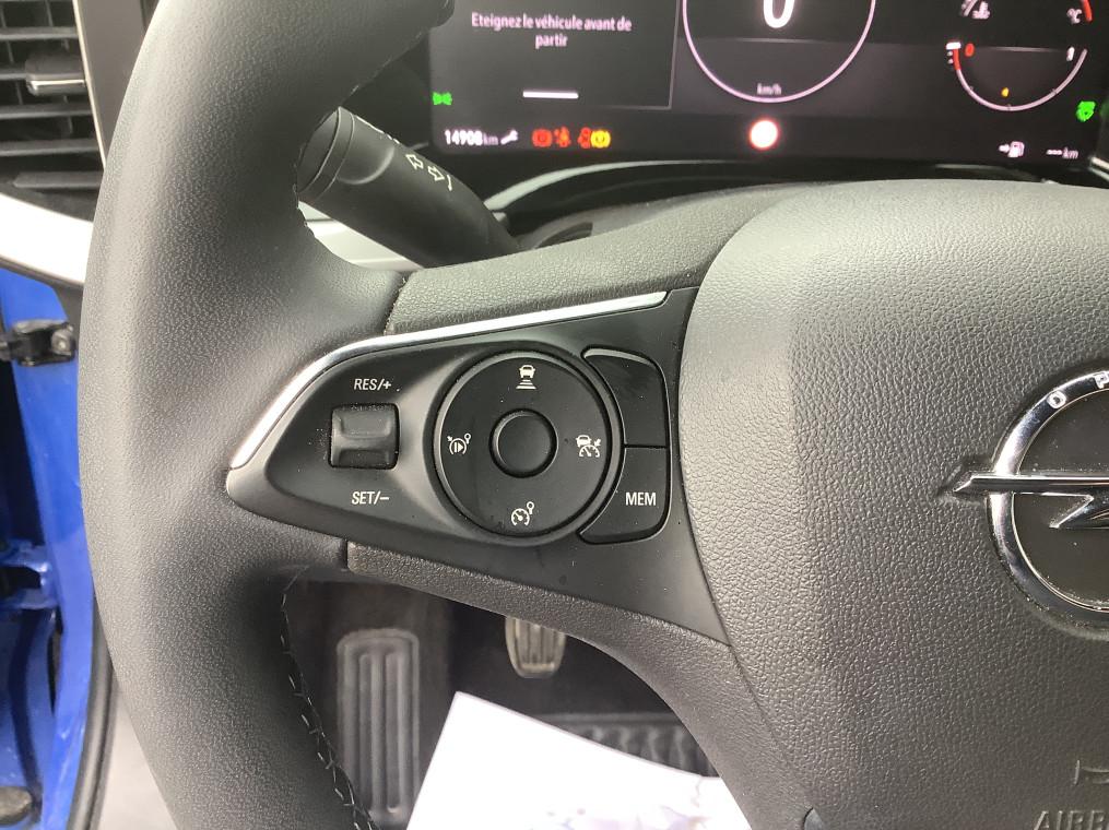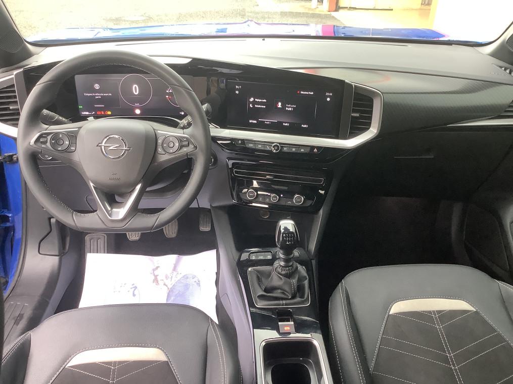 1 cle a telecommande et seconde cle rigide, 1 port USB a l'AV et 2 a l'AR, 5 appuie-tete reglables en hauteur, 6 HP, Accoudoir conducteur avec porte-gobelet, Aide active au maintien au centre de la voie, Aide active au maintien dans la voie, Aide au demarrage en cote, Aide au freinage d'urgence, Aide au stationnement AV et AR, Airbags frontaux et lateraux conducteur et passager AV, rideaux, Alerte anti-somnolence, Alerte d'angle mort, Alerte de sous-gonflage des pneumatiques, Allumage automatique des feux de croisement, Apple CarPlay/Android Auto, Banquette AR rabattable 1/3-2/3, Becquet de toit AR noir, Calandre Opel Vizor avec contour noir, Camera de recul panoramique 180°, Capteur de pluie, Ciel de pavillon noir, Climatisation automatique monozone, Combine d'instrumentation numerique 12", Commutation automatique des feux, Controle electronique de stabilite (ESP), Coquilles de retroviseurs peintes en noir, Decors interieur Erino & Liquid Palladium, Detection de non-bouclage des ceintures de securite aux places AV, Direction assistee electrique, Ecran tactile 10'' couleur HD, Entree et demarrage sans cle, Feux diurnes Eco-LED, Fixations Isofix aux places laterales AR, Fonction Bluetooth (appels et streaming audio), Frein de parking electrique, Grille inferieure - Noir graine, Jantes en alliage 18" - Diamante, Kit anti-crevaison, Lame inferieure - Noir, Lame inferieure - Peinte, Lettrage et logo - Noir, Ligne de vitrage chromee, Module Opel Connect, Pack Visibilite LED, Pare-soleils avec miroir de courtoisie cote passager, Peinture bi-ton avec Toit Noir Karbon, Phares antibrouillards AV LED, Phares AR a LED, Phares AV ECO LED, Poignees de portes interieures chromees, Radio FM/AM/DAB+, Reconnaissance avancee des panneaux de signalisation, Reglage manuel des feux, Regulateur de vitesse adaptatif avec fonction Stop & Go, Réplication Smartphone, Retroviseur interieur electrochromatique, Retroviseurs exterieurs rabattables electriquement, Seconde cle avec telecommande, Sellerie Alcantara / TEP, Siege conducteur avec soutien lombaire reglable electriquement et fonction massante, Siege passager reglables dans 6 directions, Signature lumineuse en forme d'aile a LED, Systeme anti-collision a basse vitesse et detection des pietons, Systeme de freinage avec antiblocage des roues (ABS), Verrouillage automatique de la trappe a essence lors de la fermeture du vehicule, Verrouillage centralise avec telecommande et en roulant, Vitres AR surteintees, Vitres AV et AR electriques - systeme anti-pincement, Volant en TEP Vegan, Volant reglable en hauteur et en profondeur