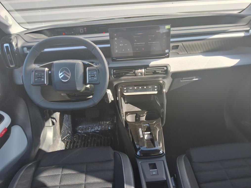 1 Prise USB type-C (charge rapide 3A) sur la console centrale, 1 Prise USB type-C (charge standard et data) sur la planche de bord, 2 Prises USB type-C (charge rapide 3A) en rang 2, 6 Airbags (frontaux, lateraux AV et rideaux), ABS, ESP, AFU, REF, Aide au demarrage en pente, Aide au stationnement AR, Aide au stationnement AV, Allumage automatique des feux de croisement, Avertisseur sonore monoton, Banquette AR avec dossier fractionnable 2/3 et 1/3, Barres de toit Noir Brillant, Boite automatique 6 rapports, Boitier telematique: Appel d'urgence et Citroen Assistance, Camera de recul, Centre de roue noir avec logo, Citroen Head up Display (affichage tete haute couleur) - TFT, Climatisation automatique, Condamnation centralisee avec PLIP, Console centrale haute avec accoudoir et rangement ferme, Coques de retroviseurs exterieurs Noir Brillant, Decors exterieurs Noir Brillant, Detection de sous-gonflage, Direction assistee, Eclairage d'accompagnement et d'accueil, Eclairage d'ambiance monochromatique, Ecran central 10,25 " tactile:, Elargisseurs d'ailes Noir Mat, Essuie-vitre AV automatique (capteur de pluie), Feux AR 3D a LED, Feux diurnes a LED, Fixations ISOFIX sur les deux places laterales, Frein de stationnement electrique, Garnissage Maille Hello Noire /Toile enduite Gris clair, Jantes alliage 17" ARAGONITE Diamantees, Kit de depannage provisoire de pneumatiques, Leve-vitres AR electriques (descente sequentielle), Leve-vitres AV electriques (descente sequentielle), Navigation 3D sur ecran central 10,25" tactile, Ordinateur de bord, Pack Safety, Plafonnier a LED, Plancher de coffre escamotable, Poignees de maintien au rang 2, Poignees de portes exterieures Noir Brillant, Prise 12 V a l'AR de console centrale, Projecteurs LED, Recharge sans fil pour smartphone (puissance 15W), Repetiteur de clignotant dans le retroviseur a LED, Retroviseur interieur electrochrome, Retroviseurs exterieurs electriques, Retroviseurs exterieurs rabattables electriquement et degivrants, Sabots AV et AR, Siege conducteur reglable en hauteur, Sieges Advanced Comfort, Station d'accueil Smartphone, Suspension Citroen Advanced Comfort, Systeme de surveillance d'angle mort, Temoin de non-bouclage des ceintures de securite conducteur et passagers, Verrouillage centralise, Vitres et lunette AR surteintees, Volant Gaine avec decor chrome, Volant reglable en hauteur et en profondeur
