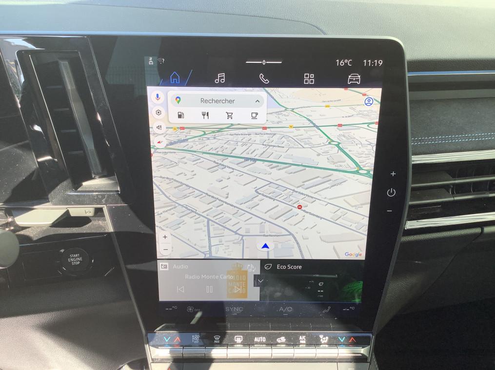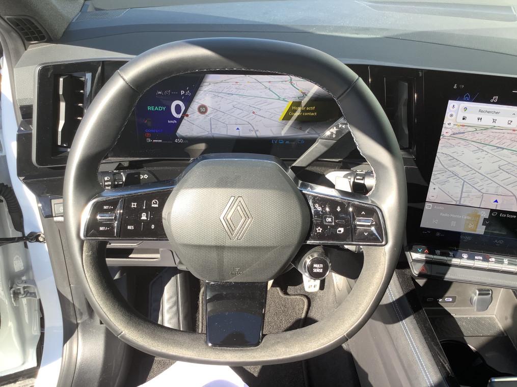 2 prises USB a l'AV et a l'AR, ABS avec aide au freinage d'urgence, Aide au freinage d'urgence, Aide au parking AV/AR et lateral, Airbags frontaux (conducteur et passager), Airbags lateraux bassin / thorax conducteur et passager AV, Airbags lateraux, milieu AV et rideaux, Alerte de distance de securite, Alerte detection de fatigue, Alerte franchissement de ligne et assistant maintien dans la voie, Appel d'urgence, Appuis-tete AV reglables, Banquette AR 1/3 2/3, Barres de toit longitudinales, Boite de vitesse automatique 4 rapports, Camera de recul, Carte Renault acces et demarrage mains libres, Chargeur smartphone a induction, Ciel de toit gris anthracite, Clignotants AR dynamiques, Climatisation automatique bi-zone, Commutation automatique des feux de route/croisement, Console centrale avec repose main coulissant, Controle dynamique de trajectoire ESC avec ASR, Detection intelligente des limitations de vitesse et prevention survitesse, Faux plancher de coffre, Feux AR a LED avec effet 3D, Feux AV full LED Adaptative Vision, Feux de jour a LED, Frein de parking electrique avec fonction Auto-Hold, Jantes alliage 20" Daytona diamantees noir, Kit de gonflage, Leve-vitres AR electriques a impulsion, Leve-vitres AV electriques a impulsion, Lumiere d'ambiance personnalisable, Miroir de surveillance enfants, Multi-sense, My Safety switch, Navigation Google Maps, Pack Design esprit Alpine exterieur, Pack Design esprit Alpine interieur, Palettes au volant, Pre-equipement alarme, Predisposition ethylotest, Regulateur de vitesse adaptatif, Retroviseur interieur electrochrome sans cadre, Retroviseurs exterieurs electriques, degivrants, rabattables automatiquement, Sellerie mixte tissu carbone / alcantara avec surpiqures bleues, Seuil de portes, Siege conducteur et passager avec reglage en hauteur, Sieges avec systeme ISOFIX, Systeme de surveillance de la pression des pneus, Systeme Multimedia openR link 12" : navigation, services Google, audio Arkamys Auditorium, Tableau de bord full numerique 12,3'', Verrouillage centralisee, Vitres AR surteintees, Volant reglable en hauteur et profondeur