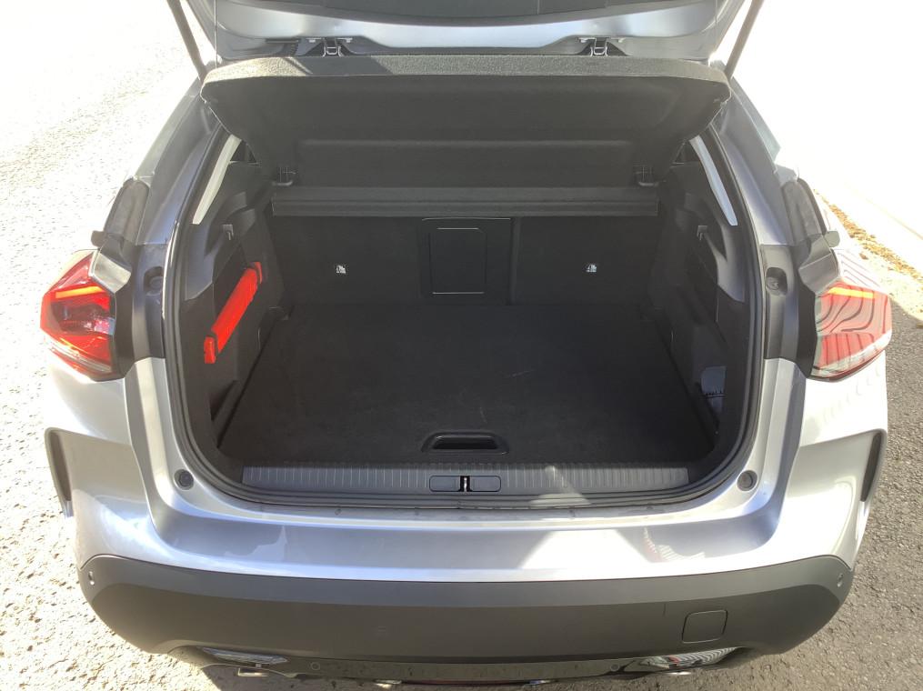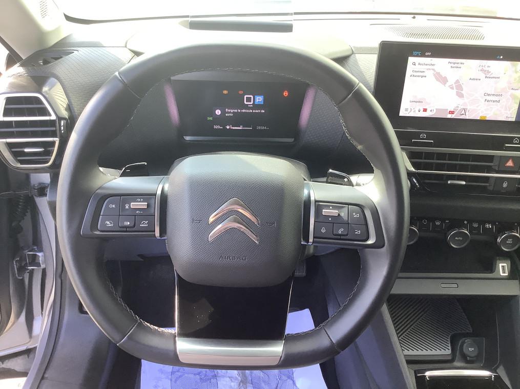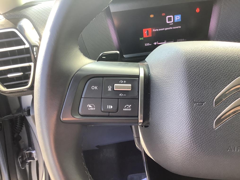 1 prise USB en rang 2 (type A), 2 prises USB au rang 1 (1 type C + 1 type A), 2 prises USB au rang 2 (1 type C + 1 type A), ABS avec REF, AFU et ESP, Acces et demarrage mains libres Proximity, Accoudoir central AR avec trappe a skis, Aerateurs centraux en rang 2, Affichage tete haute couleur, Aide au demarrage en pente, Aide au stationnement AR, Airbags frontaux AV, lateraux AV et rideaux, Allumage automatique des feux de croisement, Apple CarPlay et Android Auto sans fil, Banquette AR fractionnable 2/3 - 1/3, Boitier telematique: Appel d'urgence et Citroen Assistance, Camera de recul, Climatisation automatique bi-zone, Combine numerique couleur avec retro-eclairage, Commutation automatique des feux de route, Console centrale haute avec rangements et accoudoir, Coques de retroviseurs exterieurs Noir Brillant, Detection de sous-gonflage, Eclairage d'accompagnement sous les retroviseurs exterieurs, Ecran central 10" tactile, Elargisseurs d'aile et bas de caisse Noir Mat, Essuie-vitre AV automatique (capteur de pluie), Feux diurnes a LED, Frein de stationnement electrique automatique, Garnissage textile effet cuir Noir/Tissu Gris, Garnissage Toile enduite Noir/Tissu Gris, Jantes alliage 18" AEROBLADE Diamantees, Jupe AR Noir Brilliant, Kit de depannage provisoire de pneumatiques, Kit Mains Libres Bluetooth, Leve-vitres AV et AR electriques et sequentiels, Mirror Screen sans fil, My Citroen Assist : Citroen Connect Box, My Citroen Assist : Citroen Connect Box avec Pack SOS et assistance inclus, My Citroen Drive Plus: navigation sur tablette tactile 10'', My Citroen Play : Kit mains libres Bluetooth, Mirror Screen sans fil, compatible Android Auto et, Pack Access & Nav : Tiroir de planche de bord, Acces et demarrage mains libres Proximity, My Citroen Drive Plus: navigation sur tablette tactile 10'', Combine numerique couleur avec retro-eclairage, Top Rear Vision (camera de recul avec visualisation 180° sur tablette), Pack Color Silver : Inserts autour des projecteurs antibrouillard et sur les protections de bas de caisse, Pack Drive Assist : Aide au stationnement lateral, Aide au stationnement AV, Regulateur de vitesse adaptatif avec fonction Stop&Go, Systeme de surveillance d'angle mort, Pack Safety : Alerte attention conducteur, Reconnaissance des panneaux de vitesse et recommandation, Temoin de non-bouclage des ceintures de securite conducteur et passagers, Coffee break alert, Active Safety Brake, Alerte risque collision, Regulateur-limiteur de vitesse, Alerte active de franchissement involontaire de ligne, Pack Safety 2 : Active safety brake 2.0, Reconnaissance des panneaux de vitesse et recommandation, Pack Style : Vitres et lunette AR surteintees, Jonc chrome sur les lecheurs de vitres laterales, Plancher de coffre a 2 positions, Poche aumoniere au dos des sieges AV, Poignees de portes exterieures couleur caisse, Prise 12 V en rang 1, Projecteurs antibrouillard LED avec eclairage statique d'intersection, Projecteurs LED avec signature lumineuse en V, Retroviseur interieur electrochrome, Retroviseurs exterieurs electriques et degivrants, Retroviseurs exterieurs rabattables electriquement, Retroviseurs exterieurs rabattables electriquement avec eclairage accompagnement, Services Connect PLUS, Siege conducteur avec reglage lombaire, Siege conducteur reglable en hauteur, Siege passager reglable en hauteur, Sieges Advanced Comfort, Smart Pad Support Citroen, Suspension Citroen Advanced Comfort, Systeme audio numerique 6 HP (DAB), Tablette tactile 10", Tiroir de planche de bord, Top Rear Vision (camera de recul avec visualisation 180° sur tablette), Volant cuir pleine fleur, Volant reglable en hauteur et en profondeur