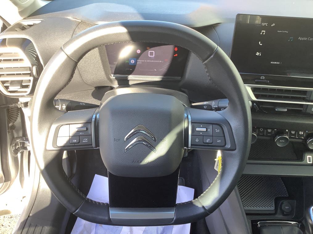 1 prise USB en rang 2 (type A), 2 prises USB au rang 1 (1 type C + 1 type A), ABS avec REF, AFU et ESP, Aerateurs centraux en rang 2, Aide au demarrage en pente, Aide au stationnement AR, Airbags frontaux AV, lateraux AV et rideaux, Allumage automatique des feux de croisement, Apple CarPlay et Android Auto sans fil, Banquette AR fractionnable 2/3 - 1/3, Boitier telematique: Appel d'urgence et Citroen Assistance, Climatisation automatique bizone, Combine numerique couleur, Console centrale haute avec rangements et accoudoir, Coques de retroviseurs exterieurs Noir Brillant, Detection de sous-gonflage, Ecran central 10" tactile, Elargisseurs d'aile et bas de caisse Noir Mat, Enjoliveurs 18" AEROTECH, Essuie-vitre AV automatique (capteur de pluie), Feux diurnes a LED, Frein de stationnement electrique automatique, Garnissage Tissu Meanwhile/Tissu Noir, Jupe AR Noir Brilliant, Kit de depannage provisoire de pneumatiques, Kit mains libres Bluetooth, Leve-vitres AV et AR electriques et sequentiels, My Citroen Assist : Citroen Connect Box, My Citroen Play - Mirror Screen sans fils, compatible Android Auto et Apple CarPlay, Systeme audio, Pack Safety : Regulateur-limiteur de vitesse, Alerte active de Franchissement Involontaire de ligne, Alerte attention conducteur, Reconnaissance des panneaux de vitesse et recommandation, Temoin de non-bouclage des ceintures de securite conducteur et passagers, Coffee Break Alert, Active Safety Brake 2.0, Alerte Risque Collision, Poignees de portes exterieures Noir Brillant, Prise 12 V en rang 1, Retroviseurs exterieurs electriques et degivrants, Siege conducteur avec reglage lombaire, Siege conducteur reglable en hauteur, Siege passager reglable en hauteur, Suspension Citroen Advanced Comfort, Systeme audio numerique 6 HP (DAB), Systeme Stop & Start, Volant croute de cuir, Volant reglable en hauteur et en profondeur