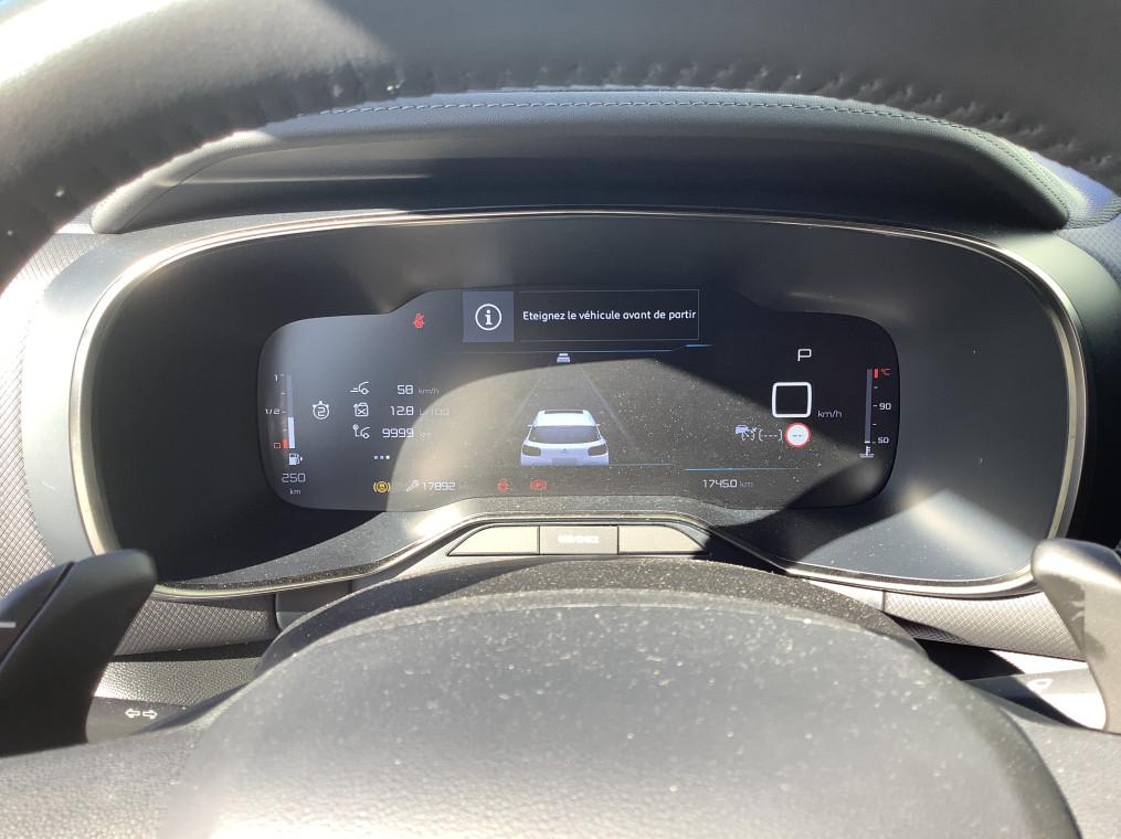 3 sieges AR independants, coulissants, inclinables et escamotables, ABS + AFU + ESP + REF, Acces mains libres, Aide au stationnement AR, Aide au stationnement AV, Airbags frontaux AV, lateraux AV et rideaux, Allumage automatique des feux de croisement, Apple CarPlay et Android Auto, Boitier telematique : Appel d'urgence et Citroen Assistance, Boitier telematique : Appel d'urgence et Citroen Assistance Comprend les services Connect ONE, Calandre superieure Noir Brillant, Camera de recul avec Top Rear Vision, Climatisation automatique bi-zone, Combine numerique 12,3" personnalisable, Coques de retroviseurs exterieurs Noir Brillant, Custodes AR surteintees, Demarrage mains libres, Detection de sous-gonflage, Elargisseurs d'aile et bas de caisse Noir Mat, Enjoliveurs de contour de vitres laterales chromes, Essuie-vitres AV automatique Magic Wash, Feux AR 3D a LED, Feux diurnes a LED avec clignotants a LED, Fixations ISOFIX sur les sieges passager AV et lateraux AR, Frein de stationnement electrique automatique, Garnissage Alcantara Noir/Tissu effet cuir Noir/Ambiance Urban Black, Garnissage Tissu SAO /Tissu effet cuir Gris/Ambiance Metropolitan Grey, Garnissage Tissu SAO /Toile enduite Grise/Ambiance Metropolitan Grey, Inserts colores Dark Chrome sur Airbump et bouclier AV, Inserts colores Noir Brillant sur Airbump et bouclier AV, Jantes alliage 18" PULSAR Diamantees bi-ton, Kit de depannage provisoire des pneumatiques, Kit mains libres Bluetooth et 3 prises USB, Leve-vitres AV et AR electriques et sequentiels, My Citroen Assist : Citroen Connect Box avec les services Connect ONE pendant une periode de 10 ans, My Citroen Assist : Citroen Connect Box avec Pack SOS et assistance inclus, My Citroen Drive avec ecran tactile 10", My Citroen Play - Mirror Screen, Systeme audio numerique bi-tuner RDS MP3 (DAB), Tablette tactile 8", Navigation sur ecran central 10" tactile, Pack Access & Drive : Regulateur de vitesse adaptatif avec fonction Stop&Go, Projecteurs antibrouillard avec eclairage statique d'intersection, Pack Safety +, Commutation automatique des feux de route, Reconnaissance des panneaux de vitesse et recommandation, Alerte attention conducteur, Acces mains libres, Pack Access and Drive : Regulateur de vitesse adaptatif avec fonction Stop&Go, Projecteurs antibrouillard avec eclairage statique d'intersection, Pack Safety +, Commutation automatique des feux de route, Reconnaissance des panneaux de vitesse et recommandation, Alerte attention conducteur, Acces mains libres, Pack Color Dark Chrome : Inserts colores Dark Chrome sur Airbump et bouclier AV, Pack Drive Assist : Alerte attention conducteur, Commutation automatique des feux de route, Reconnaissance etendue des panneaux et recommandation de vitesse, Alerte Risque Collision, Regulateur de vitesse adaptatif avec fonction Stop&Go, Pack Nav : Navigation sur ecran central 10" tactile -Comprend le systeme de navigation TomTom, la : Navigation sur ecran central 10" tactile, Pack Navigation, Pack Safety : Regulateur-limiteur de vitesse, Reconnaissance des panneaux de vitesse et recommandation, Alerte Risque Collision, Alerte active de Franchissement Involontaire de ligne, Coffee Break Alert, Active Safety Brake, Pack Safety + : Active Safety Brake 2.0, Systeme de surveillance d'angle mort, Planche de coffre escamotable, Plancher de coffre escamotable, Prises 12 V sur la console centrale et dans le coffre, Projecteurs antibrouillard avec eclairage statique d'intersection, Projecteurs LED, Retroviseur interieur electrochrome, Retroviseurs exterieurs electriques degivrants, Retroviseurs exterieurs rabattables electriquement avec eclairage d'accueil, Sabots de protection Aluminium Brillant, Services Connect PLUS, Services Connect PLUS pendant 12 mois, Siege conducteur avec reglage lombaire, Sieges Advanced Comfort, Sieges conducteur et passager reglables en hauteur, Suspension Citroen Advanced Comfort, Systeme audio numerique bi-tuner RDS MP3 (DAB), Toit bi-ton Noir Perla Nera, Vitres et lunette AR surteintees, Vitres laterales AV feuilletees et acoustiques, Volant croute de cuir, Volant reglable en hauteur et en profondeur