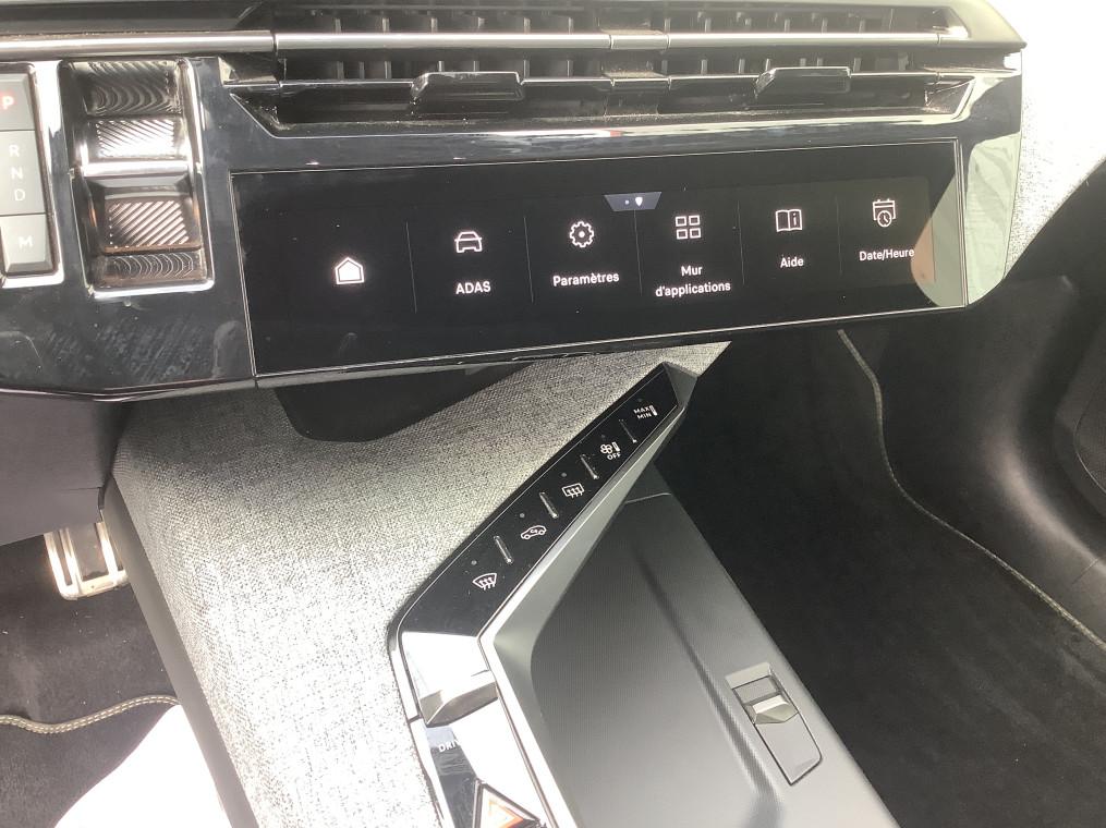 2 prises 12 V (Console centrale, coffre), 3 prises 12 V (Console centrale, AR de la console centrale, coffre), 4 poignees de maintien retractables (2 a l'AV et 2 a l'AR), 6 airbags: frontaux conducteur et passager auto-adaptatifs (passager neutralisable par cle),, 6 HP (2 tweeters et 2 woofers a l'AV et 2 larges bandes a l'AR), 6 HPs (2 tweeters et 2 woofers a l'AV et 2 HPs a l'AR), Acces et demarrage mains libres Proximity, Accoudoir central, Air conditionne automatique bi-zone, Allumage automatique des phares, Banquette AR avec dossier rabattable 40/20/40, Commutation adaptative des projecteurs, Commutation automatique des feux de route, Detection de sous-gonflage indirecte, Drive Assist - Regulateur de vitesse adaptatif avec fonction Stop & Go, Eclairage d'ambiance indirect, jour & nuit sur la planche de bord,, Eclairage interieur, Elements de style exterieur, Elements de style interieure, ESP avec aide au demarrage en pente, Essuie-vitre AV a declenchement automatique, Feux AR 3 griffes a LED 3D, Feux diurnes 3 griffes a LED, Frein de stationnement electrique, Habitacle et ciel de pavillon Noir, Hayon motorise avec acces mains libres, Jantes alliage 19" diamantees Lulea Noir Orbital, vernis brillant, Kit de depannage de pneumatique : Anneau remorquage, Cales de roue (2x), Compresseur 12 V et flacon de produit de colmatage, Leve-vitres AV/AR electriques et sequentiels avec antipincement, Monogrammes ailes AV: 'blason PEUGEOT', Monogrammes AR 3008 et Hybrid, Monogrammes AV: blason PEUGEOT et 3008, Pack Safety Plus : Alerte attention conducteur, Reconnaissance etendue des panneaux de signalisation et preconisation de vitesse, Freinage d'urgence automatique avec alerte risque de collision, Regulateur / Limiteur de vitesse, Alerte active de franchissement involontaire de ligne et bas cote, Pedalier et repose pied aluminium, PEUGEOT i-Cockpit panoramique avec ecran incurve et flottant 21 HD, PEUGEOT i-Connect Advanced, PEUGEOT i-Toggles virtuels avec 10 raccourcis personnalisables, Plancher de coffre 2 positions, Plancher de coffre modulable 2 positions, Prise 12 V (x3 : zone connectique, AR de console et coffre), Projecteurs PEUGEOT PIXEL LED, Recharge smartphone sans fil (puissance 15W), Retroviseur interieur electrochrome sans cadre, Retroviseurs exterieurs degivrants avec reglage et rabattement electriques, eclairage de seuil, Sellerie Alcantara REFLECTION embosse, accompagnement TEP Isabella,, Seuil de portes AV inox avec lettrage PEUGEOT, Siege conducteur a reglage lombaire manuel, Sieges AV a reglage en hauteur manuel, Sieges AV chauffants, Sieges AV mecaniques a reglage en hauteur, Surtapis AV et AR avec surpiqures Iced Clay et logo GT, Toit et becquet AR Black Diamond, Visiopark 1, Vitres AR, custodes et lunette AR teintees, Volant chauffant, Volant compact, cuir fleur lisse et perfore avec commandes integrees