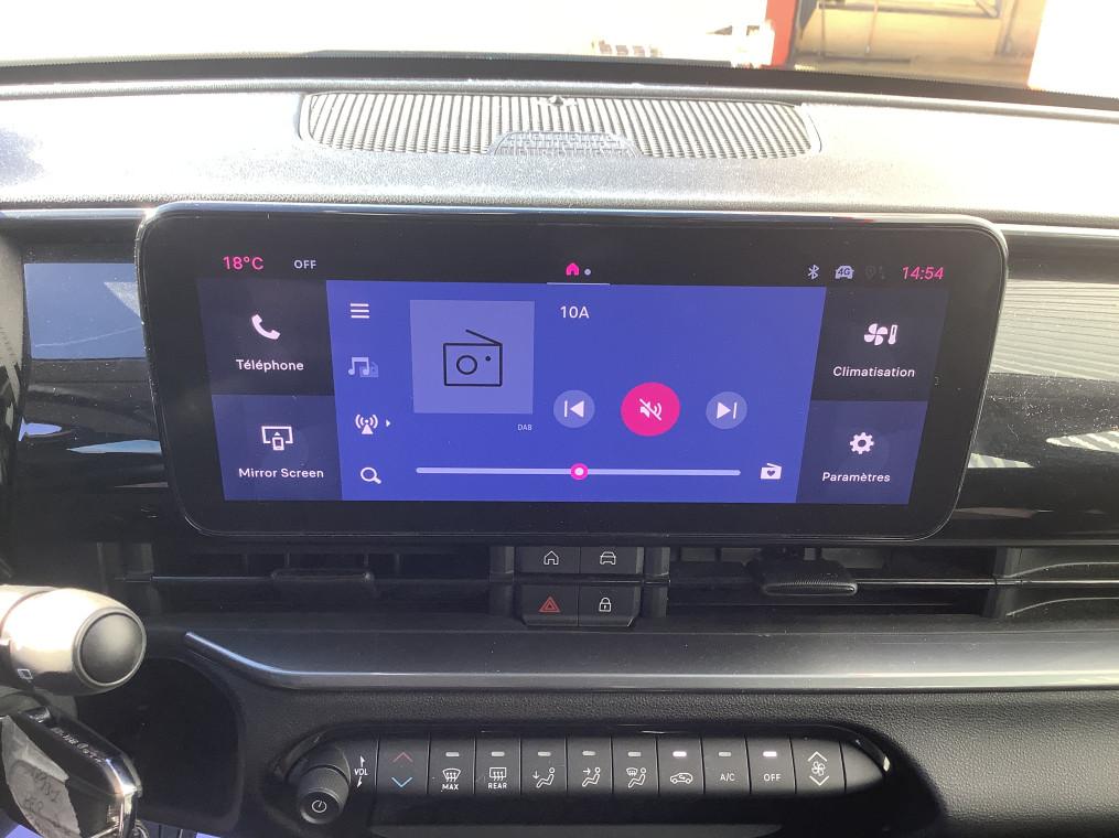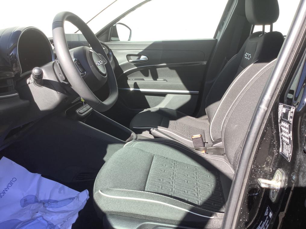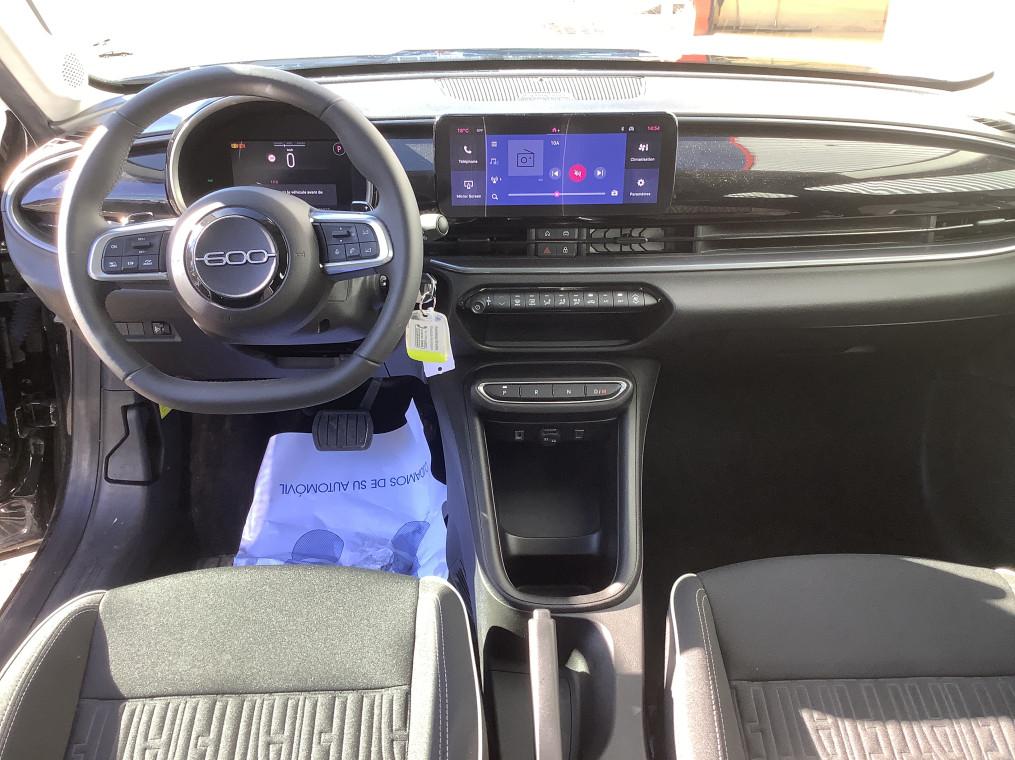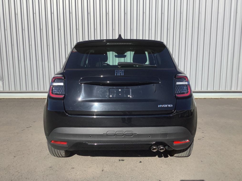 2 appuis-tete AR, 6 airbags, ABS, Alerte franchissement de ligne, Antenne de toit type aileron de requin noir brillant, Banquette AR rabattable 60/40, Boite de vitesse automatique 6 rapports, Bouton d'appel d'urgence, Canule d'echappement cote droit (double), Chargeur USB de type A et USB de type C, Climatisation manuelle, Combine d'instrumentation numerique 7'', Connectivite Smartphone Apple CarPlay et Android Auto sans fil, Controle de la pression des pneus, Controle de la traction (TCS), Coques de retroviseurs exterieurs noires, Detecteurs de pluie et luminosite, Direction assistee, ESP, Feux AR a LED, Feux de jour a LED, Frein de stationnement mecanique, Freinage autonome d'urgence avec detection de pieton et de cycliste, Kit anti-crevaison Fix&Go, Logo "HYBRID" sur le hayon de coffre, Palettes de changement de rapports au volant, Pare-soleil avec miroir de courtoisie, Planche de bord noire mat, Poignees de portes interieurs noires mat, Predisposition attelage, Prise 12V AV, Projecteurs full LED 'Infinity', Radar de stationnement AR, Rappel du port de la ceinture de securite (1ere et 2eme rangees), Reconnaissance des pannneaux, Regulateur-limiteur de vitesse, Repetiteur de clignotant halogene, Retroviseur interieur manuel jour/nuit, Retroviseurs exterieurs a reglage electrique, Sellerie en tissu seaqual avec monogramme FIAT, Services connectes UConnect Services, Siege conducteur a reglage manuel a 6 positions, Siege conducteur reglable en hauteur, Siege passager a reglage manuel a 4 positions, Spots de lecture AV et AR halogenes, Systeme audio a 4 HP, Systeme ISOFIX siege AV passager et banquette AR, Systeme Uconnect 10,25", Tunnel central en position basse, Verrouillage centralise, Vitres AR electriques, Vitres AV electriques, Volant Soft Touch