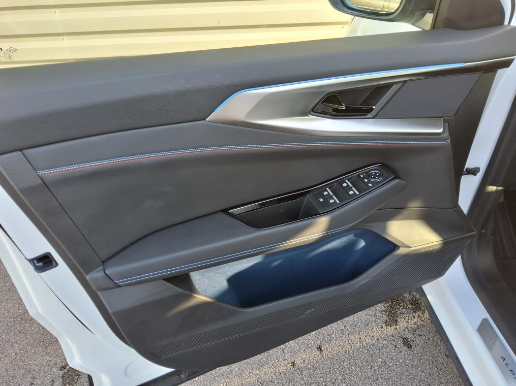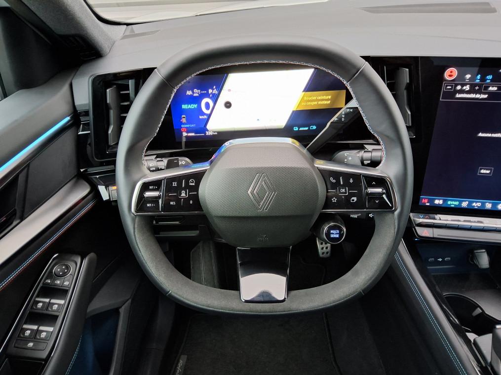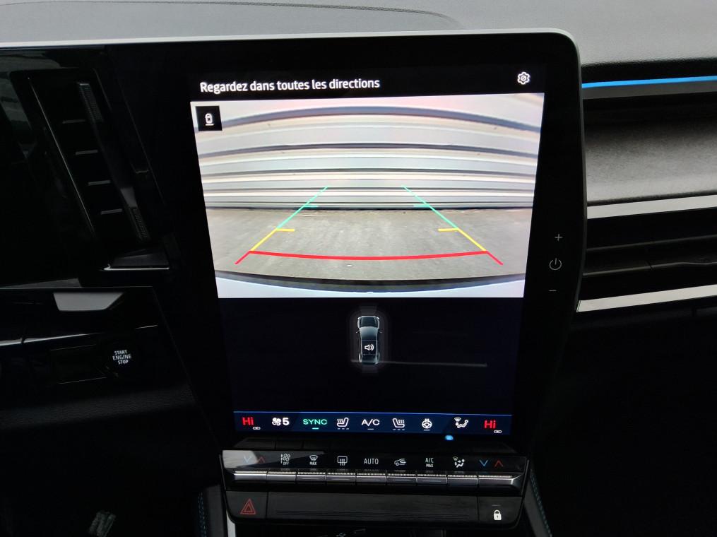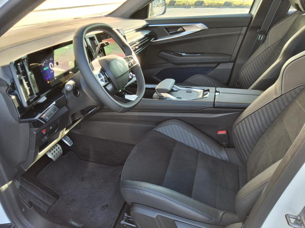 4Control advanced, ABS avec aide au freinage d'urgence, Aide au freinage d'urgence, Aide au parking AV/AR et lateral, Airbags frontaux (conducteur et passager), Airbags lateraux bassin / thorax conducteur et passager AV, Airbags lateraux, rideaux et central AV, Alerte de distance de securite, Alerte franchissement de ligne et assistant maintien dans la voie, Alerte sortie securisee des occupants, Appel d'urgence, Avertisseur d'angle mort et prevention sortie de voie en cas de depassement, Avertisseur de sortie de stationnement en marche AR avec freinage d'urgence automatique, Boite de vitesse hybride multimode 6 rapports, Carte Renault acces et demarrage mains libres, Chargeur smartphone a induction, Ciel de toit gris anthracite, Clignotants AR dynamiques, Climatisation automatique bi-zone, Commutation automatique des feux de route/croisement, Console centrale avec repose main coulissant, Console de toit avec porte-lunettes, Controle de la traction (TCS), Feux AV adaptive LED vision, Frein de parking electrique, Hayon motorise, Jantes alliage 20'' castellet noires diamantees, Kit de gonflage, Leve-vitres AR electriques a impulsion, Leve-vitres AV electriques a impulsion, Lumiere d'ambiance personnalisable, Maintenance connectee, incluse pendant 8 ans, Miroir de surveillance enfants, Mise a jour systeme (via firmware over the air FOTA), inclus pendant 5 ans, Multi-sense, Navigation Google Maps, Notice d'utilisation digitale embarque dans le systeme multimedia du vehicule, Pack connected driving, inclus pendant 5 ans, Pack controle a distance (via lapplication My Renault), inclus pendant 5 ans, Pack Design esprit Alpine exterieur, Pack Design esprit Alpine interieur, Palettes au volant, Plaque de protection de coffre en aluminium, Regulateur de vitesse adaptatif, Retroviseur interieur electrochrome sans cadre, Retroviseurs exterieurs electriques, degivrants, rabattables automatiquement, Sellerie mixte Alcantara avec surpiqures bleues et logo Alpine lumineux, Siege conducteur et passager avec reglage en hauteur, Sieges AV chauffants, Sieges avec systeme ISOFIX, Systeme de controle de trajectoire ESC, Systeme de surveillance de la pression des pneus, Systeme Multimedia openR link 12" : navigation & services Google integres, audio Arkamys Auditorium, Tableau de bord full numerique 12,3'', Verrouillage centralisee, Volant reglable en hauteur et profondeur