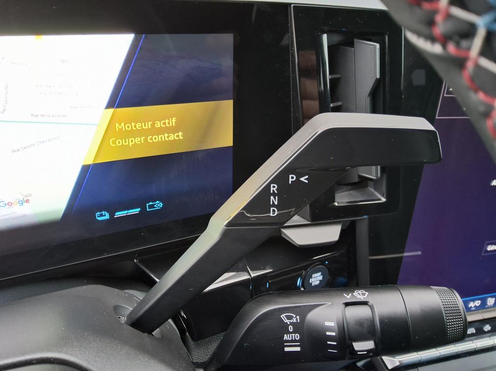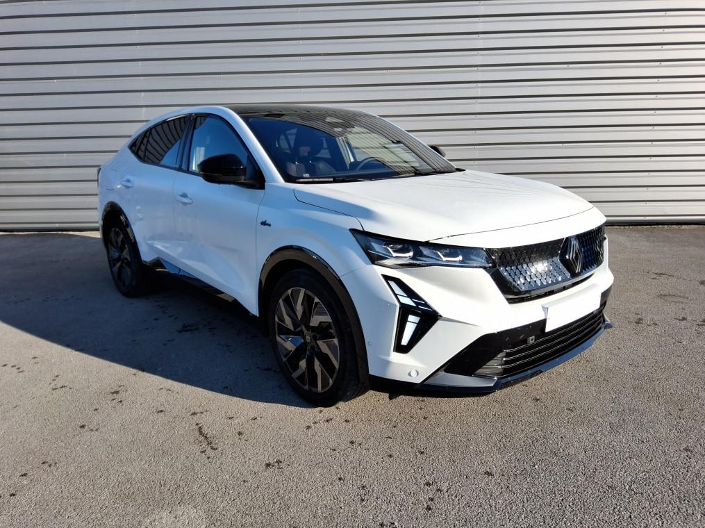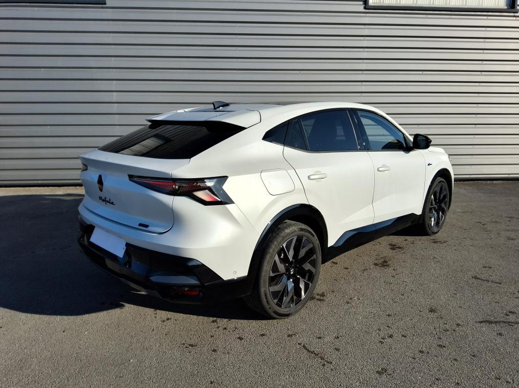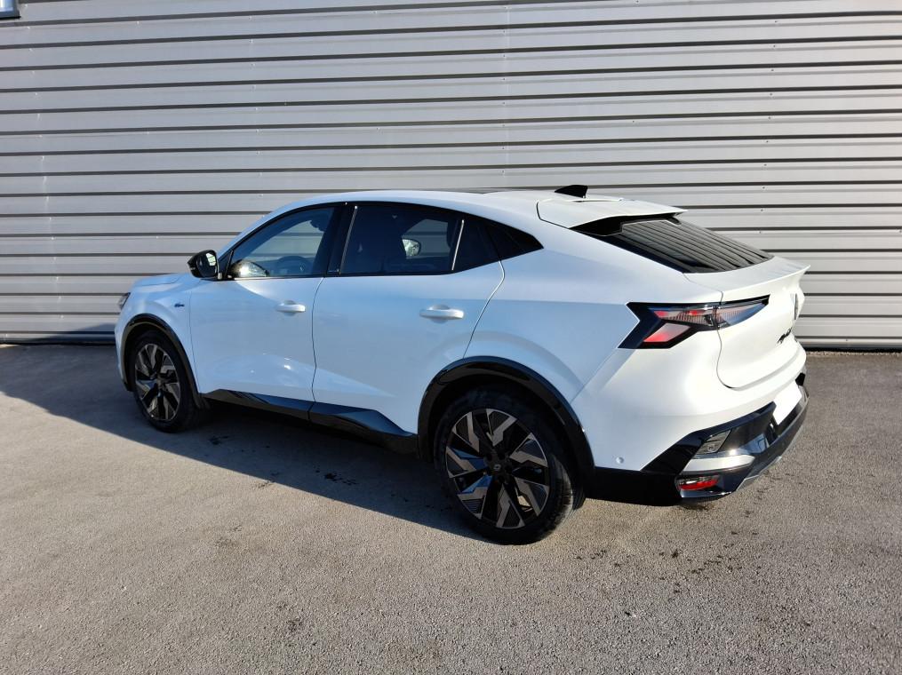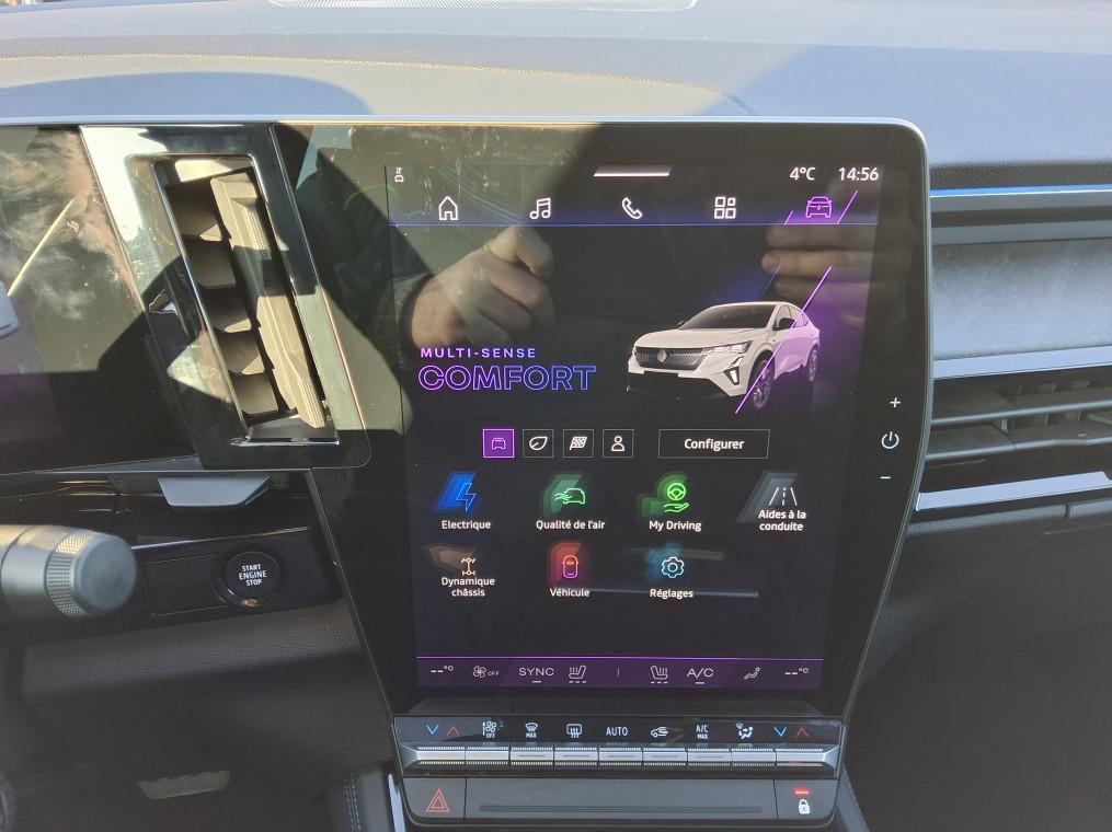 4Control advanced, ABS avec aide au freinage d'urgence, Aide au freinage d'urgence, Aide au parking AV/AR et lateral, Airbags frontaux (conducteur et passager), Airbags lateraux bassin / thorax conducteur et passager AV, Airbags lateraux, rideaux et central AV, Alerte de distance de securite, Alerte franchissement de ligne et assistant maintien dans la voie, Alerte sortie securisee des occupants, Appel d'urgence, Avertisseur d'angle mort et prevention sortie de voie en cas de depassement, Avertisseur de sortie de stationnement en marche AR avec freinage d'urgence automatique, Boite de vitesse hybride multimode 6 rapports, Carte Renault acces et demarrage mains libres, Chargeur smartphone a induction, Ciel de toit gris anthracite, Clignotants AR dynamiques, Climatisation automatique bi-zone, Commutation automatique des feux de route/croisement, Console centrale avec repose main coulissant, Console de toit avec porte-lunettes, Controle de la traction (TCS), Feux AV adaptive LED vision, Frein de parking electrique, Hayon motorise, Jantes alliage 20'' castellet noires diamantees, Kit de gonflage, Leve-vitres AR electriques a impulsion, Leve-vitres AV electriques a impulsion, Lumiere d'ambiance personnalisable, Maintenance connectee, incluse pendant 8 ans, Miroir de surveillance enfants, Mise a jour systeme (via firmware over the air FOTA), inclus pendant 5 ans, Multi-sense, Navigation Google Maps, Notice d'utilisation digitale embarque dans le systeme multimedia du vehicule, Pack connected driving, inclus pendant 5 ans, Pack controle a distance (via lapplication My Renault), inclus pendant 5 ans, Pack Design esprit Alpine exterieur, Pack Design esprit Alpine interieur, Palettes au volant, Plaque de protection de coffre en aluminium, Regulateur de vitesse adaptatif, Retroviseur interieur electrochrome sans cadre, Retroviseurs exterieurs electriques, degivrants, rabattables automatiquement, Sellerie mixte Alcantara avec surpiqures bleues et logo Alpine lumineux, Siege conducteur et passager avec reglage en hauteur, Sieges AV chauffants, Sieges avec systeme ISOFIX, Systeme de controle de trajectoire ESC, Systeme de surveillance de la pression des pneus, Systeme Multimedia openR link 12" : navigation & services Google integres, audio Arkamys Auditorium, Tableau de bord full numerique 12,3'', Verrouillage centralisee, Volant reglable en hauteur et profondeur
