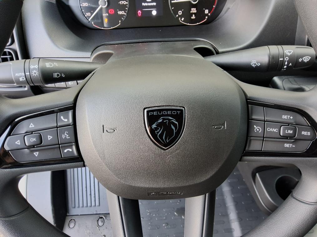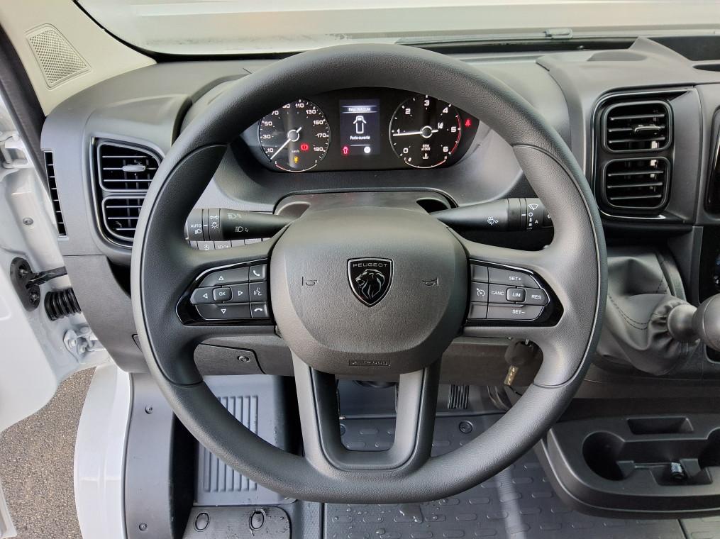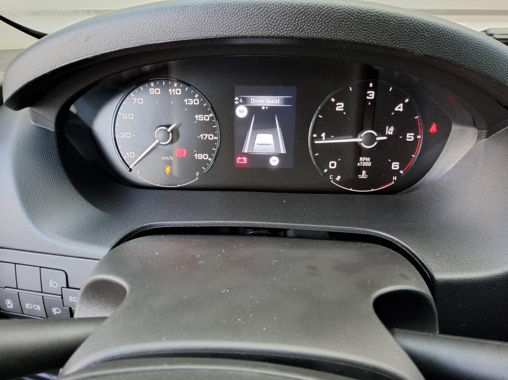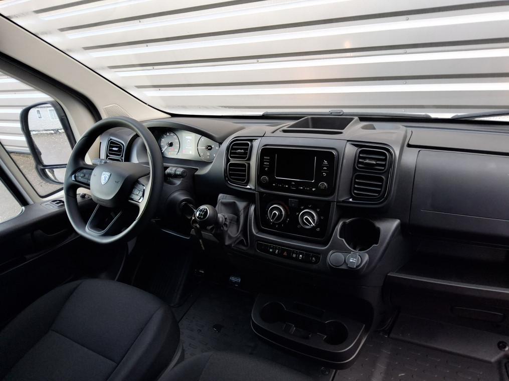 ABS, AFU, ASR et ESP (ESC ameliore avec assistance en cas de vent lateral, controle de stabilite de, Aide au démarrage en pente, Aide au stationnement AR avec avertisseur sonore pour pietons, Airbag conducteur, Airbag passager, Alternateur standard (180 A), Antenne radio numerique, Avertisseur sonore de marche AR, Banquette passagers 2 places, Batterie standard (95 Ah), Capteur de pression des pneumatiques (TPMS indirect), Climatisation manuelle, Cloison tôlée, Condamnation centralisée avec plip, Crochets d'arrimage lateraux dans l'espace de chargement, Direction assistée électrique, Double airbag passager, Identification vehicule incomplet, Leve vitres AV electriques, Pack Securité, Pack Securite ADAS, Pare-choc AV graine, Porte latérale coulissante droite tôlée, Porte-gobelets au milieu du tableau de bord, Portes AR a 2 battantes toles, Projecteurs halogene avec feux de circulation diurne, Rappel de bouclage des ceintures de securite, Régulateur limiteur de vitesse, Réservoir à carburant de 90 litres, Reservoir d'ADBlue 19 litres, Rétroviseurs extérieurs électriques dégivrants, Roues en acier 15"", Sellerie en tissu crepe noir avec appuie-tete plein, Siege conducteur avec accoudoir, Siege conducteur avec accoudoir, reglable en hauteur et reglage lombaire, Systeme audio 5'' avec radio numerique DAB + Bluetooth + 1 port USB, Volant réglable en hauteur, Volant reglable en profondeur"
