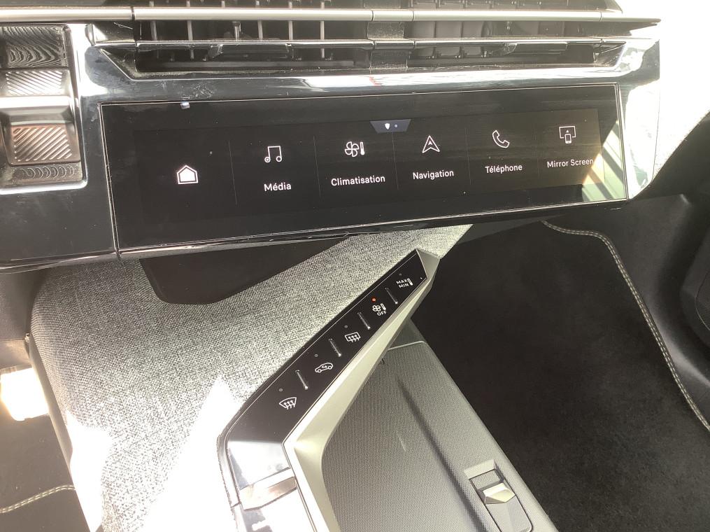 2 prises 12 V (Console centrale, coffre), 4 poignees de maintien retractables, 6 airbags: Frontaux conducteur et passager (passager neutralisable par cle),, 6 HP (2 tweeters et 2 woofers a l'AV et 2 larges bandes a l'AR), ABS, Acces et demarrage mains libres Proximity, Air conditionne automatique tri-zone, Allumage automatique des phares, Bandeau entre les feux AR Noir laque avec lettrage PEUGEOT, Bandeau entre les projecteurs Noir laque avec logo 5008, Banquette 2 places au rang 3 avec dossiers rabattables 50/50, Banquette rang 2 avec accoudoir central, Banquette rang 2 coulissante 60/40, avec dossiers inclinables, Barres de toit longitudinales Noir Brillant, Boite de vitesse automatique, sequentielle (6 rapports), Calandre couleur caisse, ecopes laterales Noir laque, decor inferieur Gris Meteor, Commutation adaptative des projecteurs, Condamnation centralisee, Controle de traction, Detection de sous-gonflage indirecte, Direction assistee, Drive Assist - Regulateur de vitesse adaptatif avec fonction Stop & Go, Eclairage d'ambiance indirect, jour & nuit sur la planche de bord,, Eclairage interieur, Elements de style interieure, Enjoliveurs de passages de roues et protections inferieures de portes Noir graine, ESP avec aide au demarrage en pente, Essuie-vitre AV a declenchement automatique, Feux AR 3 griffes a LED 3D, Feux diurnes 3 griffes a LED, Fixations ISOFIX et Top Tether aux places laterales rang 2, Frein de stationnement electrique, Habitacle et ciel de pavillon Noir, Hayon motorise avec acces mains libres, Jantes alliage 19'' diamantees BREDA Noir Orbital, vernis brillant, Jantes alliage 19" diamantees BREDA Noir Orbital, vernis brillant, Jupe inferieure Noir graine, Lecheurs de vitres masques, Leve-vitres AV/AR electriques et sequentiels avec antipincement, Monogrammes ailes AV: blason PEUGEOT, Monogrammes AR 5008 et Hybrid, Monogrammes AV : blason PEUGEOT et 5008, Pack Safety Plus, Pare chocs AR avec decor Gris Meteor, Pare-brise feuillete acoustique, Pedalier et repose pied aluminium, PEUGEOT i-Cockpit panoramique avec ecran incurve et flottant 21'' HD, PEUGEOT i-Connect Advanced, PEUGEOT i-Toggles virtuels avec 10 raccourcis personnalisables, Plancher de coffre modulable 2 positions, Projecteurs PEUGEOT PIXEL LED, Retroviseur interieur electrochrome, Retroviseurs exterieurs degivrants avec reglage et rabattement electriques, eclairage de seuil, Sellerie tissu NEW UZIRIS embosse, accompagnement TEP Isabella, echarpe tissu RIMINI chine,, Seuil de portes AV inox avec lettrage PEUGEOT, Siege conducteur a reglage lombaire manuel, Siege conducteur et passager avec reglage en hauteur manuel, Sieges AV chauffants, Stores pare soleil integres dans les portes AR, Surtapis AV et AR avec surpiqures Iced Clay, Toit et becquet AR Black Diamond, Visiopark 1: camera de recul HD & aide au stationnement AV/AR, graphique et sonore, Vitres AR, vitres de custode et lunette AR surteintees, Volant chauffant, Volant compact, cuir fleur lisse et perfore avec commandes integrees