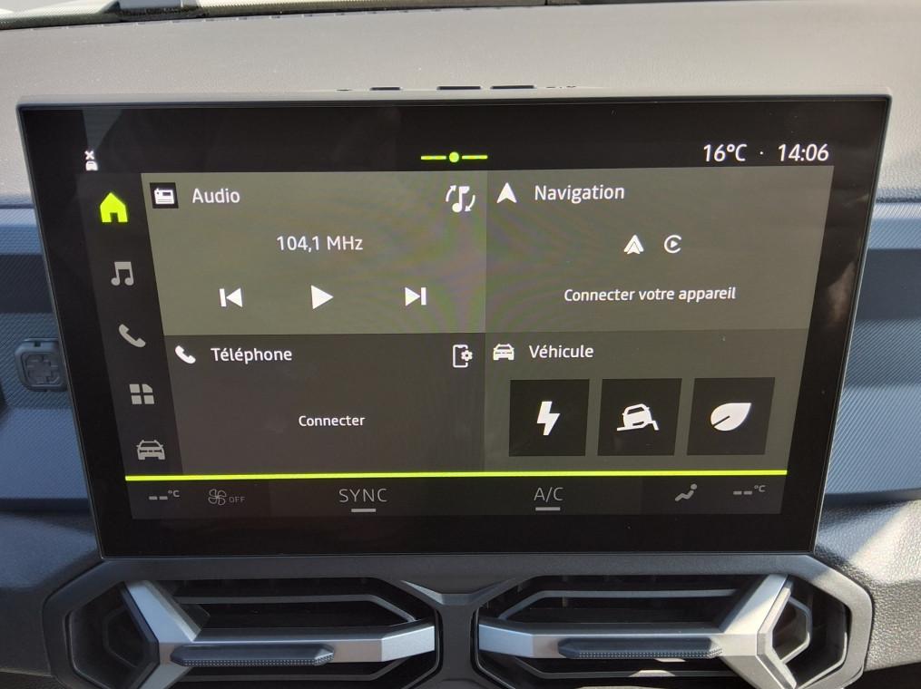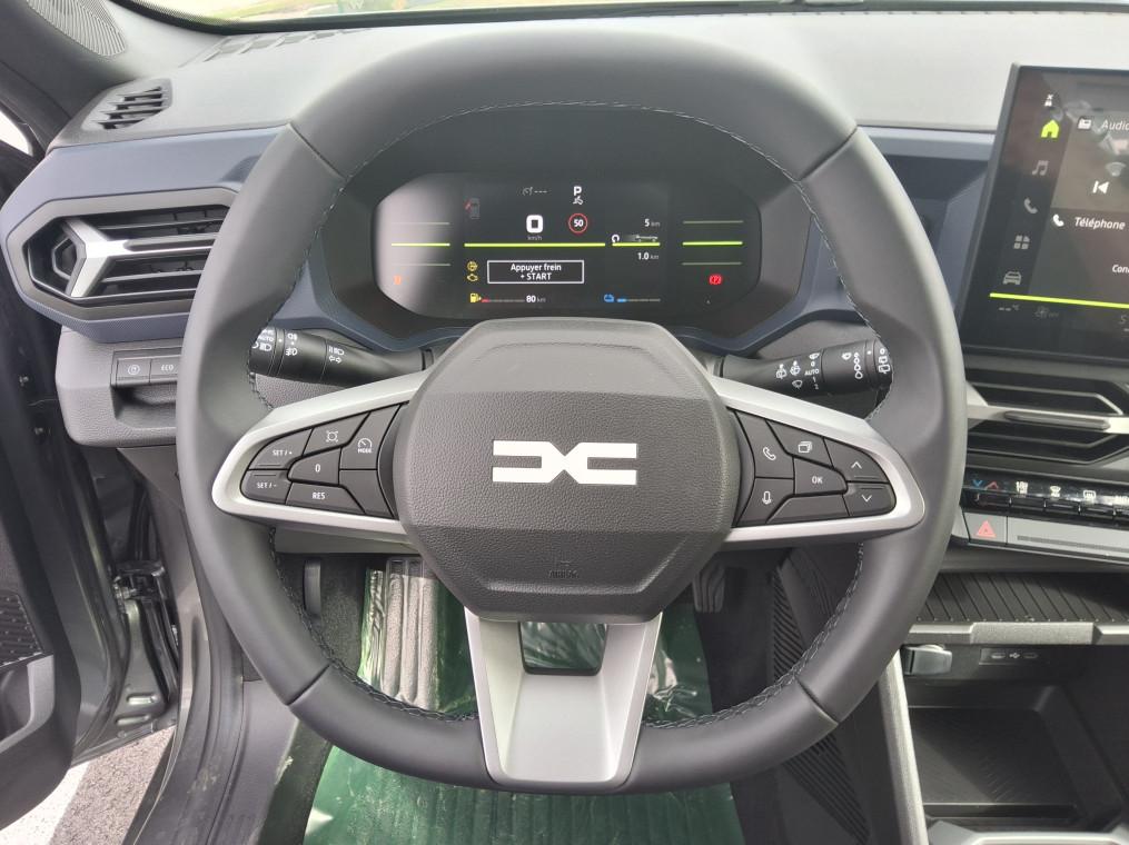 Airbag AV conducteur et passager, Airbag passager deconnectable, Airbags lateraux AV et rideaux, Alerte franchissement de ligne et assistant maintien dans la voie, Allumage des feux automatique et essuie-glace automatiques, Antenne requin, Appel SOS (E-call), Avertissement distance de securite, Banquette AR 40/20/40 et fonction Easy Fold 60/40, Barres de toit longitudinales, Boite de vitesse automatique 6, Boucliers ton carosserie, Camera de recul, Cle a radiofrequence, Climatisation automatique bi-zone, Console centrale haute avec accoudoir, Coques de retroviseurs Gris Megalithe, Detection de perte de pression des pneus, Direction assistee, Feux de croisement a LED, Frein de parking electrique, Jantes alliage 17" diamantees TERGAN, Kit de gonflage, Leve-vitres AR electriques, Leve-vitres AV electriques, Lunette AR degivrante, Media Display (ecran 10,1'',4 HP, replication smartphone sans fil), Mode eco, My Safety Switch (bouton de deconnexion des aides a la conduite), Prise 12V coffre, Radars de recul, Reconnaissance des panneaux de signalisation avec alerte de survitesse, Regulateur et limiteur de vitesse, Repetiteurs lateraux a LED, Retroviseur interieur jour/nuit, Retroviseurs exterieurs electriques, degivrants et rabattable electriquement, Sellerie specifique "Denim" avec logo Dacia reflechissant, Siege passager reglable en hauteur + lombaire conducteur, Signature lumineuse en "Y" a LED, Systeme anti-blocage des roues (ABS), Systeme de controle de traction (TCS), Systeme de controle de trajectoire (ESC) et aide au demarrage en cote, Systeme de fixation Isofix, Systeme de freinage d'urgence avance (pieton, deux-roues et intersection), Systeme de surveillance de l'attention du conducteur, Tableau de bord digital 7", Verrouillage centralisee, Volant reglable en hauteur et en profondeur, Volant Soft Feel