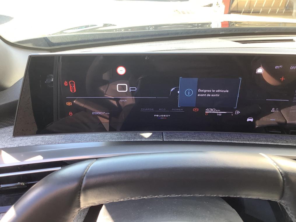 Teintes metallisees - 1 200 €, Pack Panoramic Navigation : Recharge smartphone sans fil (puissance 15 W), PEUGEOT i-Toggles virtuels avec 10 raccourcis personnalisables, PEUGEOT i-Connect Advanced - Connect Plus:, PEUGEOT i-Cockpit panoramique avec ecran incurve et flottant 21 HD, PEUGEOT i-Connect Advanced - 800 €, Pack 360 Vision & Drive Assist : Volant compact cuir fleur lisse avec commandes integrees Noir laque, decors Gris, Commutation automatique des feux de route, Detection de trafic AR, Volant chauffant, Super-condamnation des ouvrants, Drive Assist - Regulateur de vitesse adaptatif avec fonction Stop & Go, Surpiqures Quartz, Alarme (perimetrique, volumetrique et anti-soulevement), Indexation a la marche AR avec memorisation, VisioPark 360° - 1 650 €