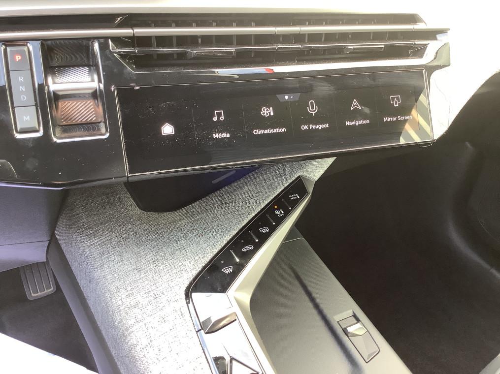 Teintes metallisees - 1 200 €, Pack Panoramic Navigation : Recharge smartphone sans fil (puissance 15 W), PEUGEOT i-Toggles virtuels avec 10 raccourcis personnalisables, PEUGEOT i-Connect Advanced - Connect Plus:, PEUGEOT i-Cockpit panoramique avec ecran incurve et flottant 21 HD, PEUGEOT i-Connect Advanced - 800 €, Pack 360 Vision & Drive Assist : Volant compact cuir fleur lisse avec commandes integrees Noir laque, decors Gris, Commutation automatique des feux de route, Detection de trafic AR, Volant chauffant, Super-condamnation des ouvrants, Drive Assist - Regulateur de vitesse adaptatif avec fonction Stop & Go, Surpiqures Quartz, Alarme (perimetrique, volumetrique et anti-soulevement), Indexation a la marche AR avec memorisation, VisioPark 360° - 1 650 €