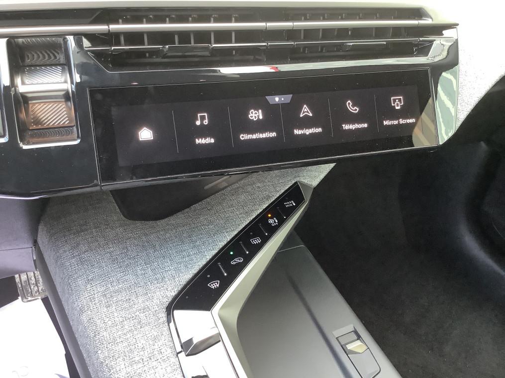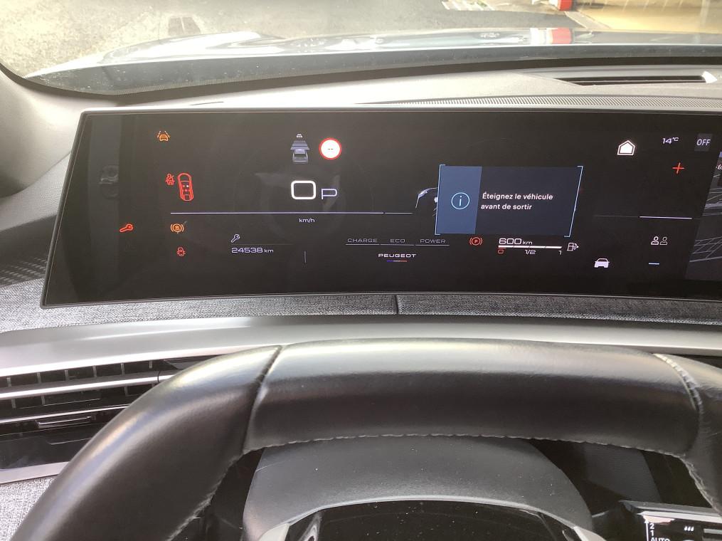 Teintes metallisees - 1 200 €, Pack Panoramic Navigation : Recharge smartphone sans fil (puissance 15 W), PEUGEOT i-Toggles virtuels avec 10 raccourcis personnalisables, PEUGEOT i-Connect Advanced - Connect Plus:, PEUGEOT i-Cockpit panoramique avec ecran incurve et flottant 21 HD, PEUGEOT i-Connect Advanced - 800 €, Pack 360 Vision & Drive Assist : Volant compact cuir fleur lisse avec commandes integrees Noir laque, decors Gris, Commutation automatique des feux de route, Detection de trafic AR, Volant chauffant, Super-condamnation des ouvrants, Drive Assist - Regulateur de vitesse adaptatif avec fonction Stop & Go, Surpiqures Quartz, Alarme (perimetrique, volumetrique et anti-soulevement), Indexation a la marche AR avec memorisation, VisioPark 360° - 1 650 €