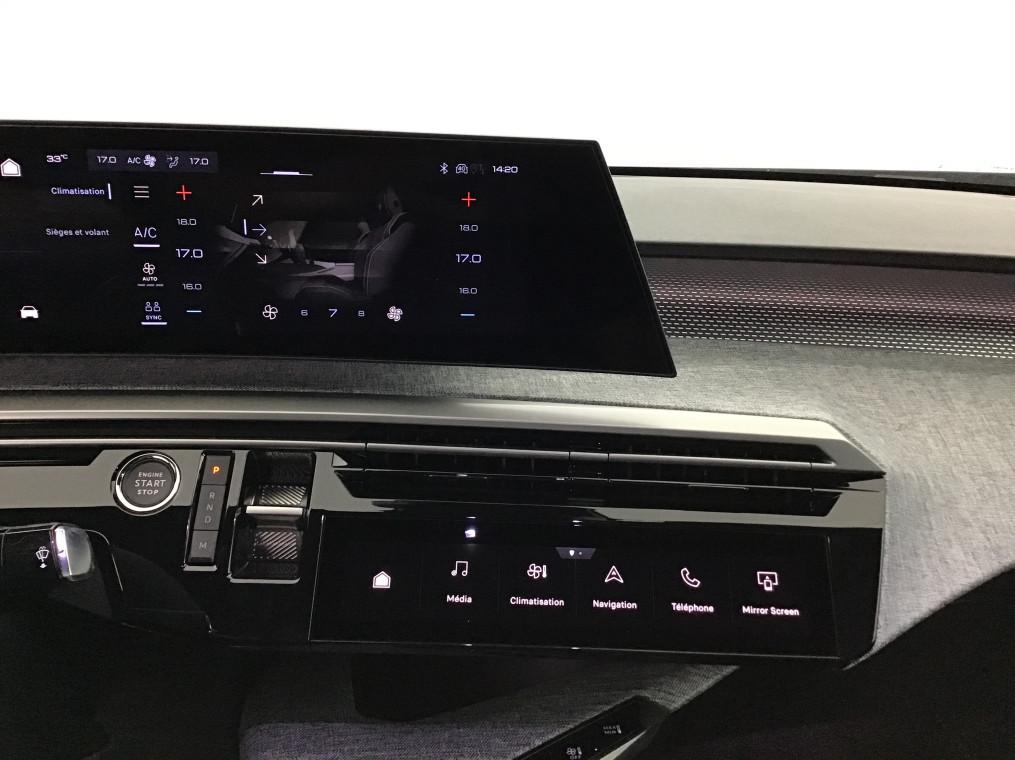 4 poignees de maintien retractables (2 a l'AV et 2 a l'AR), 6 airbags: Frontaux conducteur et passager (passager neutralisable par cle),, 6 HP (2 tweeters et 2 woofers a l'AV et 2 larges bandes a l'AR), ABS, Acces et demarrage mains libres Proximity, Air conditionne automatique bi-zone, Allumage automatique des phares, Banquette AR avec dossier rabattable 40/20/40 avec accoudoir central, Boite de vitesse automatique, sequentielle (6 rapports), Commutation adaptative des projecteurs, Commutation automatique des feux de route, Detection de sous-gonflage indirecte, Drive Assist - Regulateur de vitesse adaptatif avec fonction Stop & Go, Eclairage d'ambiance indirect, jour & nuit sur la planche de bord,, Eclairage interieur, Elements de style exterieur, Elements de style interieure, ESP avec aide au demarrage en pente, Essuie-vitre AV a declenchement automatique, Feux AR 3 griffes a LED 3D, Feux diurnes 3 griffes a LED, Frein de stationnement electrique, Habitacle et ciel de pavillon Noir, Hayon motorise avec acces mains libres, Jantes alliage 19" diamantees BREDA Noir Orbital, vernis brillant, Leve-vitres AV/AR electriques et sequentiels avec antipincement, Monogrammes ailes AV: blason PEUGEOT, Monogrammes AR 3008 et Hybrid, Pack Safety Plus, Pare-brise feuillete acoustique, Pedalier et repose pied aluminium, PEUGEOT i-Cockpit panoramique avec ecran incurve et flottant 21'' HD, PEUGEOT i-Connect Advanced, PEUGEOT i-Toggles virtuels avec 10 raccourcis personnalisables, Plancher de coffre modulable 2 positions, Projecteurs PEUGEOT PIXEL LED, Retroviseur interieur electrochrome, Retroviseurs exterieurs degivrants avec reglage et rabattement electriques, eclairage de seuil, Sellerie tissu NEW UZIRIS embosse, accompagnement TEP Isabella, echarpe tissu RIMINI chine,, Seuil de portes AV inox avec lettrage PEUGEOT, Siege conducteur a reglage lombaire manuel, Sieges AV a reglage en hauteur manuel, Sieges AV chauffants, Toit et becquet AR Black Diamond, Verrouillage centralise, Visiopark 1, Volant chauffant, Volant compact, cuir fleur lisse et perfore avec commandes integrees