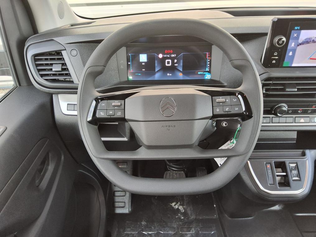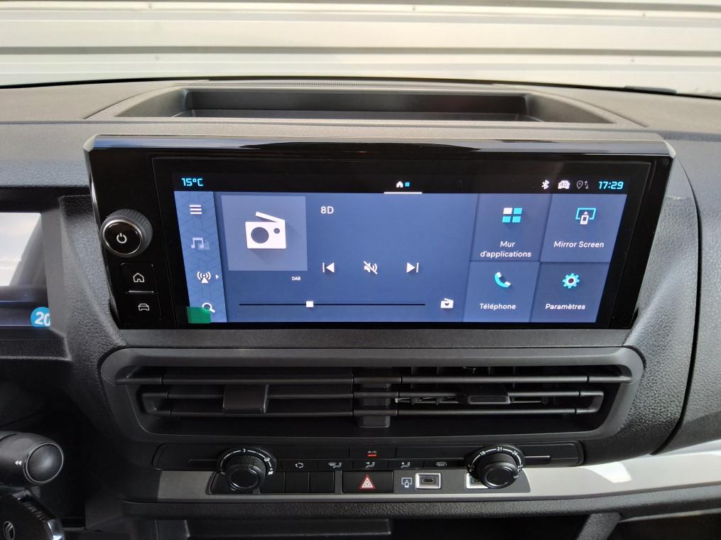 ABS, AFU, ASR et ESP avec aide au demarrage en pente, Aide au stationnement AR, Airbags frontaux conducteur et passager, Airbags lateraux AV tete-thorax en rang 1, Allumage automatique des feux de croisement et des essuie-vitres AV, Anneaux d'arrimage 4 repartis uniformement sur la zone de chargement, Banquette fixe 3 places en rang 2 avec appui-tete reglables et 2 accoudoirs, position unique, Boite automatique 8 vitesses, Boitier telematique, Boucliers, Poignees de portes exterieures, Enjoliveur(s) de rail de porte laterale coulissante, Climatisation manuelle regulee en temperature, Cloison pleine PVC avec vitre plexiglass, Combine numerique LCD noir et blanc, Commandes au volant du systeme audio et du regulateur-limiteur de vitesse, Detection de sous-gonflage indirecte, Frein de stationnement electrique, Garnitures pavillon habitacle en rang 2, Jantes tole 16" grises avec cabochon noir, Jeu de clefs: 2 plips HF 3 boutons avec fonction selectivite, Kit de regonflage pneumatiques (Compresseur 12V + Cartouche de produit de colmatage), Leve-vitres AV electriques impulsionnels, Pack Securite, Panneaux de garniture de type Isorel en rang 2 et 3, Poignee(s) interieure(s) de porte(s) laterale(s) coulissante(s), Porte laterale coulissante droite, Portes AR battantes 50/50 tolees a ouverture a 180°, Predisposition "temoin de non-bouclage R2" (faisceau + afficheur), sans ceintures, Radio DAB Bluetooth avec ecran tactile 5'' monochrome + 4 HP (2 tweeters + 2 woofers), Regulateur - limiteur de vitesse, Retroviseur interieur prismatique, Retroviseurs exterieurs electriques et degivrants, Revetement de sol TPO en rangs 1 et 2, Securite enfants mecanique, Sellerie Tissu bi-ton noir-gris, Siege conducteur individuel avec appui-tete reglable en hauteur et avec accoudoir, Surveillance inattention conducteur par camera, Verrouillage centralise, Vitres laterales fixes teintees en rang 2, Volant reglable en hauteur et en profondeur