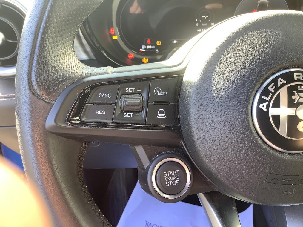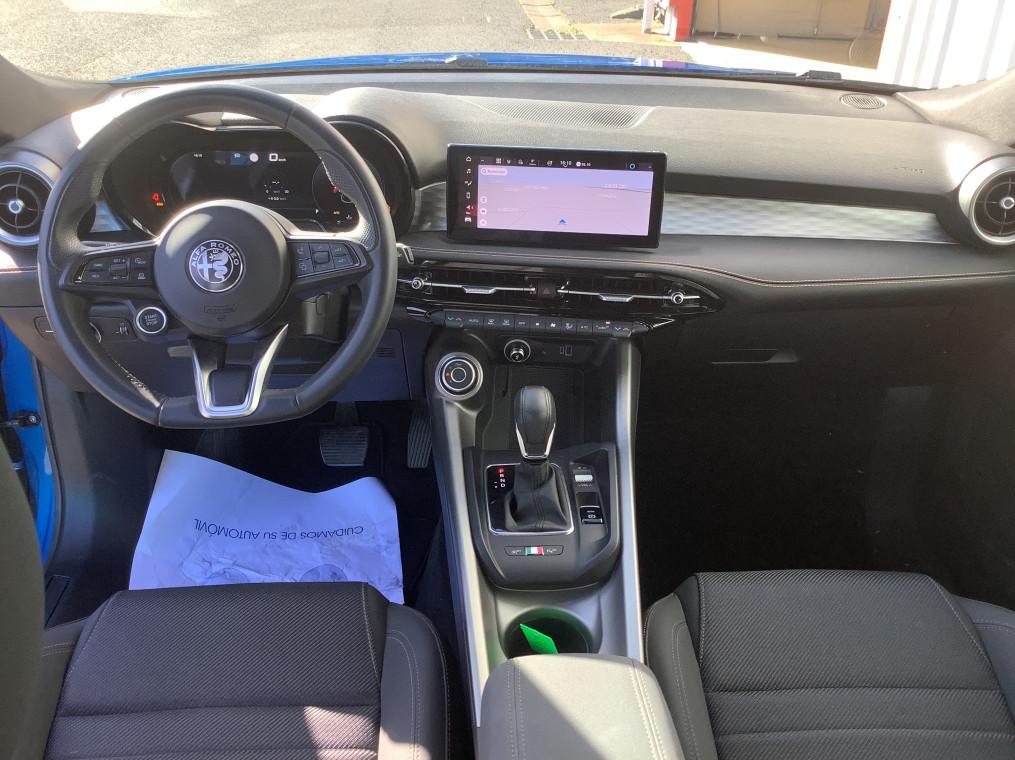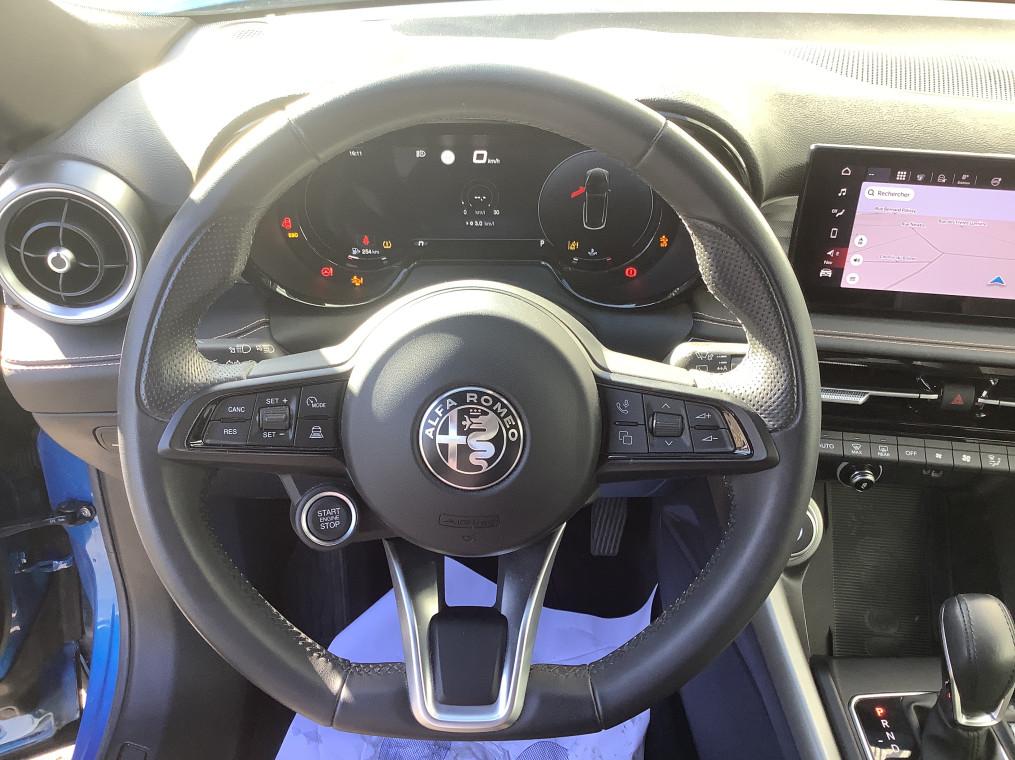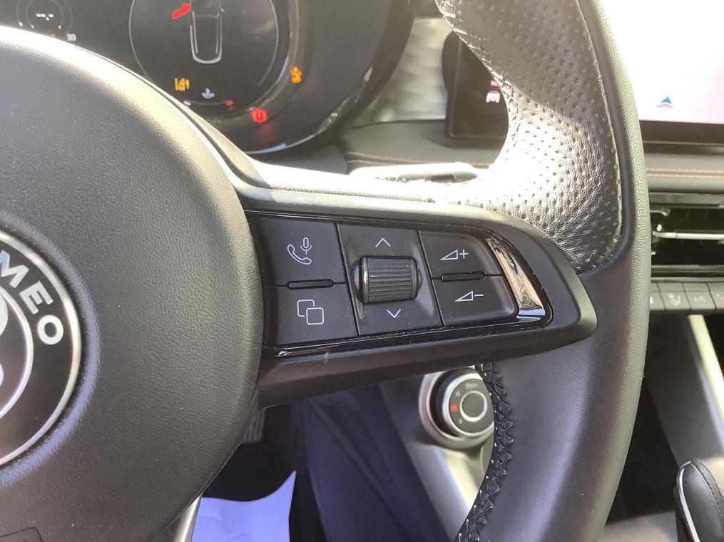 6 airbags (conducteur et passagers AV, lateraux, rideaux, genoux conducteur), Accoudoir AR, Accoudoir AV integre dans le tunnel central, Alerte de collision AV, Alerte de rappel de presence sur les sieges AR, Allumage automatique des feux, Antenne type requin, Apple CarPlay / Android Auto sans fil, Assistant de maintien dans la voie, Assistant de vitesse intelligent, Banquette AR 60/40 avec trappe a ski, Camera de recul avec lignes dynamiques, Capteur de pression des pneus, Chargeur induction sans fil pour smarthphone, Chargeur smartphone a induction, Ciel de toit sombre, Climatisation bi-zone automatique AV/AR, Combine d'instruments digital 12,3", Coques de retroviseurs Noir brillant, Coques de retroviseurs peintes en noir, Detection de fatigue du conducteur, Eclairage d'ambiance 5 couleurs, Essuie-glaces automatiques, Feux AR Full-Led, Feux de route automatiques, Frein de parking electrique, Freinage d'urgence autonome urbain, Jantes alliage 18" Ti, Kit anti-crevaison, Navigation Europe, Projecteurs Matrix Full-Led adaptatifs avec fonction anti-brouillard, Radar de stationnement AR, Radar de stationnement AV, Radio DAB, Reglage des lombaires electrique 4 positions du conducteur, Regulateur de vitesse adaptatif intelligent avec lecture des panneaux couple avec navigation, Regulateur et limiteur de vitesse intelligent avec lecture des panneaux, Retroviseur interieur electrochrome, Retroviseurs exterieurs electriques et chauffants, Retroviseurs exterieurs rabattables electriquement, Scudetto finition chrome, Scudetto finition Titanium, Selecteur de mode de conduite DNA (3 modes + ESC OFF), Sellerie AlfaTec/Tissu Carbonne, Systeme audio a 6 HP, Systeme d'info-divertissement 10,2" tactile, Systeme d'ouverture sans cle, Systeme de demarrage sans cle, Tapis de sol AV/AR, Vitres AR privatives, Vitres AV/AR electriques avec fonction anti-pincement, Volant sport en cuir pleine fleur avec bouton de demarrage
