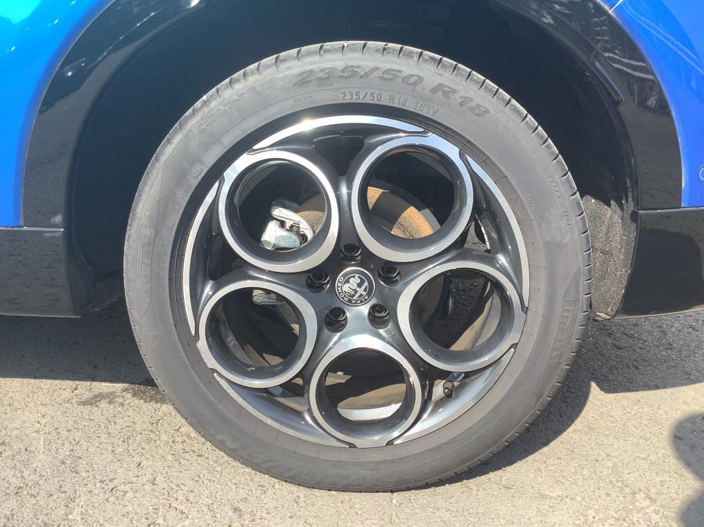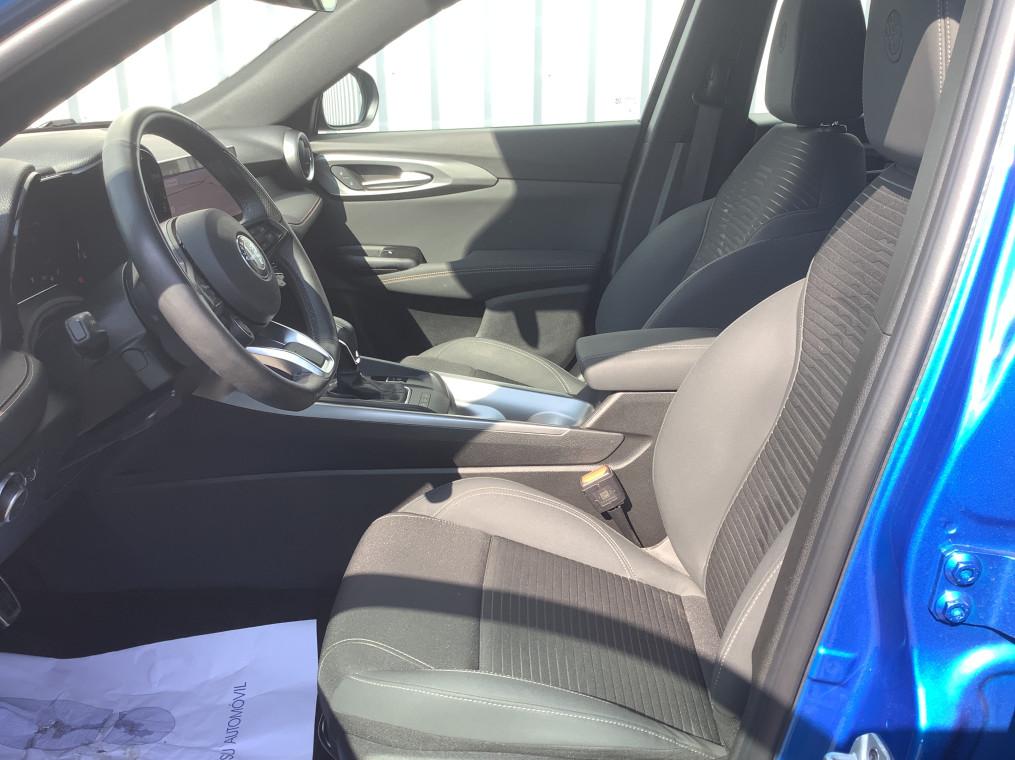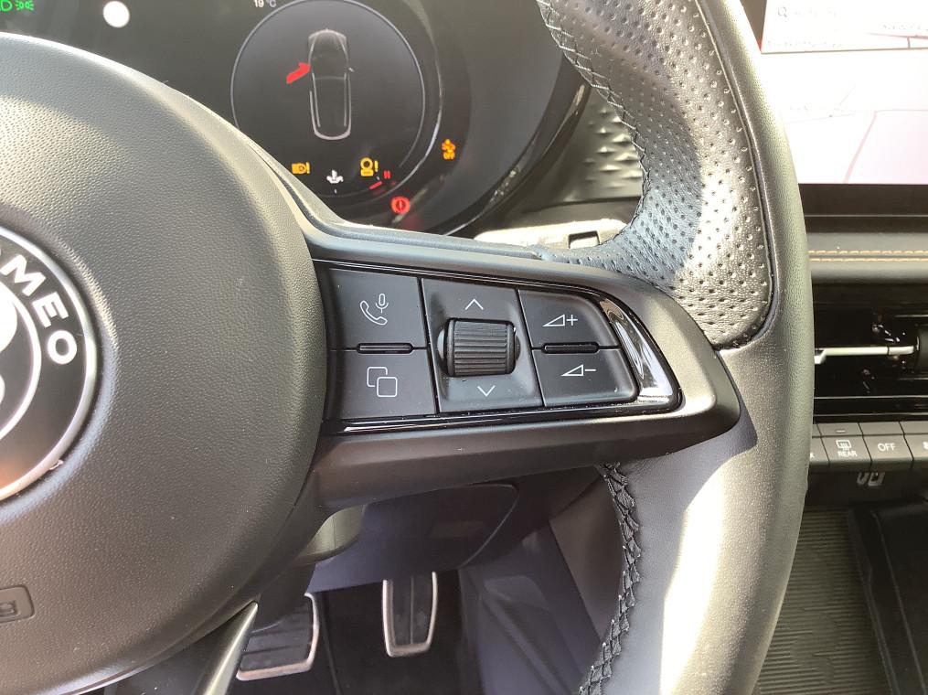 6 airbags (conducteur et passagers AV, lateraux, rideaux, genoux conducteur), ABS, ESP, TCS, Accoudoir AR, Accoudoir AV integre dans le tunnel central, Alerte de collision AV, Alerte de rappel de presence sur les sieges AR, Alfa Connect Services, Allumage automatique des feux et des essuie-glaces, Apple CarPlay / Android Auto sans fil, Assistant de maintien dans la voie, Assistant de vitesse intelligent (ISA), Banquette AR 60/40 avec trappe a ski, Boite automatique sequentiel 6 rapports, Camera de recul avec lignes dynamiques, Capteur de pression des pneumatiques TPMS, Ciel de toit sombre, Climatisation bi-zone automatique AV/AR, Combine d'instruments digital 12,3" Cannochiale, Coques de retroviseurs Noir brillant, Detection de fatigue du conducteur, Enjoliveurs de moyeux Alfa Romeo en blanc et noirs, Feux AR Full-Led, Frein de parking electrique, Freinage d'urgence autonome urbain, Jantes alliage 18" Ti avec pneumatiques ete A+, Dimensions: 235/50 R18, Jupes laterales noires, Kit anti-crevaison, Lame AV noir, Pedalier en aluminium, Projecteurs Full-Led avec signature lumineuse 3+3, Radar de stationnement AR, Radar de stationnement AV, Radio DAB, Regulateur de vitesse adaptatif intelligent avec lecture des panneaux couple avec navigation, Regulateur et limiteur de vitesse intelligent avec lecture des panneaux, Retroviseur interieur electrochrome, Retroviseurs exterieurs electriques et chauffants, Retroviseurs exterieurs rabattables electriquement, Scudetto noir, Selecteur de mode de conduite DNA (3 modes + ESC OFF), Sellerie AlfaTec/Tissu Carbonne, Sellerie Tissu Premium Logo "Biscione", Systeme audio a 6 HP, Systeme d'info-divertissement 10,2" tactile avec Navigation Europe, Systeme d'ouverture sans cle, Systeme de demarrage sans cle, Verrouillage centralise, Vitres AR privatives, Vitres AV/AR electriques avec fonction anti-pincement, Volant sport en cuir pleine fleur avec bouton de demarrage