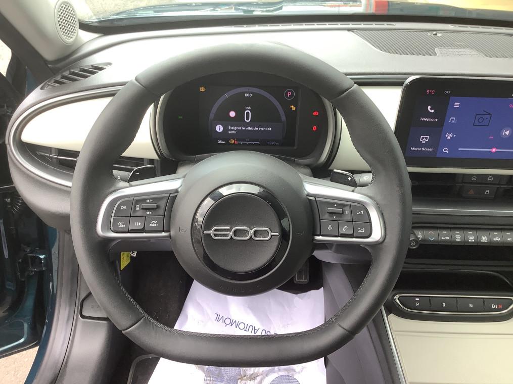 2 appuis-tete AR, 6 airbags, ABS, Accoudoir central AV, Alerte franchissement de ligne, Avertisseur d'angle mort, Banquette AR rabattable 60/40, Boite de vitesse automatique 6 rapports, Bouton d'appel d'urgence, Camera de recul 180°, Canule d'echappement cote droit, Chargeur USB de type C a l'AR, Chromotherapie (Lumiere d'ambiance interieure), Clignotants a LED, Climatisation automatique, Combine d'instrumentation numerique 7'', Commutation feux de route/croisement, Connectivite Smartphone Apple CarPlay et Android Auto sans fil, Console centrale avec pre-disposition couvercle magnetique, Controle de la traction (TCS), Coques de retroviseurs exterieurs noires brillant, Details chromes exterieur, Detecteurs de pluie et luminosite, ESP, Frein a main electrique, Freinage autonome d'urgence avec detection de pieton et de cycliste, Hayon a ouverture electrique mains libres, Jantes alliage 18" diamantees, Ouverture et demarrage sans cle, Pare-soleil avec miroir de courtoisie sans eclairage, Plancher de coffre modulable, Poches aumonieres au dos des sieges AV, Poignees de porte interieures chromees, Prise 12V AV, Projecteurs antibrouillard a LED avec fonction de virage, Projecteurs full LED 'Infinity' (AV et AR), Radar de stationnement AR, Radars de stationnement 360° (AV, AR et lateraux), Rappel du port de la ceinture de securite (1ere et 2eme rangees), Regulateur de vitesse adaptatif intelligent, Retroviseur interieur photochromatique, Retroviseurs exterieurs a reglage electrique, Retroviseurs exterieurs rabattables et chauffants, Sellerie premium bicolore soft touch couleur plomb et ivoire avec insert logo 600, Sieges AV chauffants, Siege passager a reglage manuel 6 positions, Systeme audio a 6 HP, Systeme de navigation embarque, Systeme ISOFIX siege AV passager et banquette AR, Systeme Uconnect 10,25", Verrouillage centralise, Vitres AR electriques, Vitres AR surteintees, Volant soft touch multifonctions avec detail chrome