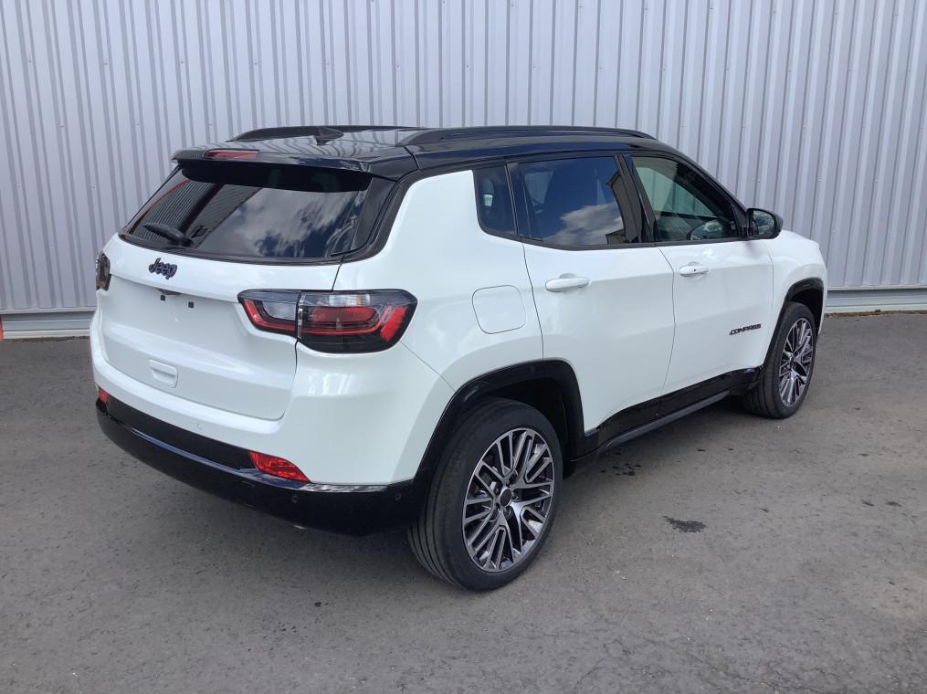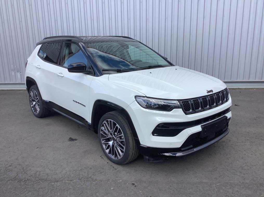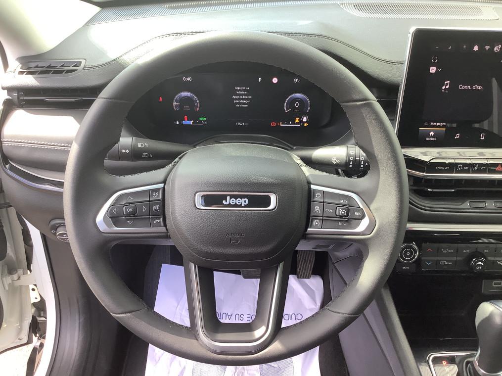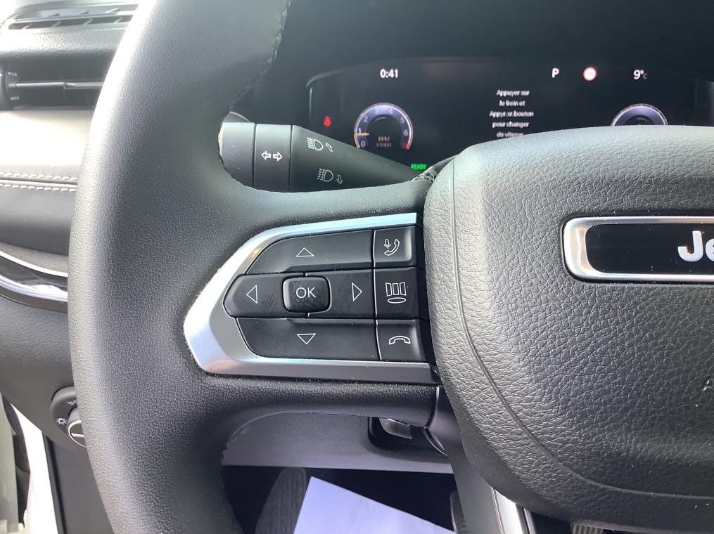 Accoudoir central AR avec porte-gobelets, Aide au stationnement AR "Park Sense", Aide au stationnement AV "Park Sense", Airbag passager neutralisable, Airbags frontaux, Airbags lateraux AV, Airbags rideaux (AV et AR), Alarme perimetrique, Allumage des feux automatique (capteur de luminosite), Apple Carplay / Android Auto, Apple Carplay / Android Auto Sans fil, Banquette AR 60/40 rabattable a plat, Barres de toit longitudinales, Bas de caisse Gloss Black, Bluetooth, Camera de recul Parkview avec affichage dynamique, Climatisation automatique bi-zone avec aerateur aux places AR, Coloris metallise Blue Shade, Combine d'instrumentation numerique configurable a ecran TFT de 10,25", Detecteur de somnolence, Ecran tactile 10.1", Essuie-glaces automatiques (capteurs de pluie), Feux LED avec signature specifique, Frein de stationnement electrique avec aide au demarrage en cote, Freinage autonome d'urgence avec detection pietons et cyclistes, Jantes en alliage 19'' Diamond 235/45 R19, Jeep Wave - 2 ans d'entretien programme offerts, Limiteur de vitesse intelligent, Pack Stationement : Park Assist:assistance au stationnement parallele/perpendiculaire semi-automatique, Aide au stationnement AV "Park Sense", Aide au stationnement AR "Park Sense", Prise 12V dans le coffre, Prises USB type A et C, Projecteurs antibrouillard AV a LED, Projecteurs AR a Signature LED, Projecteurs Jeep Performance LED, Projecteurs Performance LED, Radio DAB, Regulateur de vitesse adaptatif avec fonction Stop&Go, Retroviseur interieur photochromique, Retroviseurs exterieurs degivrants, Retroviseurs exterieurs Gloss Black degivrants rabattables electriquement, Retroviseurs exterieurs rabattables electriquement, Sellerie cuir ventile Summit, Sellerie en Cuir ventile sur assise et face AV des dossiers, Services connectes Uconnect Services, Siege conducteur et passager a reglage manuel 6 positions, Siege conducteur reglage lombaire electrique, Siege passager rabattable a plat, Sieges AV electriques et ventiles (conducteur et passager), Smartbeam : commutation automatique feux de route/feux de croisement, Smartbeam : Commutation feux de route / feux de croisement automatique, Systeme anti-louvoiement en conditions de tractage, Systeme anticollision actif, Systeme Audio "Uconnect" 6 HP, Systeme Audio 6 HP, Systeme d'affichage de la pression des pneus, Systeme d'avertissement de franchissement de ligne avec correction, Systeme d'infodivertissement "UConnect 5" a ecran tactile 10,1", Systeme d'ouverture et de demarrage sans cle Enter-N-Go, Systeme de reconnaissance des panneaux de signalisation, Systeme preventif anti retournement, Tapis de sol, Toit noir, Vitres et lunette AR surteintees