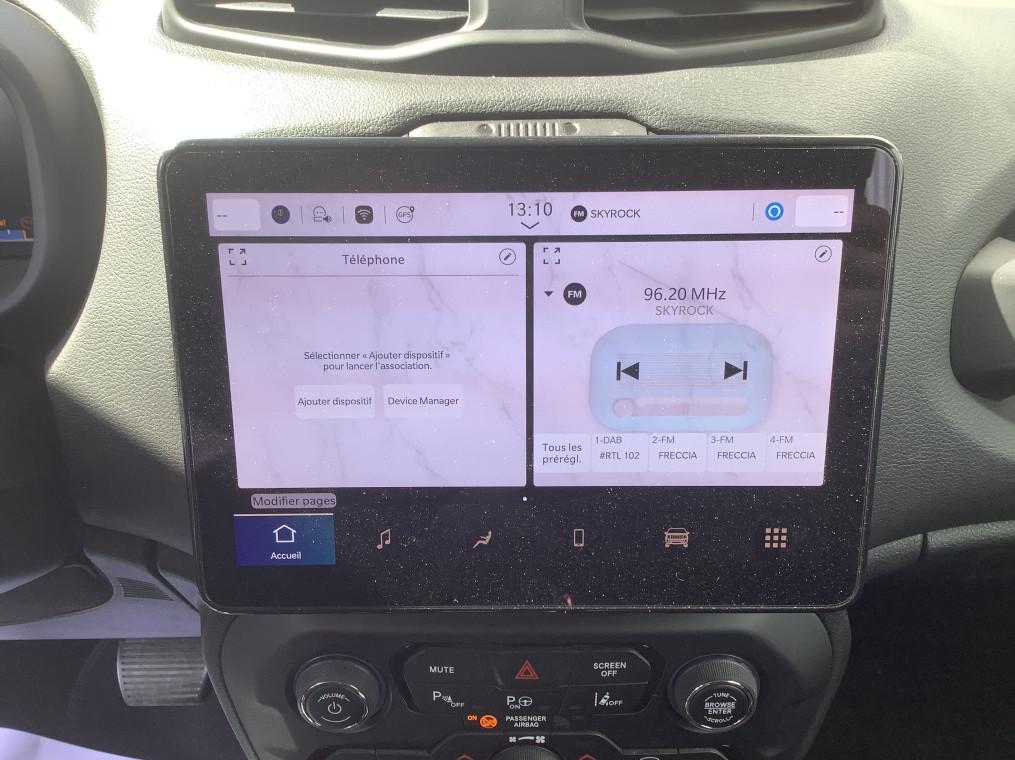6 airbags, Accoudoir central coulissant, Affichage de la pression des pneus, Aide au stationnement AV et AR, Alerte anticollision avec arret a faible vitesse, Alerte de franchissement de ligne avec correction, Barres de toit longitudinales Noir, Calandre noir mat avec cerclages d'ouies argent, Camera de recul, Capteur de luminosite, Capteur de pluie, Climatisation automatique bi-zone, Combine d'instrumentation numerique configurable a ecran TFT de 10,25", Commutation feux de croisement / feux de route automatique, Controle electronique de la stabilite ESC et aide au demarrage en cote, Coques de retroviseurs exterieurs noires, Degivrage des essuie-glace AV, Detecteur de somnolence, Enter-N-Go : systeme d'ouverture et de demarrage sans cle, Feux Full LED (feux de jour, de croisement, de route, antibrouillard, AR), Frein de stationnement electrique, Jantes alliage 18" Gloss Black, Jantes alliage 18" Gloss Black 235/50R18, Ouverture et de fermeture des vitres a distance, Pack Hiver, Pack Tech, Park Assist:assistance au stationnement parallele/perpendiculaire avec assistance a la sortie, Prise USB A au 2nd rang, Prise USB type A et C pour passagers AV, Projecteurs antibrouillard AV, Radio numerique DAB avec connexion Bluetooth, 6 HP, commandes au volant, Reconnaissance des panneaux de signalisation, Regulateur de vitesse adaptatif, Regulateur et limiteur de vitesse intelligent, Retroviseur interieur photochromique, Retroviseurs exterieurs rabattables electriquement, Retroviseurs exterieurs reglables electriquement et degivrants, Sellerie en Tissu, Services connectes Uconnect Services, Siege conducteur reglable en hauteur, Siege conducteur reglage lombaire electrique, Siege passager rabattable a plat, Sieges AV chauffants, Surveillance de l'angle mort et Systeme de detection de presence AR, Systeme anti-louveoiment de la remorque, Systeme d'infodivertissement Uconnect a ecran tactile 10,1" avec Apple Car Play / Android Auto, Systeme d'infodivertissement Uconnect avec navigation GPS a ecran tactile 10,1", Tapis de sol AV, Vitres AV et AR electriques sequentielles, Vitres electriques AV et AR, sequentielles a l'AV, Volant chauffant en cuir, Volant reglable en hauteur et en profondeur